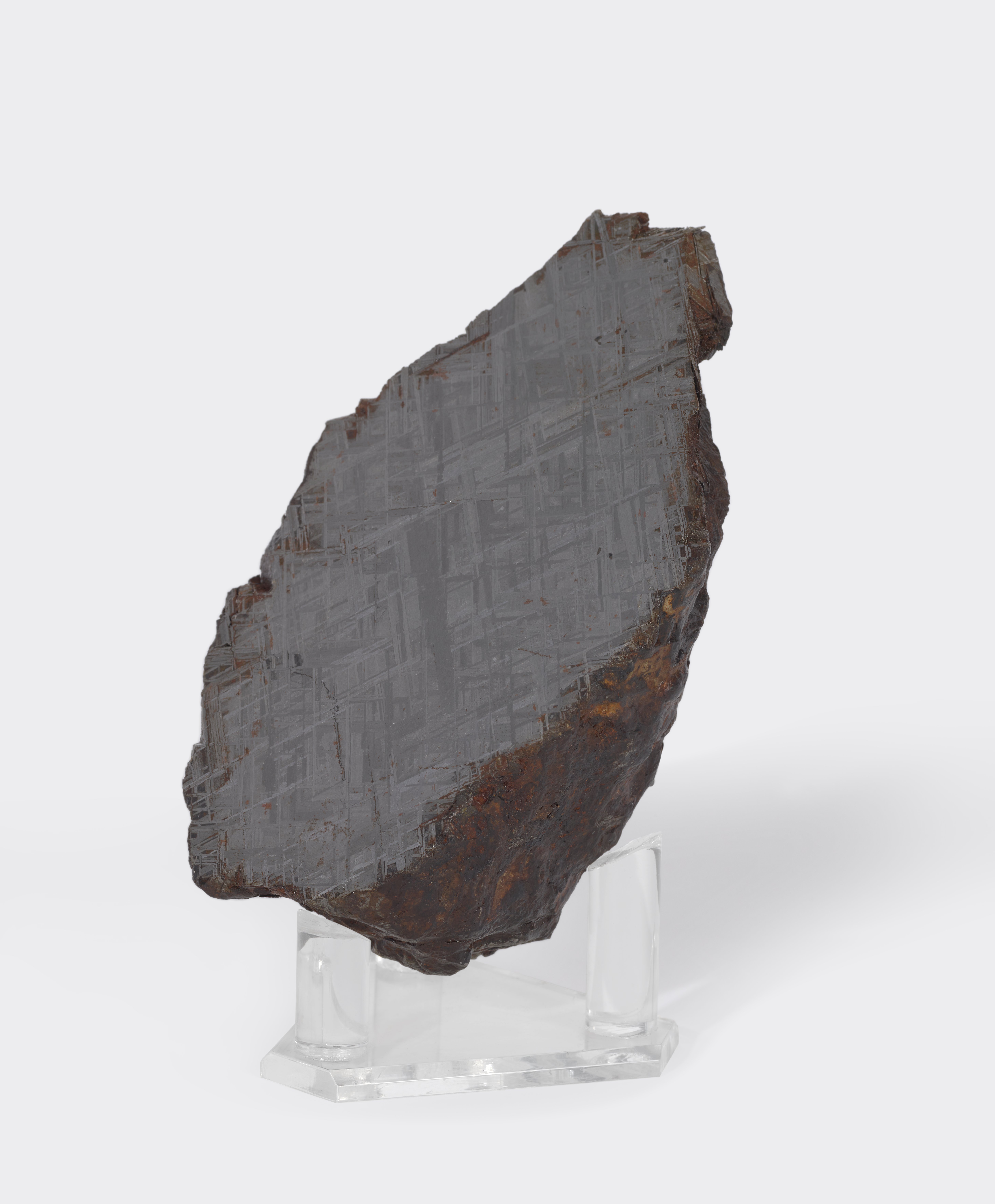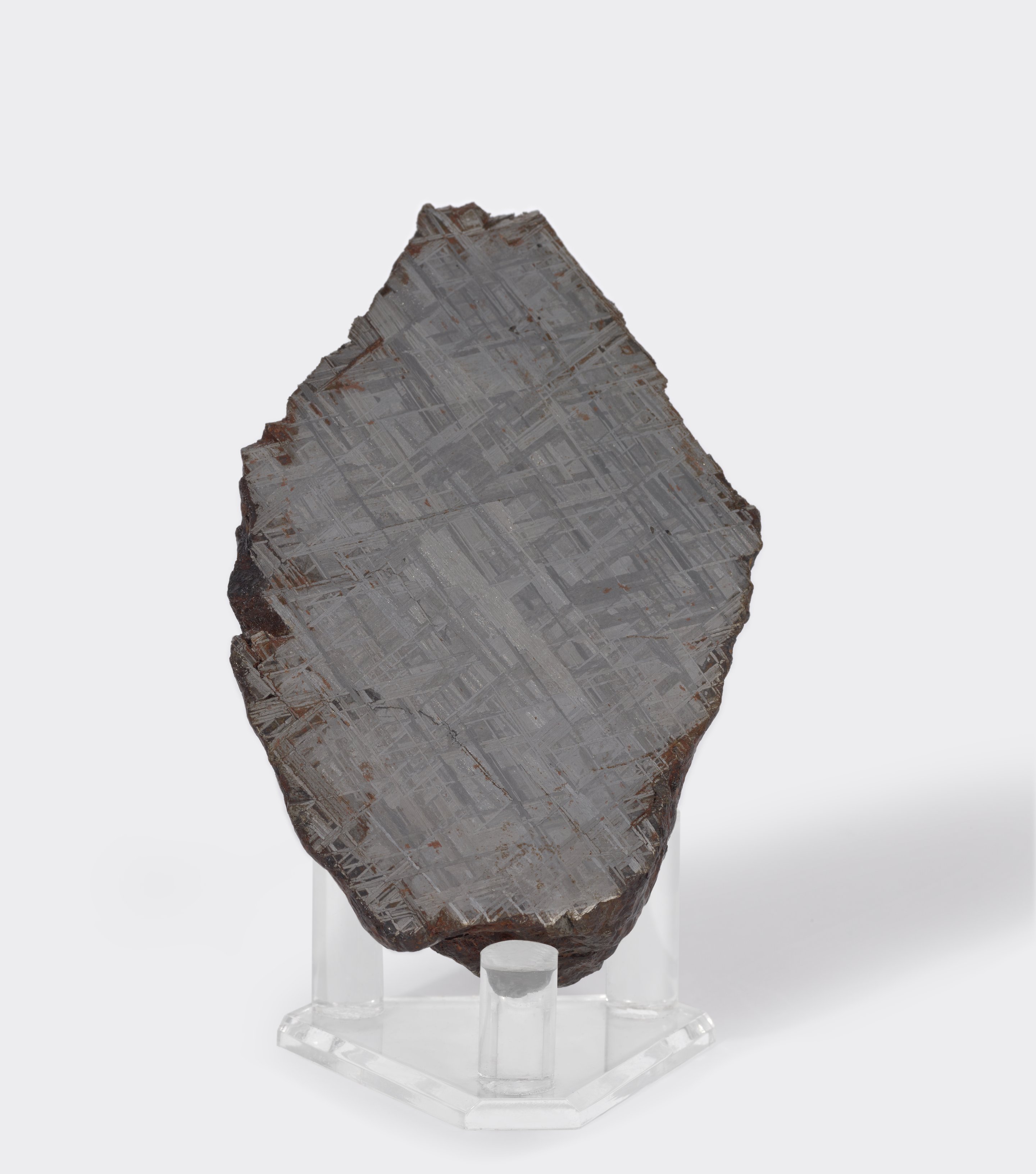 Small JPG1200 x 1360px — 116 KBLarge JPG2880 x 3264px — 491 KBFull-sized JPG6170 x 6993px — 1.7 MBOriginal fileTIFF — 6170 x 6993px — 19.7 MBThe Muonionalusta meteorite is a meteorite classified as fine octahedrite, type IVA, which impacted Scandinavia about one million years ago. The meteorite was first discovered in 1906 in Sweden. It is thought to be the oldest meteorite discovered. The inside of the meteorite shows Widmanstätten patterns, which are formed by an extremely slow cooling rate over millions of years.