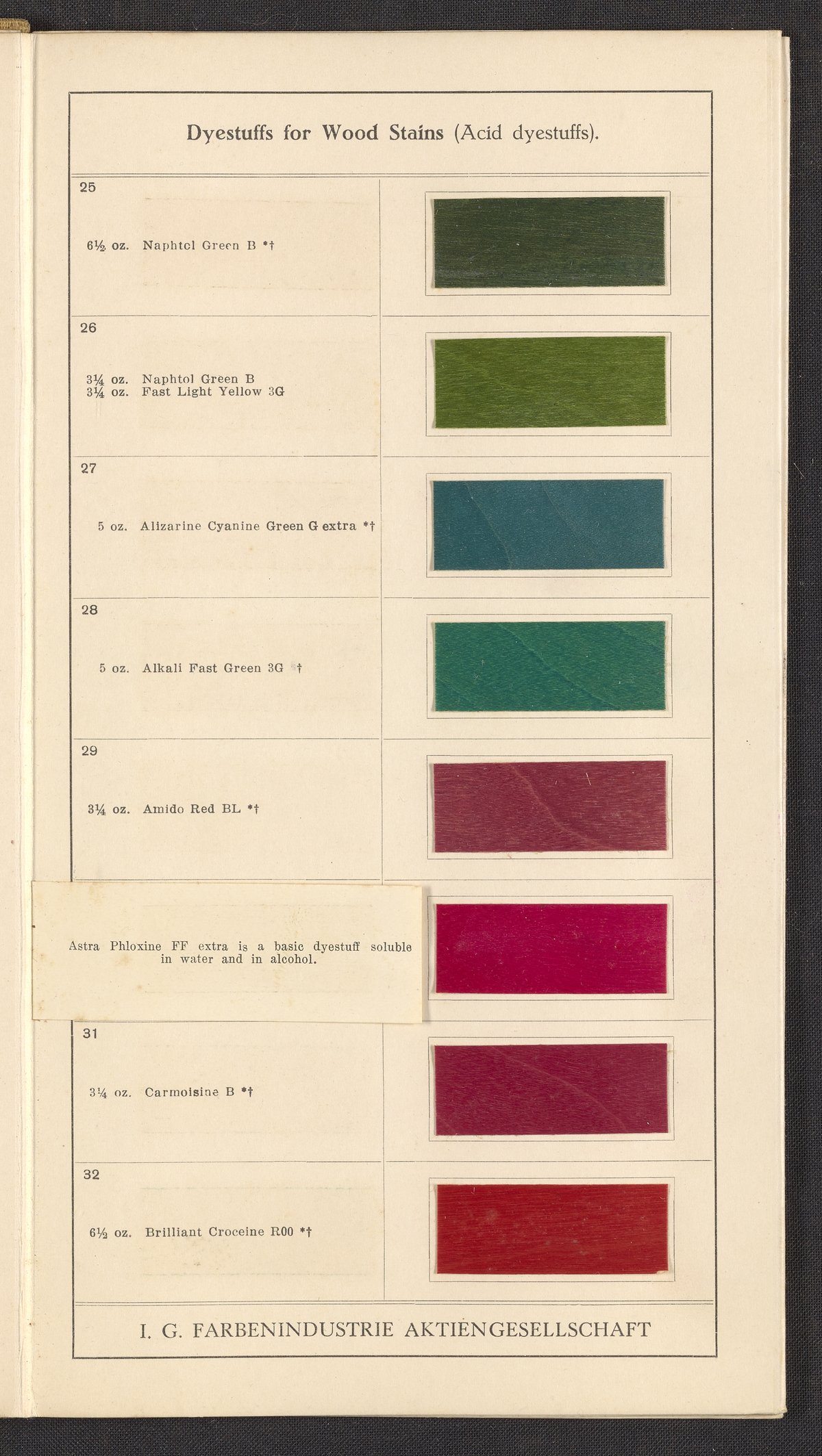 General Dyestuff Corporation, and Interessengemeinschaft Farbenindustrie Aktiengesellschaft. Dyestuffs for Wood Stains, 1900–1999. https://digital.sciencehistory.org/works/fi2su8a.