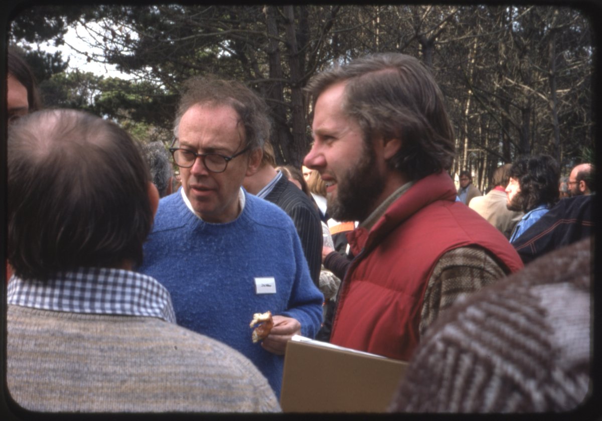 Color transparency of James D. Watson (1928-2025) and Ronald W. Davis (1941-) at the 1975 Asilomar Conference.
