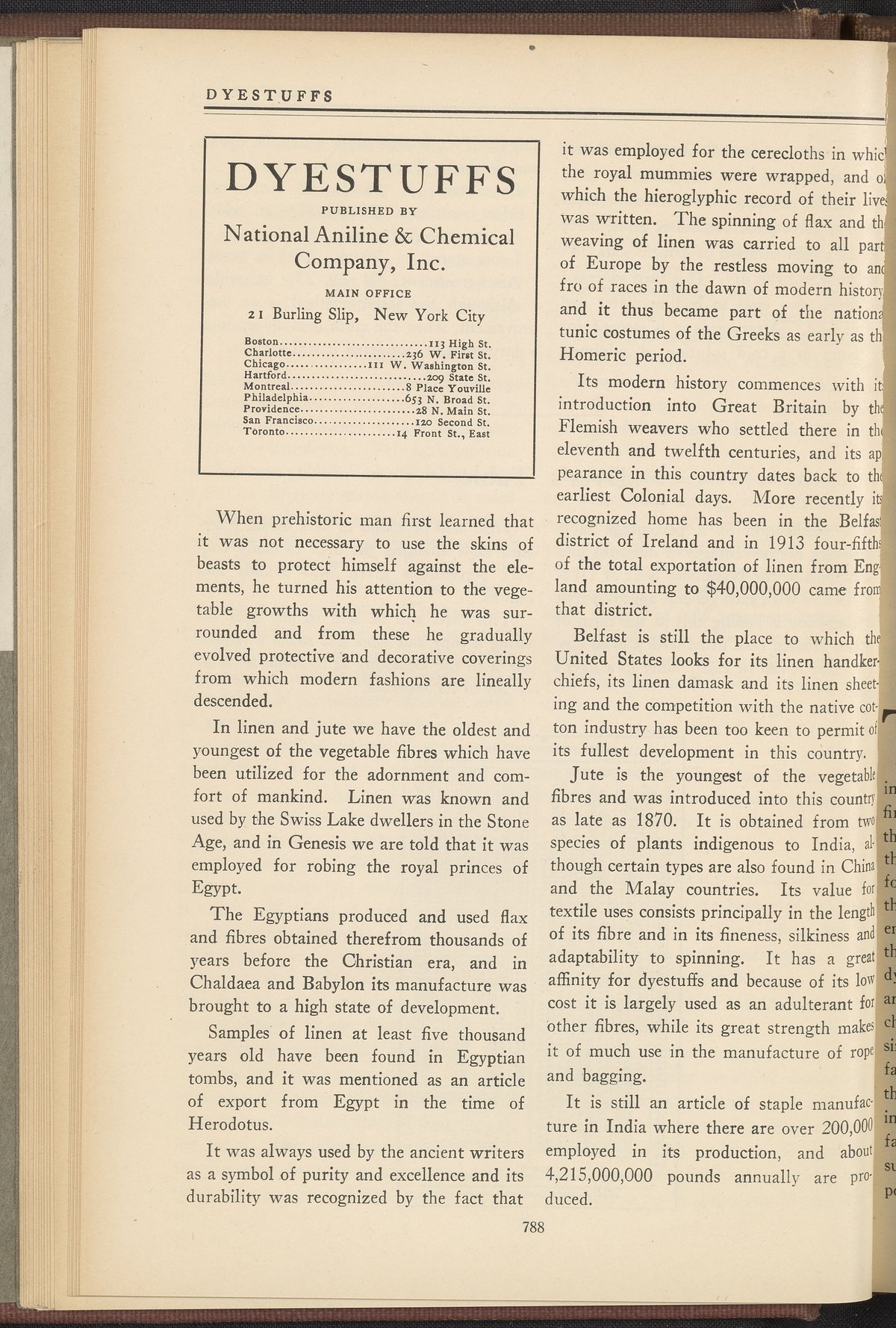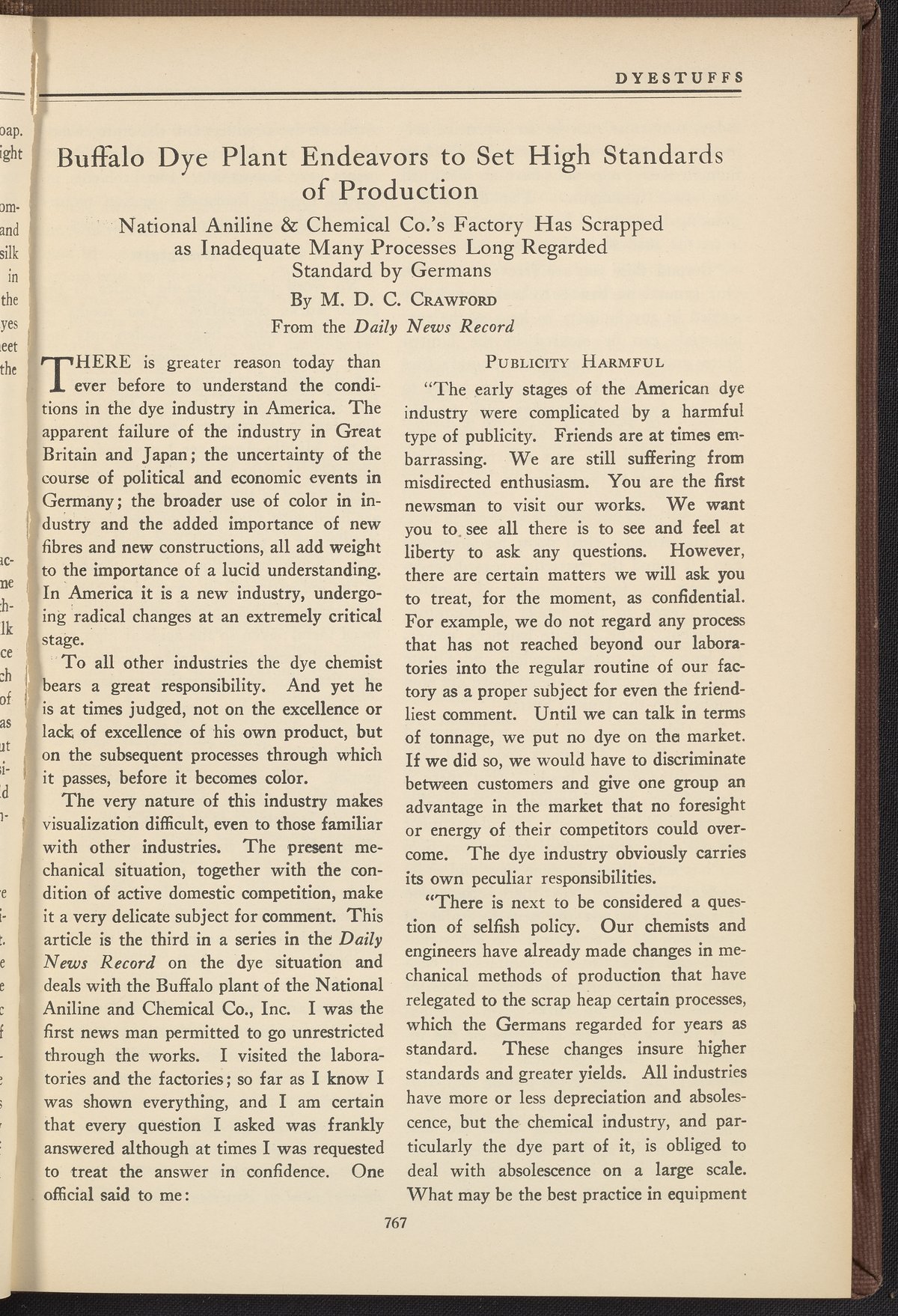 Small JPG1200 x 1812px — 408 KBFull-sized JPG2556 x 3860px — 1.5 MBOriginal fileTIFF — 2556 x 3860px — 28.3 MBFirst issue from the twenty-third volume of Dyestuffs, a journal publication from the National Aniline Division of the Allied Chemical & Dye Corporation issued on a monthly to quarterly basis from 1898 to 1964 (suspended briefly from 1916 to 1917).