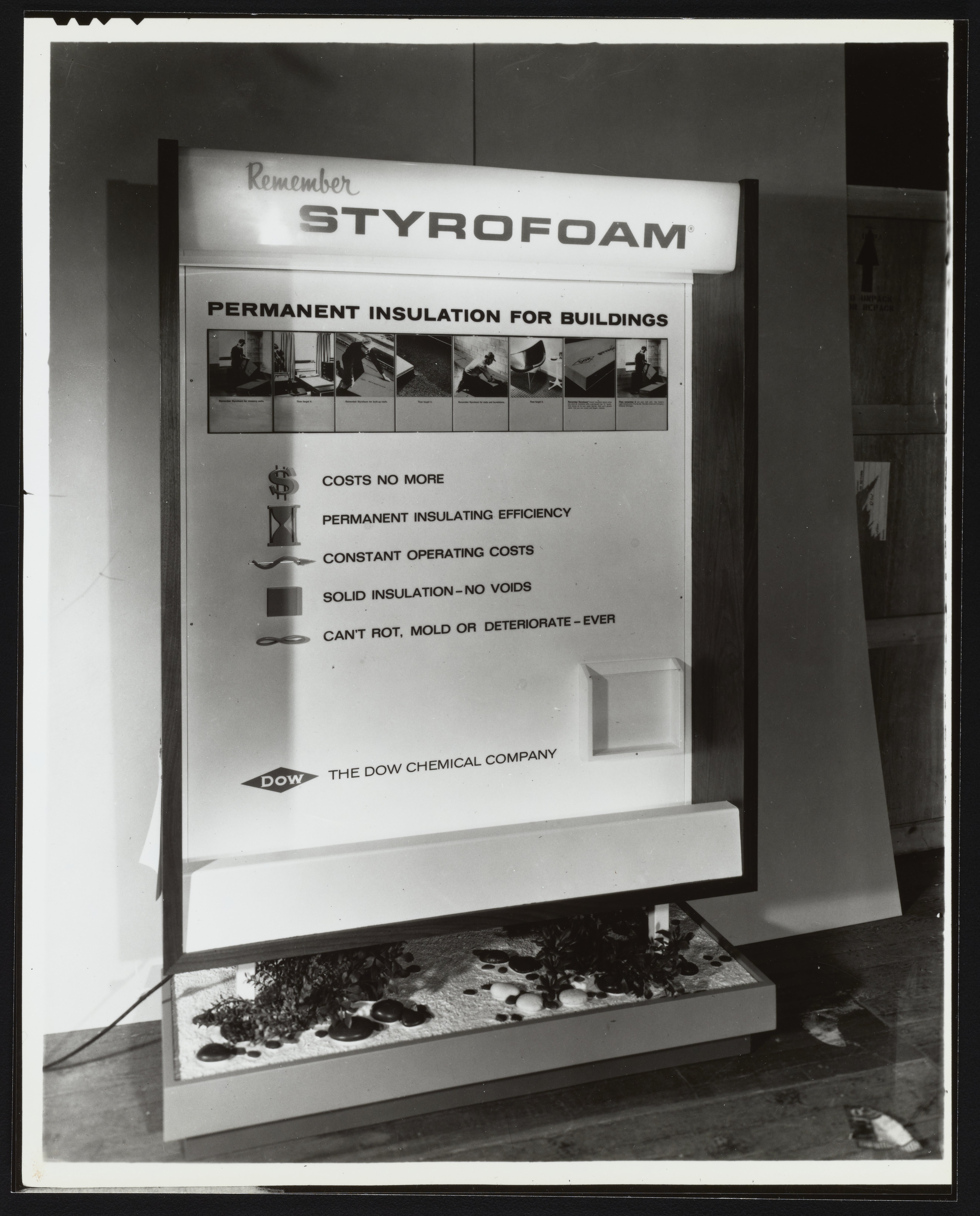 Dow Chemical Company. “Promotional Display for Styrofoam Insulation,” 1964. Dow Chemical Company Historical Image Collection, Box 4, Folder Products--Styrofoam Insulation. Science History Institute. Philadelphia. https://digital.sciencehistory.org/works/fq977v81c.