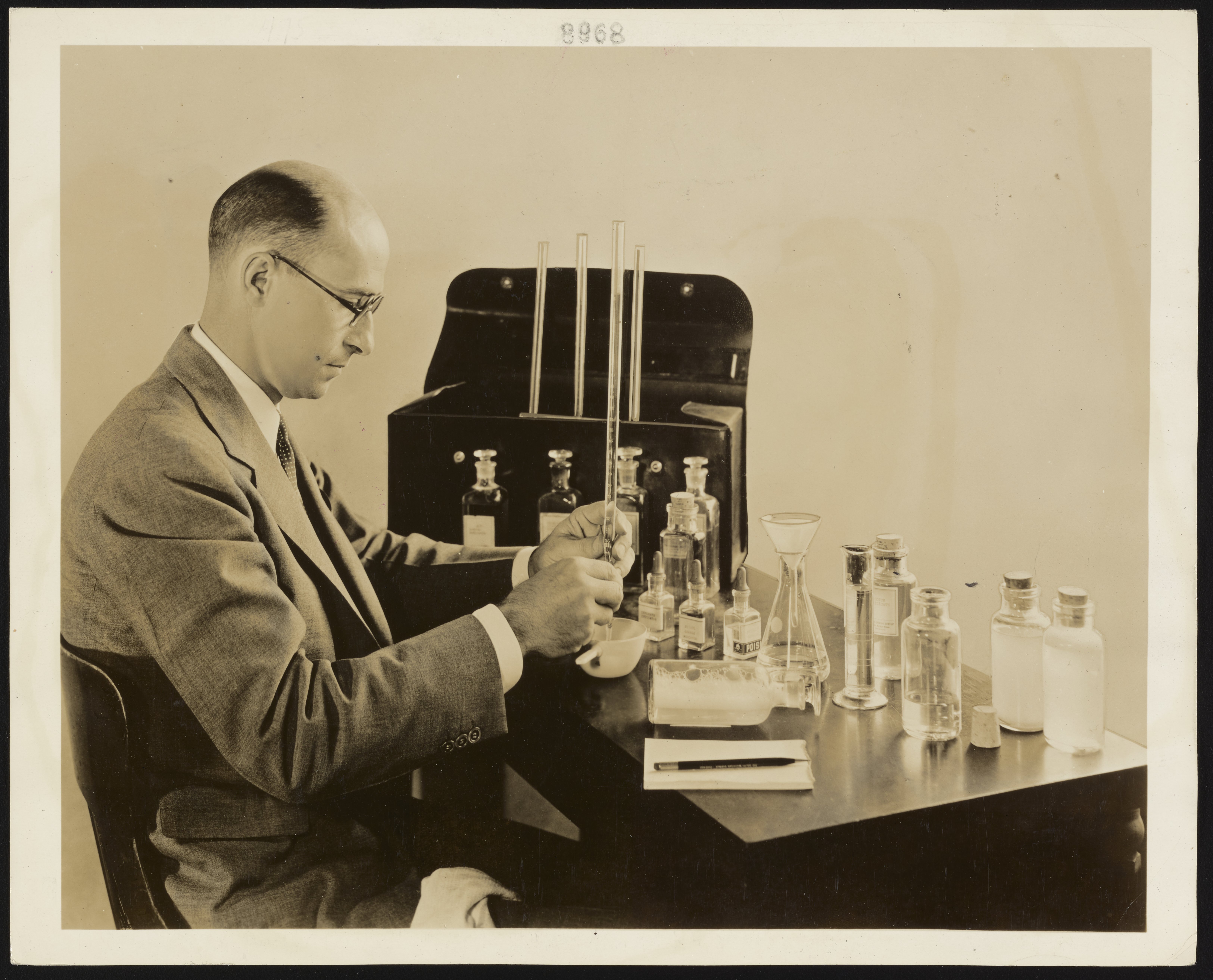 Dearborn Chemical Company, and The Fensholt Company. “E.P. Fager Conducting Dearborn Chemical Company Water Sample Test,” 1930–1939. BetzDearborn, Incorporated Records, Box 15, Folder 64. Science History Institute. Philadelphia. https://digital.sciencehistory.org/works/ft848r789.