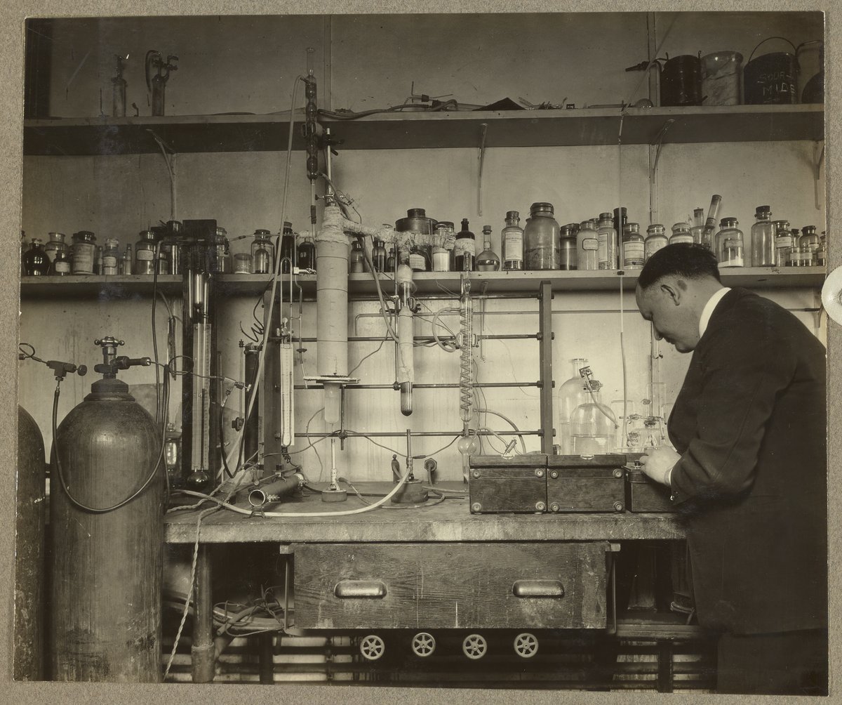 “W.E. Kuentzel Removing Carbon Monoxide from Water Gas,” April 1926. Travis P. Hignett Collection of Fixed Nitrogen Research Laboratory Photographs, Box 1. Science History Institute. Philadelphia. https://digital.sciencehistory.org/works/fx719m51x.