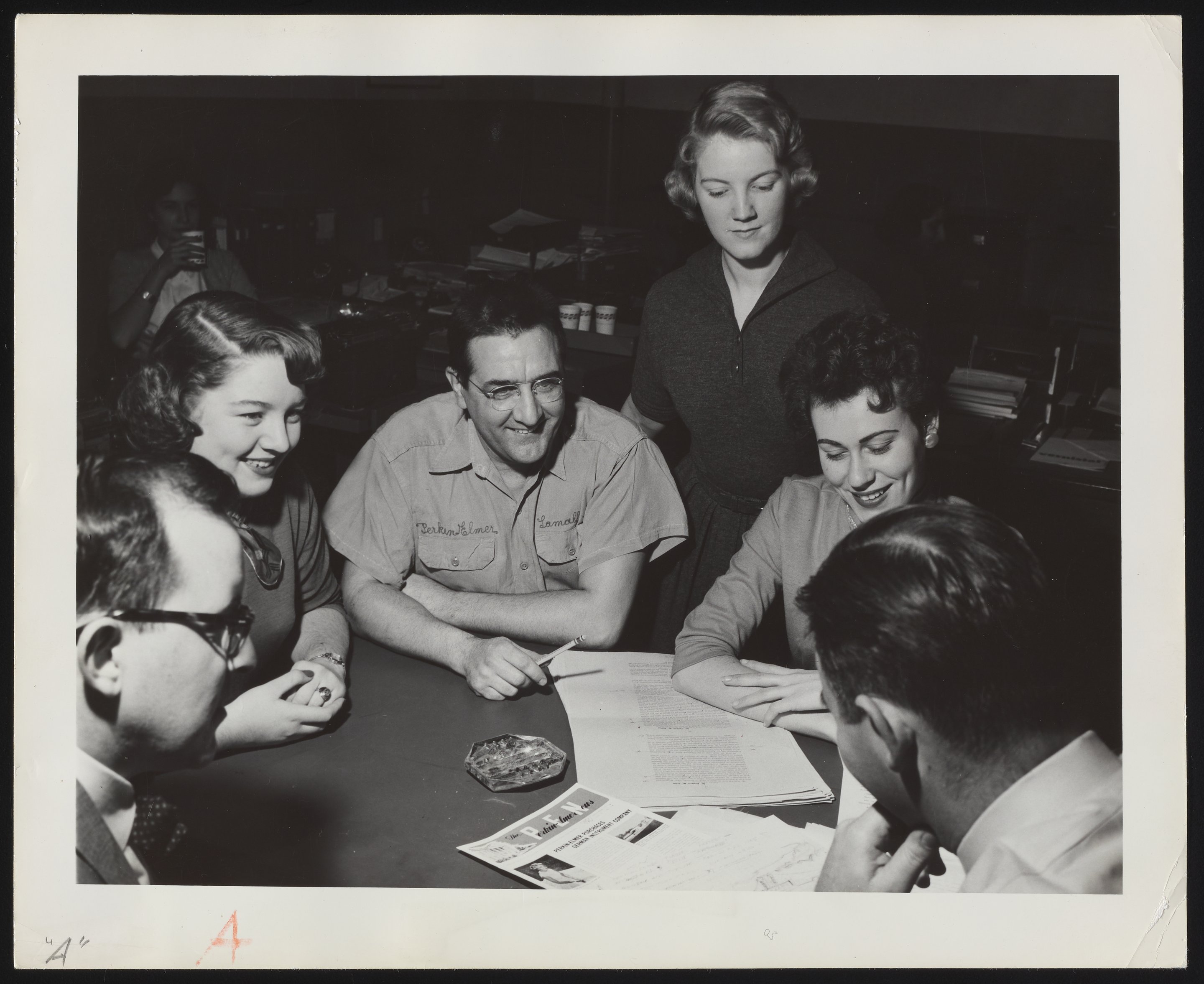 Perkin-Elmer Corporation. “Group Photograph of Perkin-Elmer Corporation Employees,” circa 1954. Photographs from the Perkin-Elmer-Applera Collection, Box 1. Science History Institute. Philadelphia. https://digital.sciencehistory.org/works/fx719n28b.