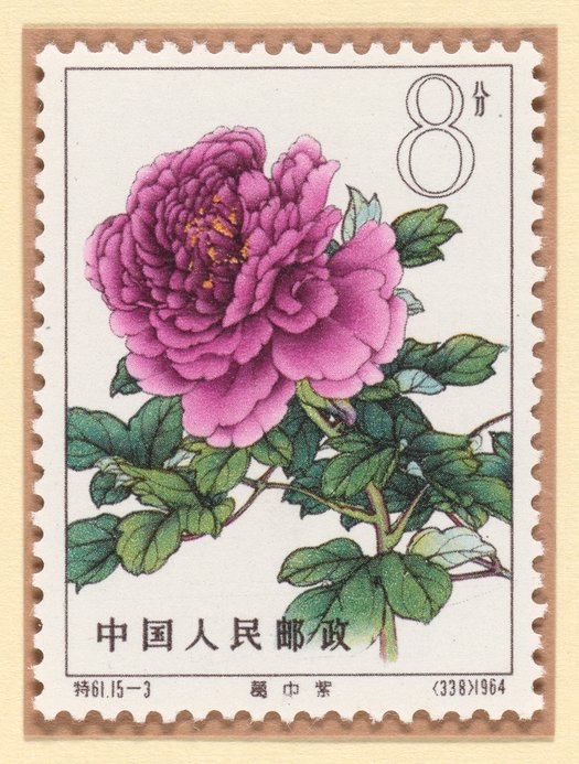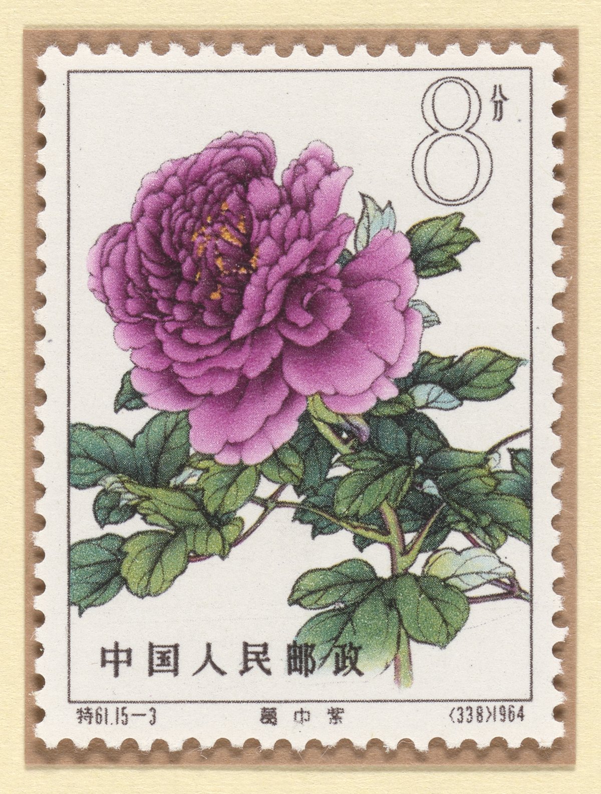 “Gejin’s Purple (葛巾紫) Postage Stamp, China,” August 10, 1964. Witco Stamp Collection, Box 5. Science History Institute. Philadelphia. https://digital.sciencehistory.org/works/g46771g.