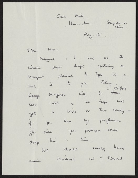 Hodgkin, Dorothy. “Letter from Dorothy Hodgkin to Max Perutz, August 13, 1963,” August 13, 1963. History of Molecular Biology Collection, Box 76, Folder 5. Science History Institute. Philadelphia. https://digital.sciencehistory.org/works/g5etjze.