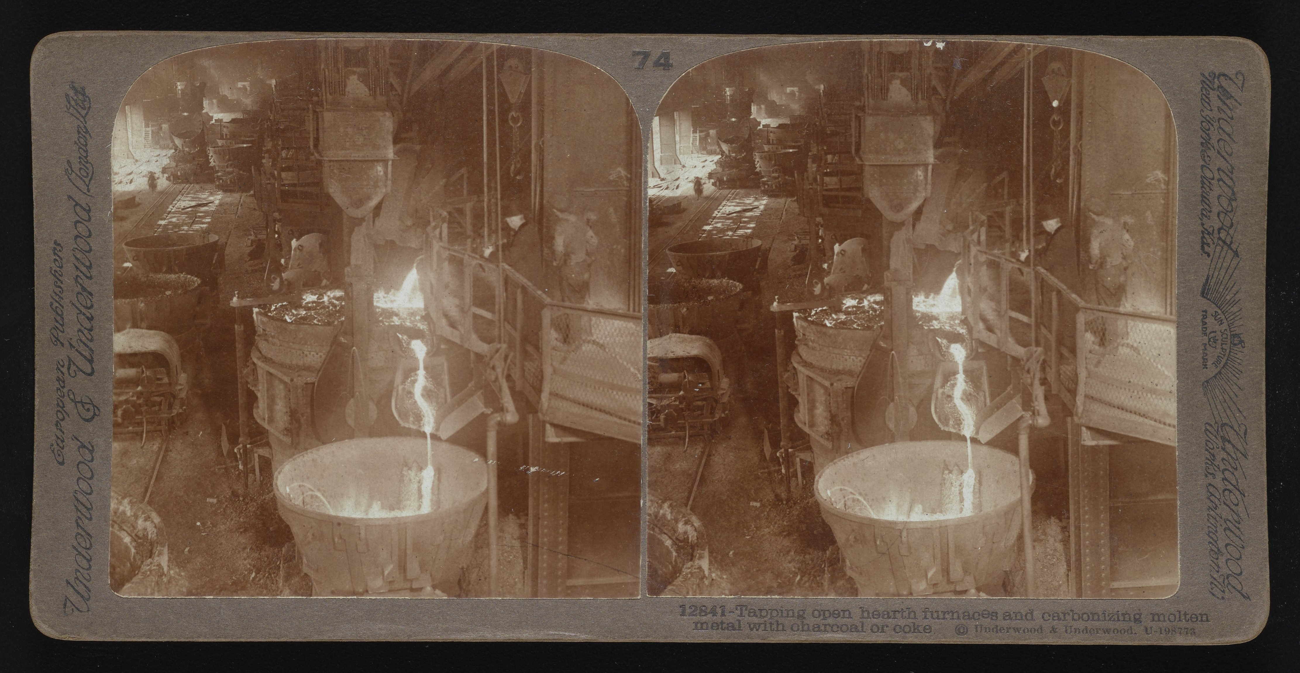“Tapping Open Hearth Furnaces and Carbonizing Molten Metal with Charcoal or Coke.” Underwood & Underwood, n.d. Underwood & Underwood Stereographs of Manufacturing Industries. Science History Institute. Philadelphia. https://digital.sciencehistory.org/works/g732d8963.