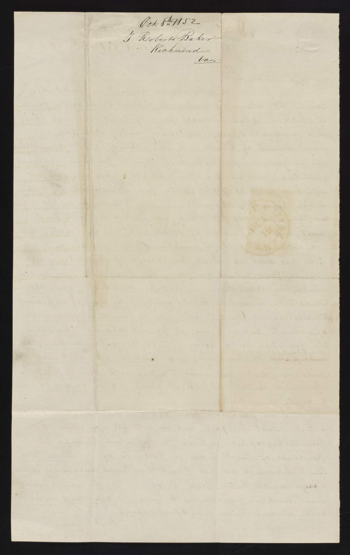 Letter from T. Roberts Baker to James C. Booth, October 8, 1852