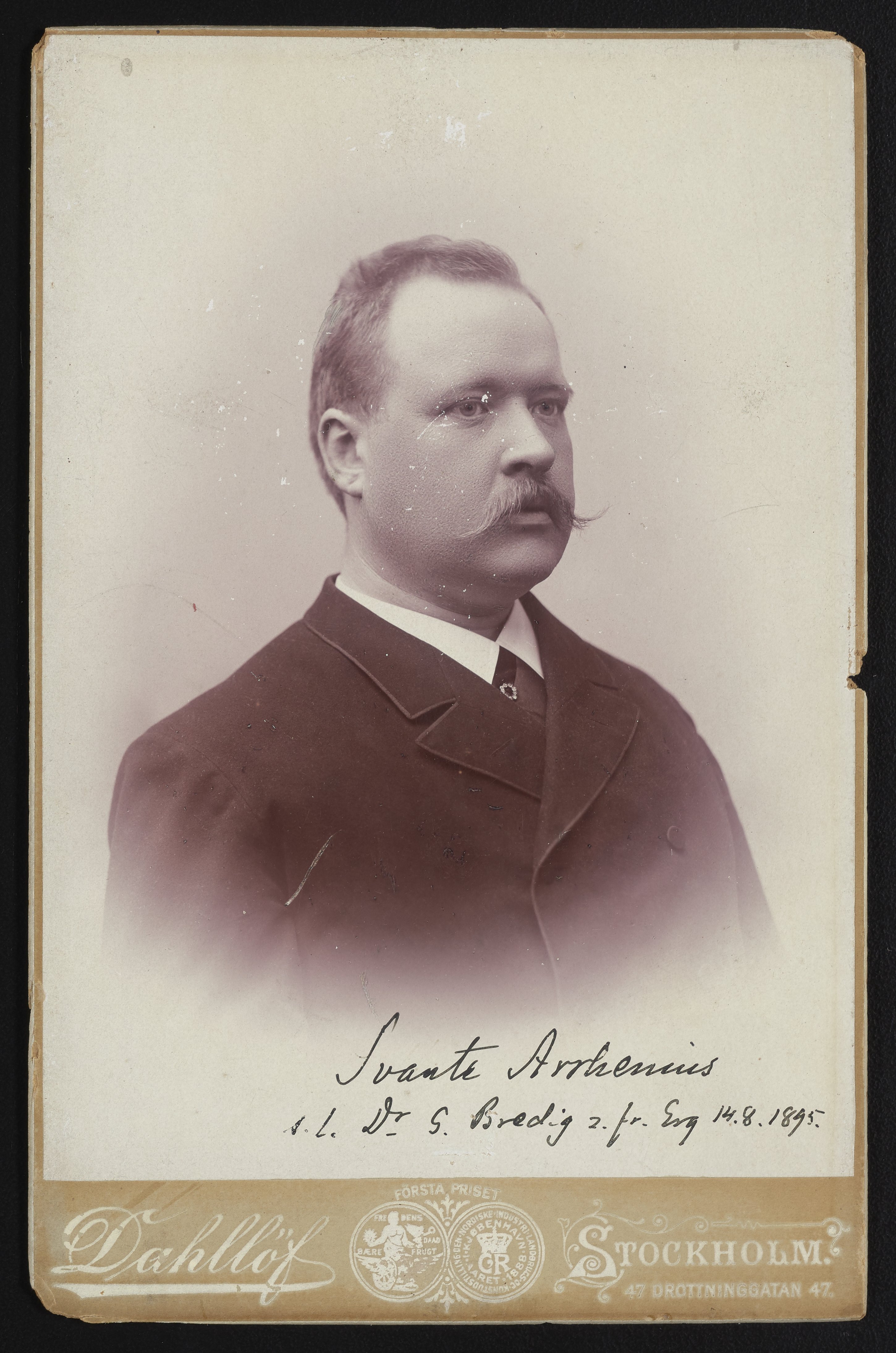 Dahllöf, Robert, 1842–1904. “Portrait of Svante Arrhenius, 1895,” August 14, 1895. Papers of Georg and Max Bredig, Box 21. Science History Institute. Philadelphia. https://digital.sciencehistory.org/works/g95hcrb.