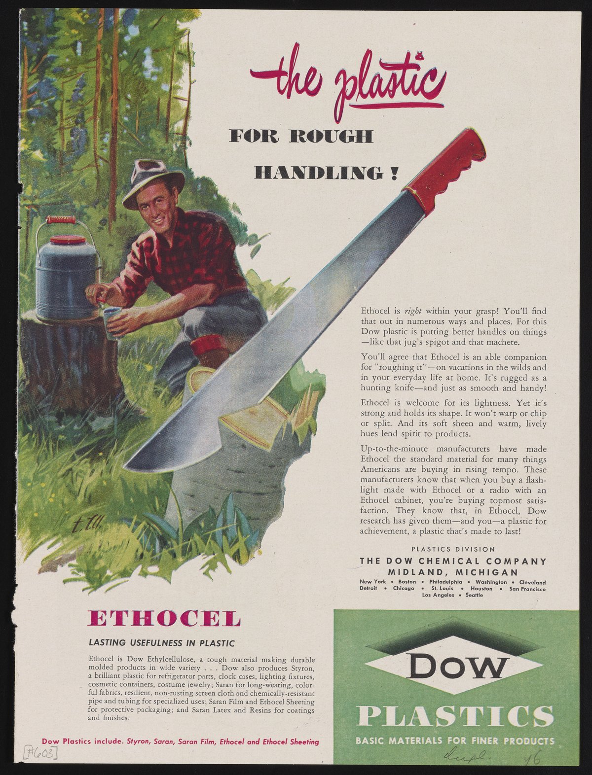 Dow Chemical Company. “The Plastic for Rough Handling!,” circa 1946. Advertisements from the Dow Chemical Historical Collection, Box 9. Science History Institute. Philadelphia. https://digital.sciencehistory.org/works/gat6o3i.