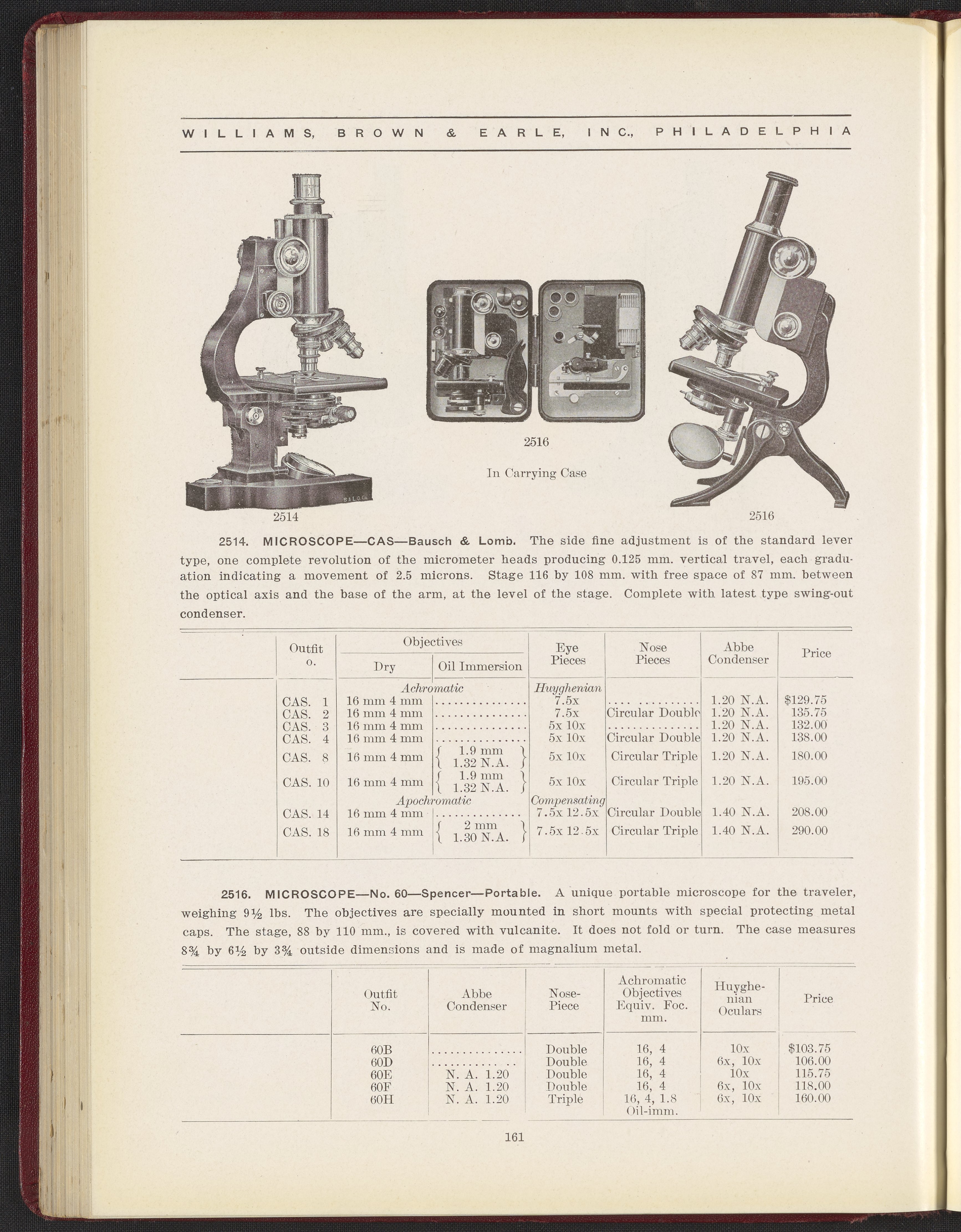Williams, Brown. “Microscopes.” Catalog of Laboratory Apparatus and Reagents for Industrial, Medical, Educational Laboratories. Philadelphia, Pennsylvania, 1922. https://digital.sciencehistory.org/works/gb19f5896.