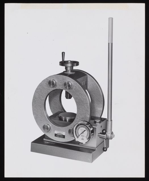“25 Ton Hydraulic Press,” n.d. Beckman Historical Collection, Box 80. Science History Institute. Philadelphia. https://digital.sciencehistory.org/works/gf06g280z.