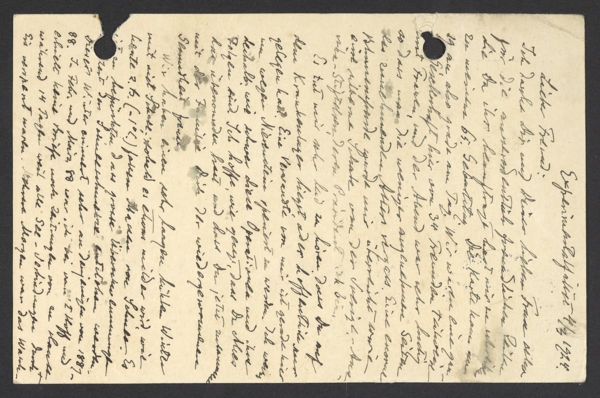 Wir haben einen sehr kalten Winter mit Schnee; sobald es etwas milder wird, wie heute z.B. (-1°C) fallen Massen von Schnee. Es ist zu befürchten, dass grosse Überschwemmungen kommen zur Zeit das Schneeschmelze enthoben werden. Dieser Winter erinnert sehr an denjenigen von 1887-88. Im Febr. und März 88 war ich bei van’t Hoff und erhielt keine Briefe noch Zeitungen von zu Hause wahrend 14 Tage weil alle See-Verbindungen durch Eis versperrt waren. Mehrere Morgen war das Waschwasser