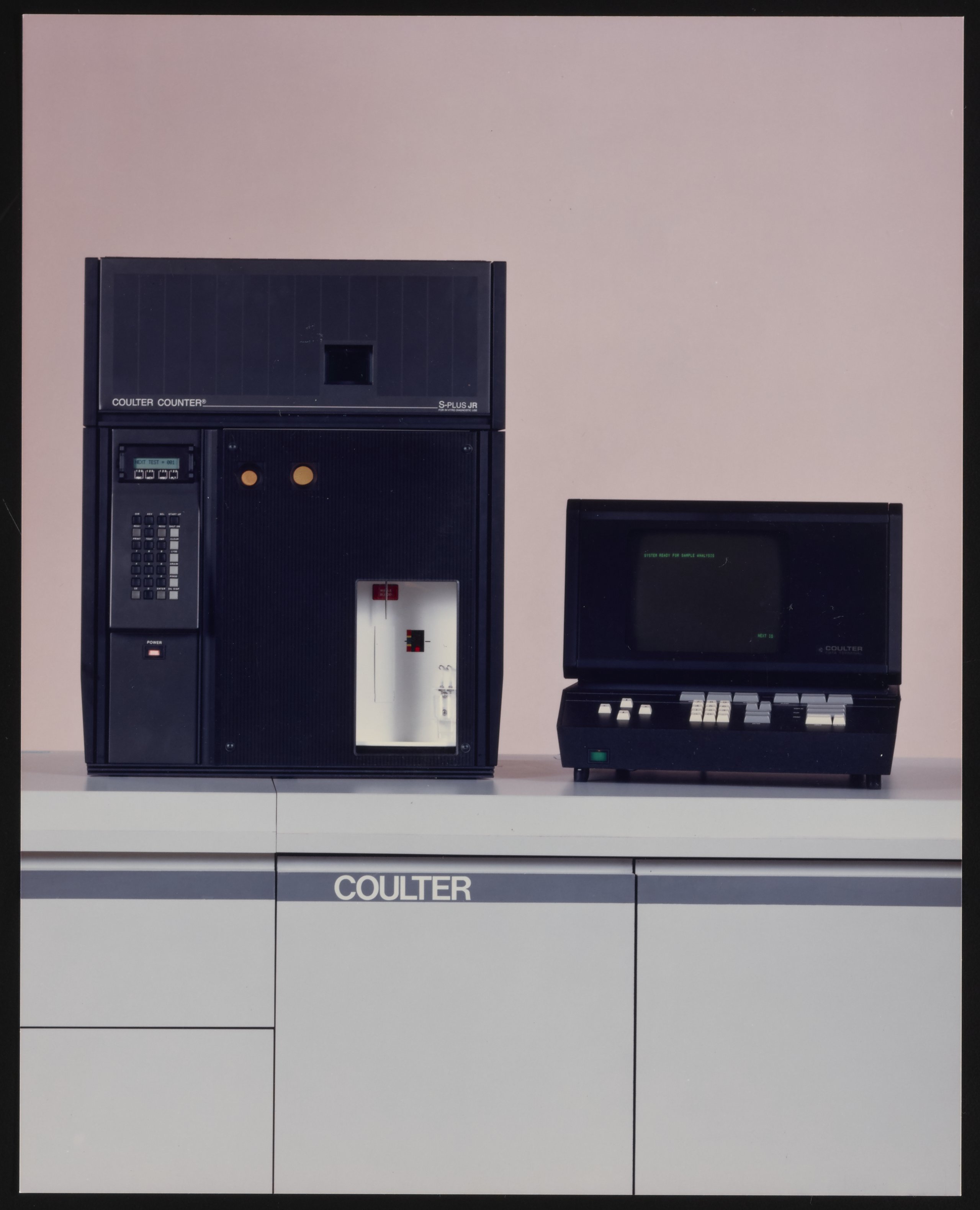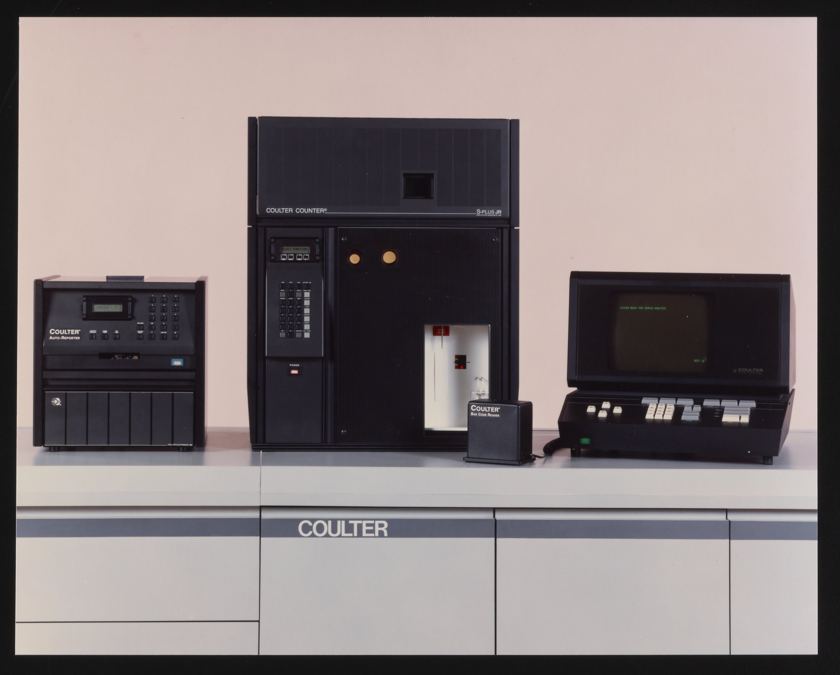 “Coulter Counter Model S-Plus Jr. Cell Counter,” 1980–1989. Beckman Historical Collection, Box 58, Folder 96. Science History Institute. Philadelphia. https://digital.sciencehistory.org/works/gm80hv697.