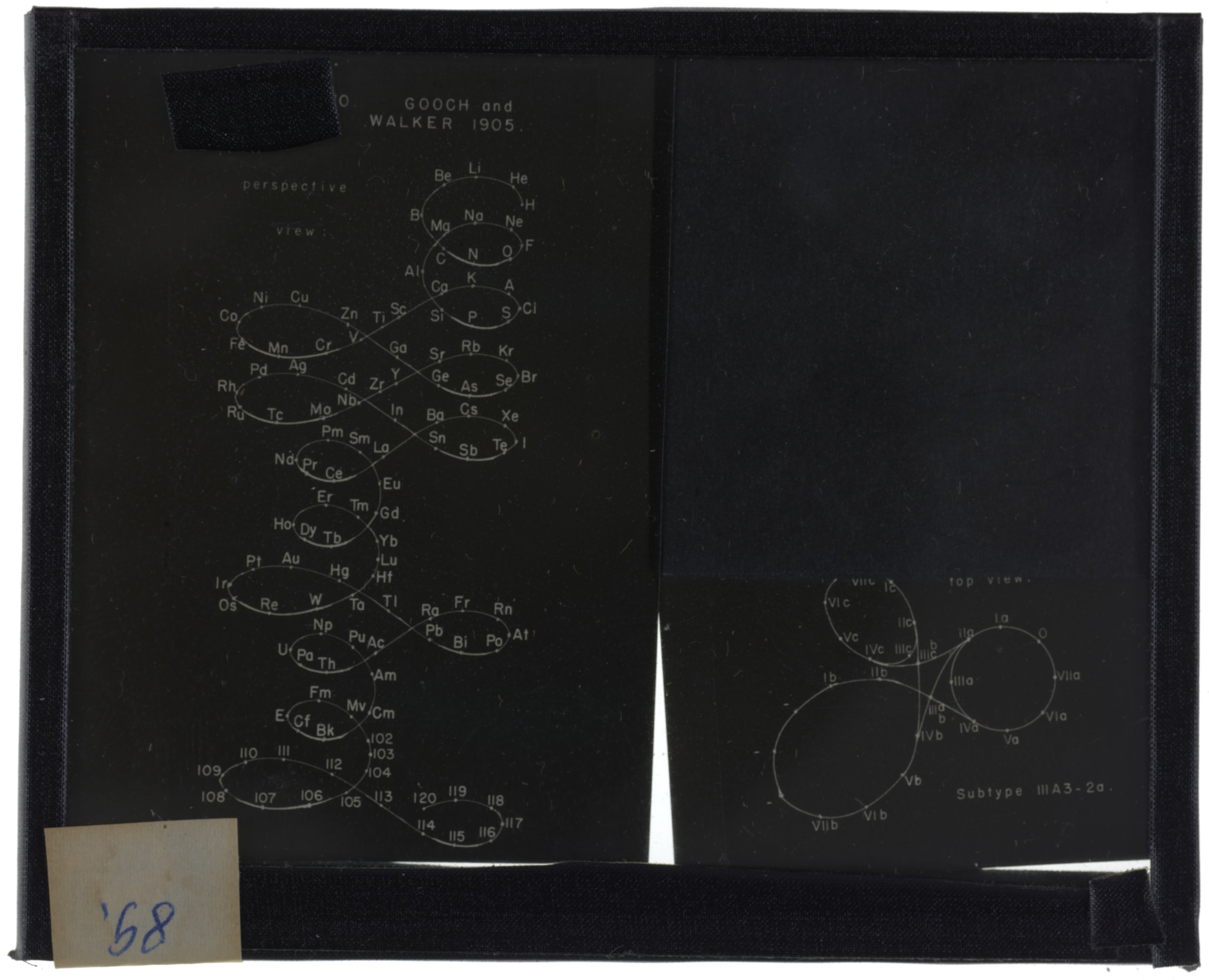 Periodic table in style of helix and space lemniscate with two additional loops for rare earth elements1905 (Original design), Circa 1957 (Date attributed to slide)