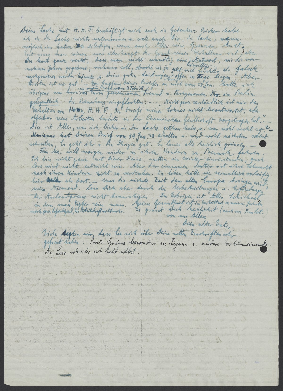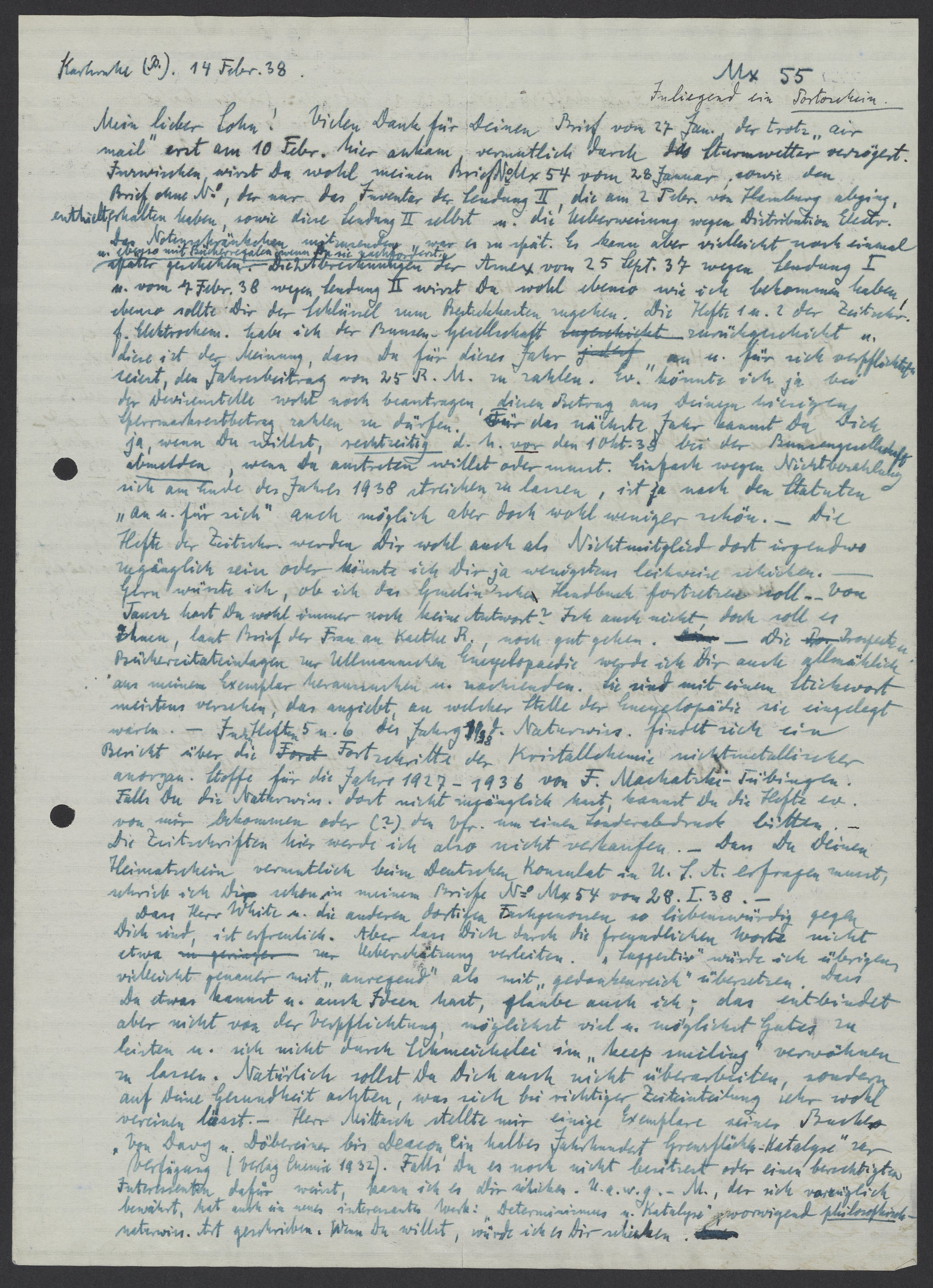 Letter from Georg Bredig to Max Bredig, February 14, 1938