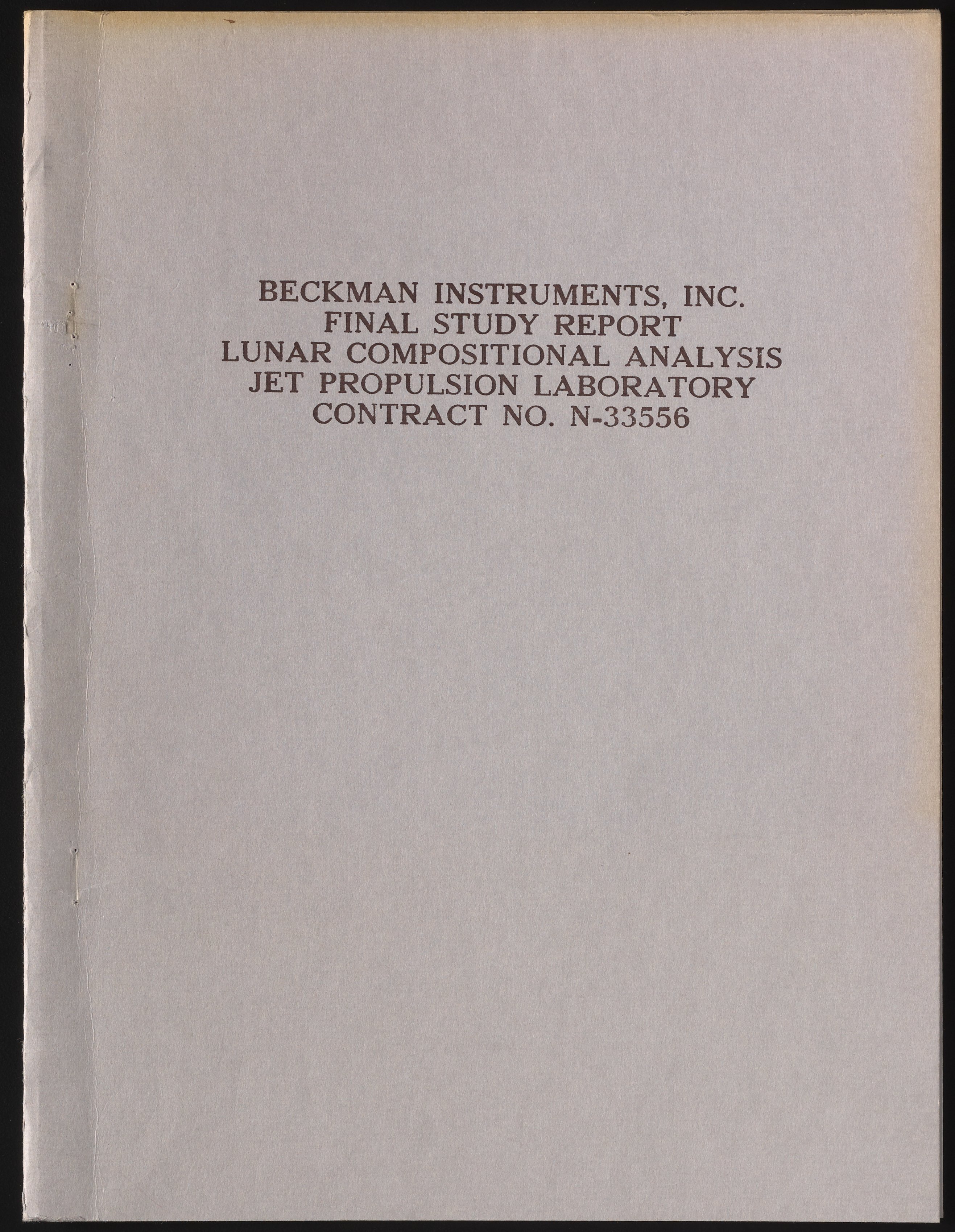 Beckman Instruments, Inc. “Final Study Report - Lunar Compositional Analysis,” July 8, 1961. Beckman Historical Collection, Box 18, Folder 17. Science History Institute. Philadelphia. https://digital.sciencehistory.org/works/gt54kn070.