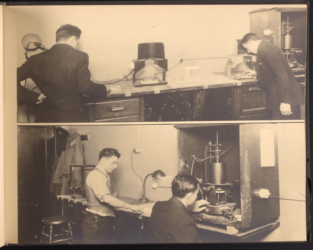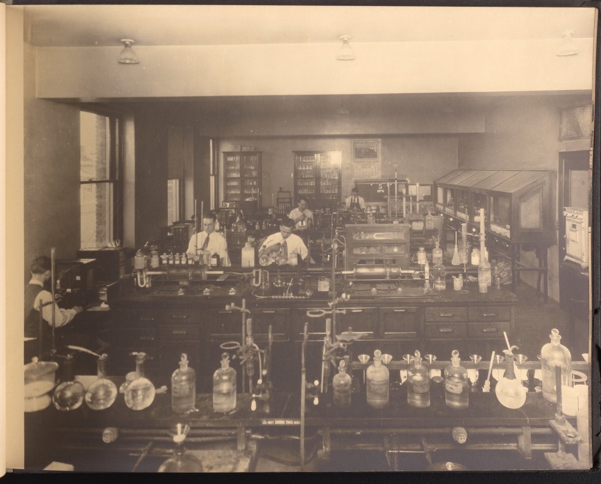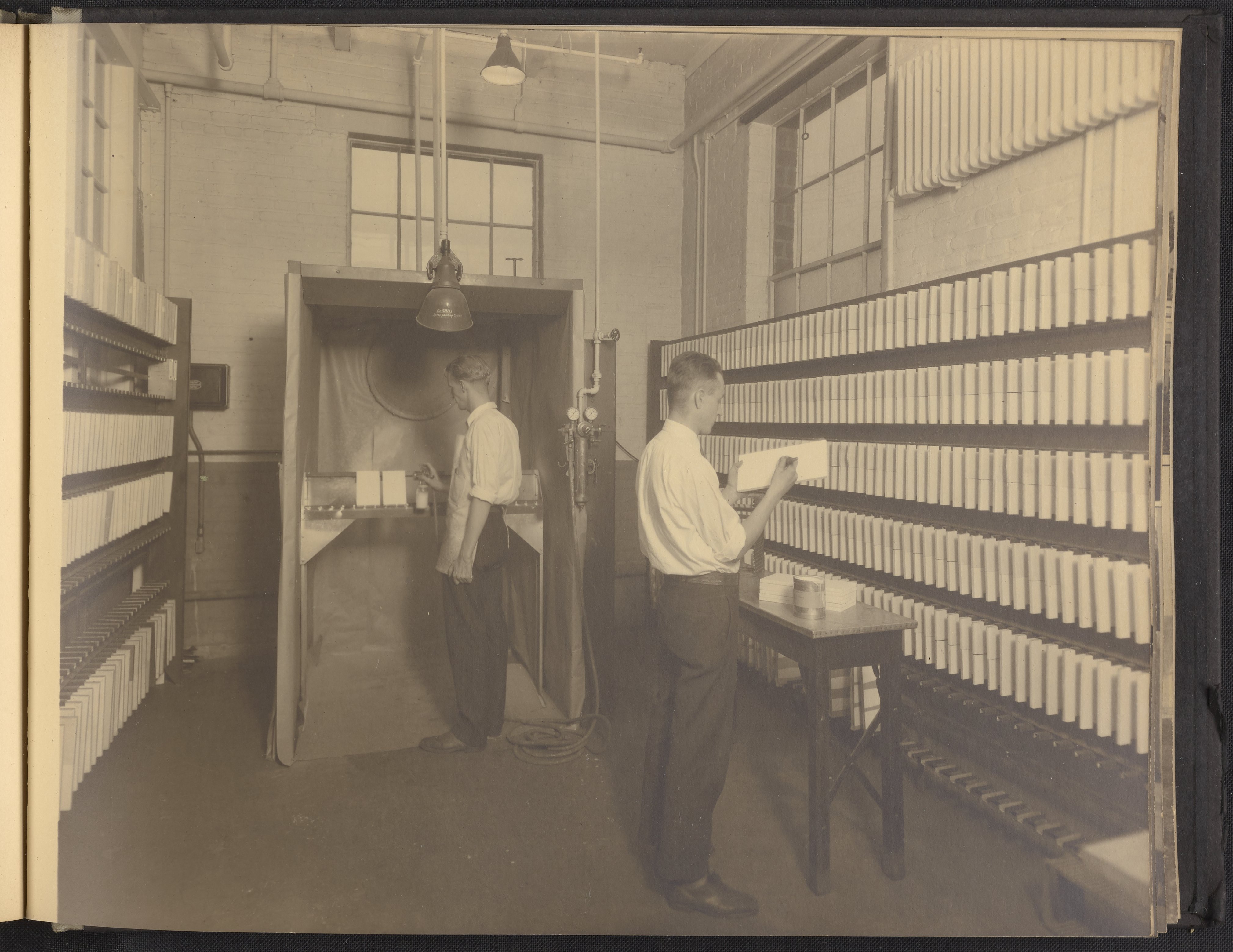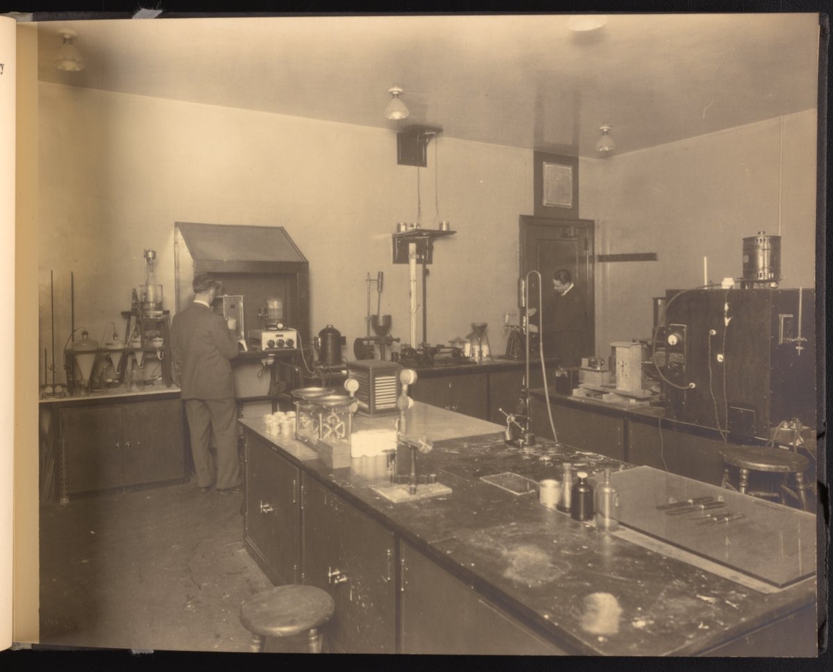 Small JPG1200 x 898px — 148 KBLarge JPG2880 x 2155px — 976 KBFull-sized JPG4228 x 3164px — 2.0 MBOriginal fileTIFF — 4228 x 3164px — 38.3 MBA publication showcasing the laboratories, apparatus, machinery, and personnel of the New Jersey Zinc Company. Intended to present the company's research facilities in Palmerton, Pennsylvania used for zinc pigment production. Includes twenty-two black and white photographs. The New Jersey Zinc Company (now the Horsehead Holding Corporation) was the largest producer of Zinc in the United States from 1897 to 1966. The work is digitized in its entirety.