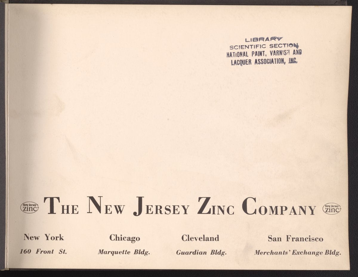 New Jersey Zinc Company. “Pigment - Research - Paint.” New York (State), n.d. HD9539.Z51 N48. Science History Institute. Philadelphia. https://digital.sciencehistory.org/works/gtzmptl.