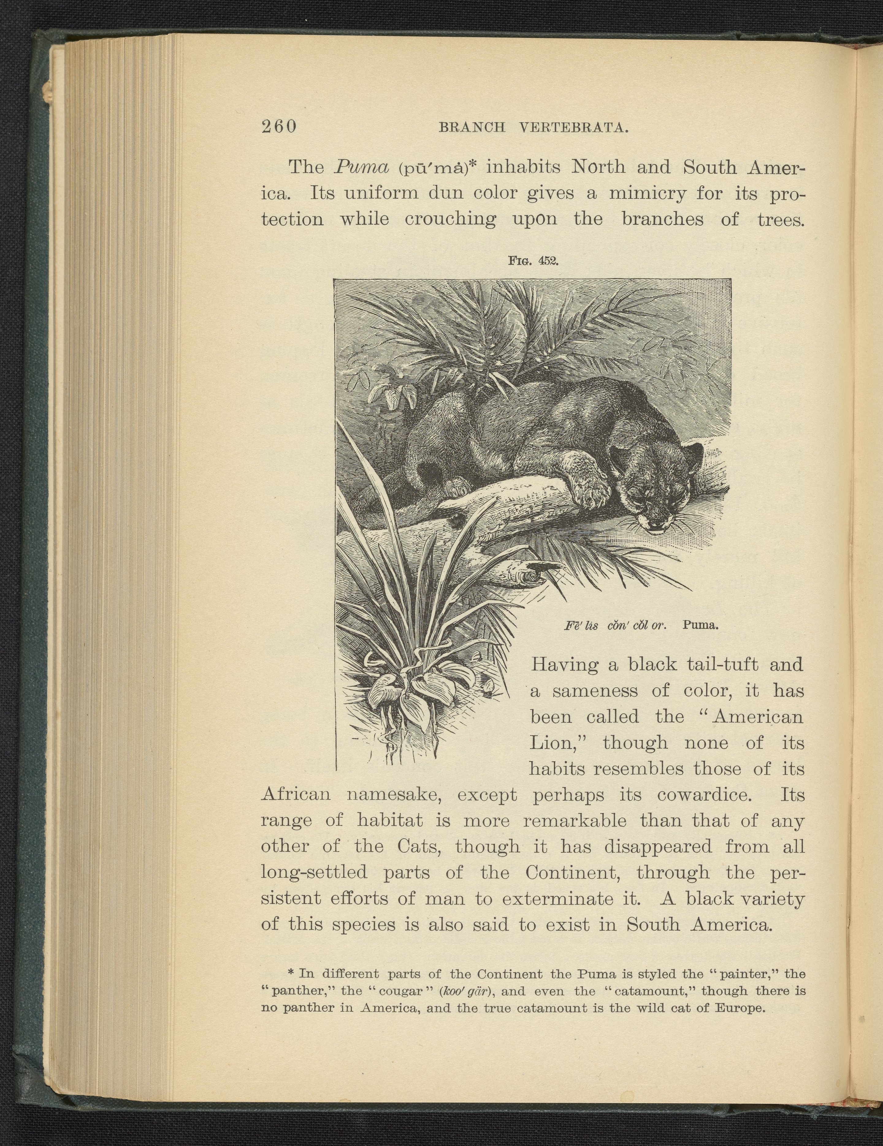 Steele, Joel Dorman, and Jenks, J. W. P. (John Whipple Potter). “Figure 452. Puma.” Popular Zoology. New York, New York: Chautauqua Press, 1887. https://digital.sciencehistory.org/works/gxbe7q7.