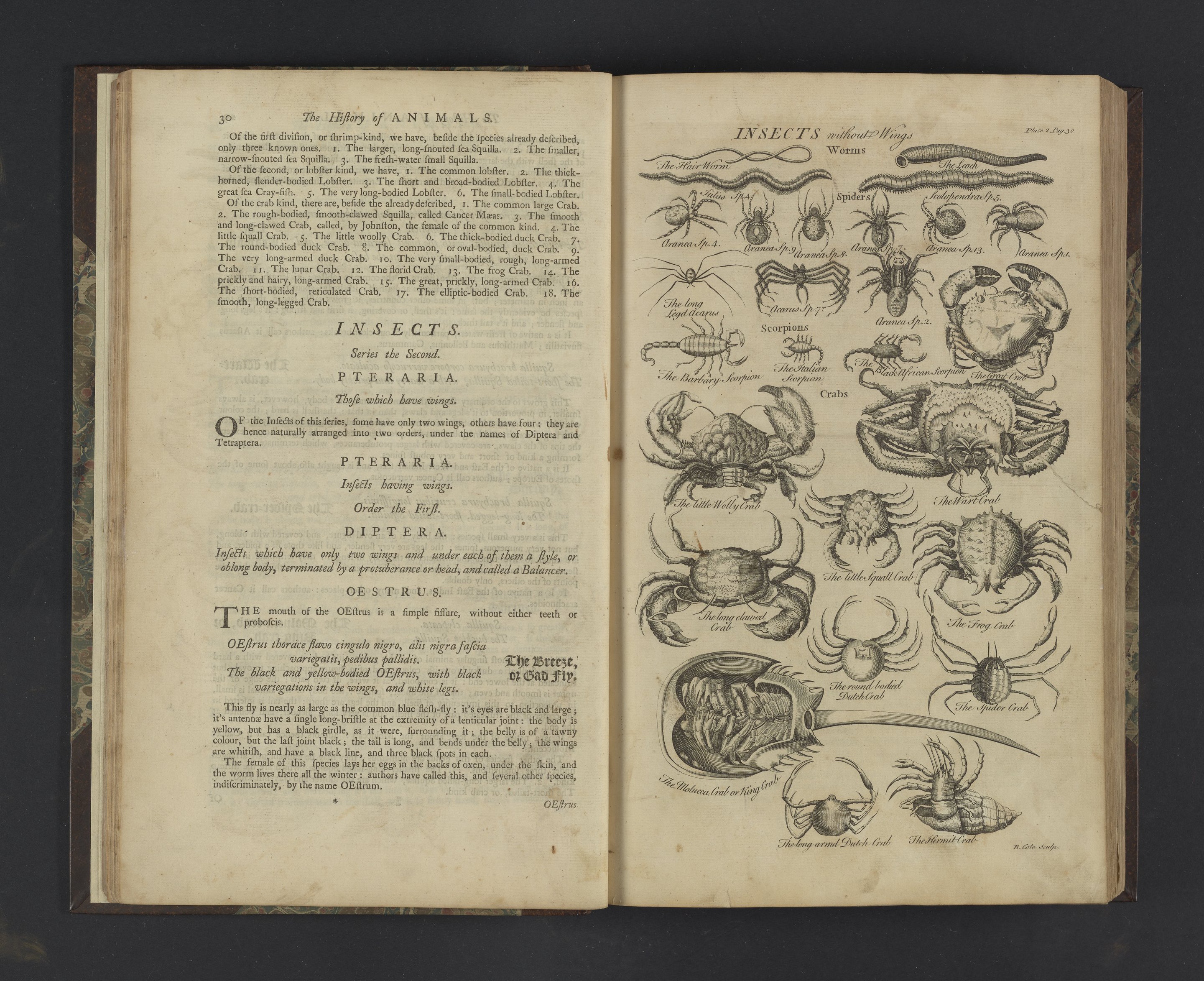 Hill, John. “Plate 2: Insects Without Wings.” In An History of Animals: Containing Descriptions of the Birds, Beasts, Fishes, and Insects, of the Several Parts of the World. London, England, 1752. https://digital.sciencehistory.org/works/h2t7g5s.