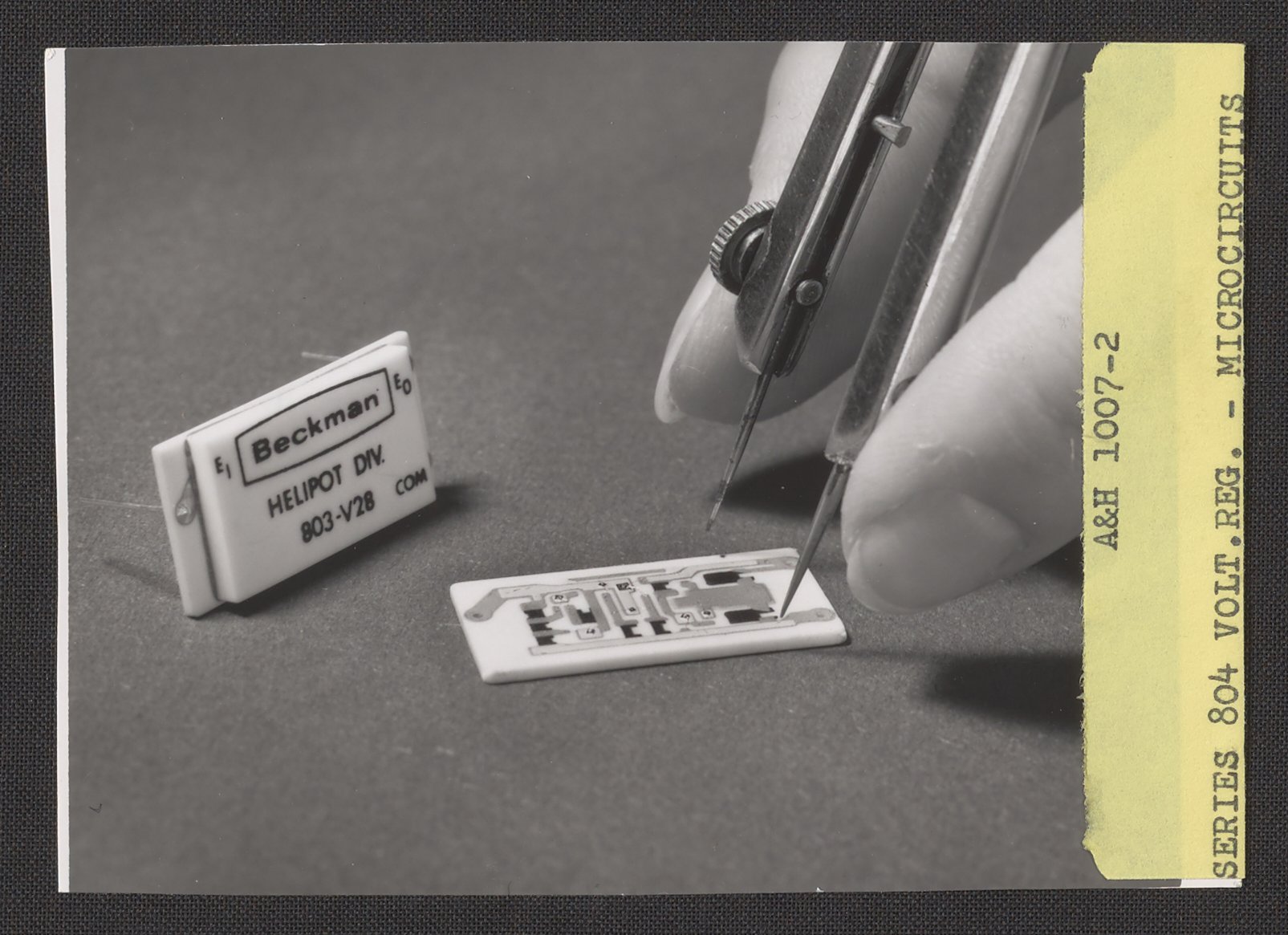 Armstrong & Hess. “Hand Holding a Compass with a Helipot Series 804 Voltage Regulator,” 1950–1969. Beckman Historical Collection, Box 85. Science History Institute. Philadelphia. https://digital.sciencehistory.org/works/h702q6692.