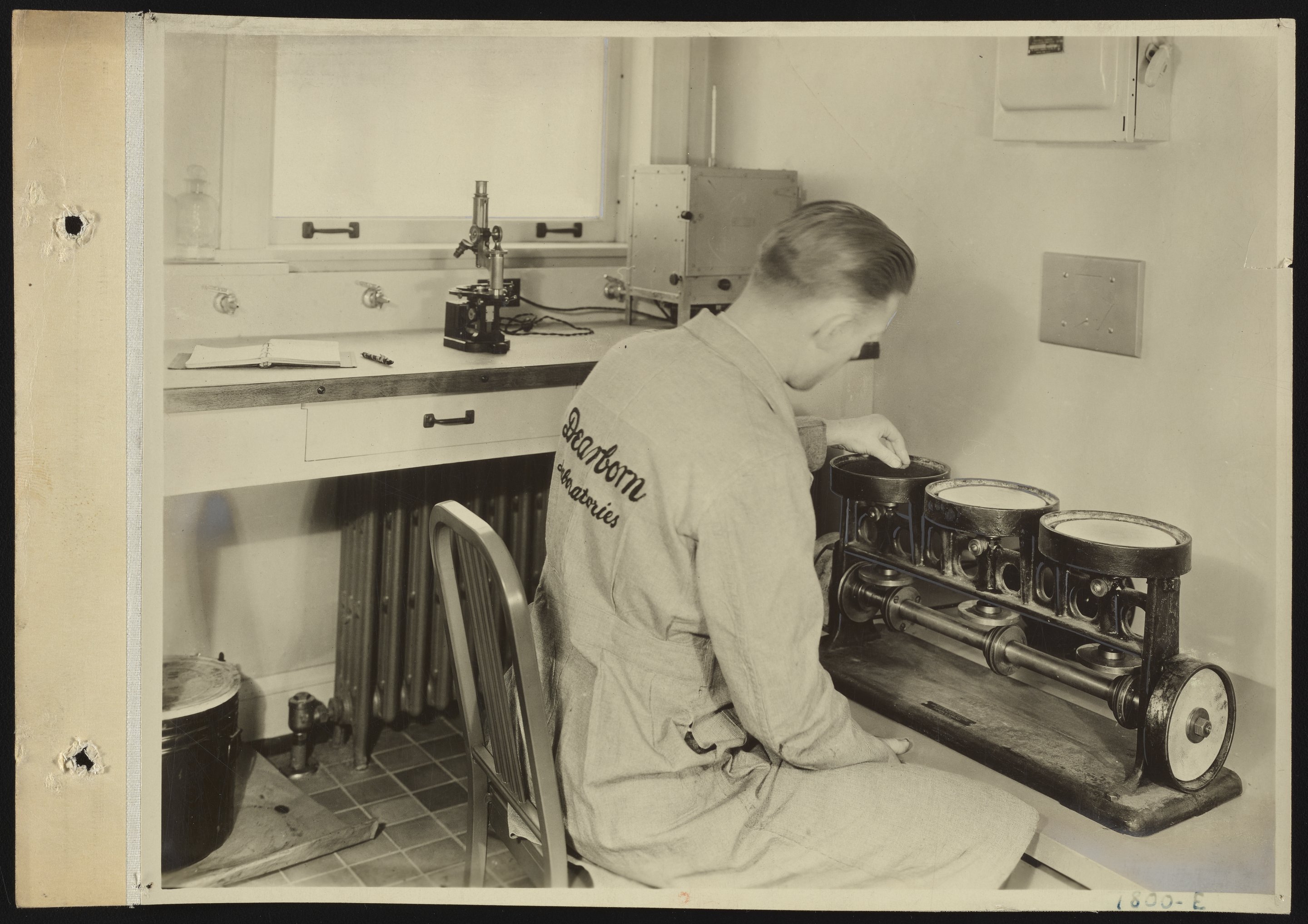 Dearborn Chemical Company. “Al Woodward Conducting Corrosion Test at Dearborn Laboratory Facility,” circa 1930. BetzDearborn, Incorporated Records, Box 17, Folder 13. Science History Institute. Philadelphia. https://digital.sciencehistory.org/works/h702q731b.