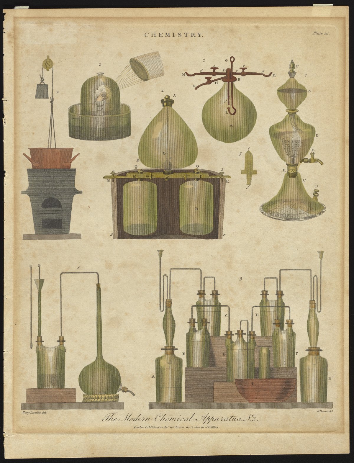 Lascelles, Henry. “Plate III: The Modern Chemical Apparatus. No.3.” Wove paper, paper (fiber product). London, England: Wilkes, John, of Milland House, Sussex, December 1, 1800. Science History Institute. Philadelphia. https://digital.sciencehistory.org/works/h989r390s.
