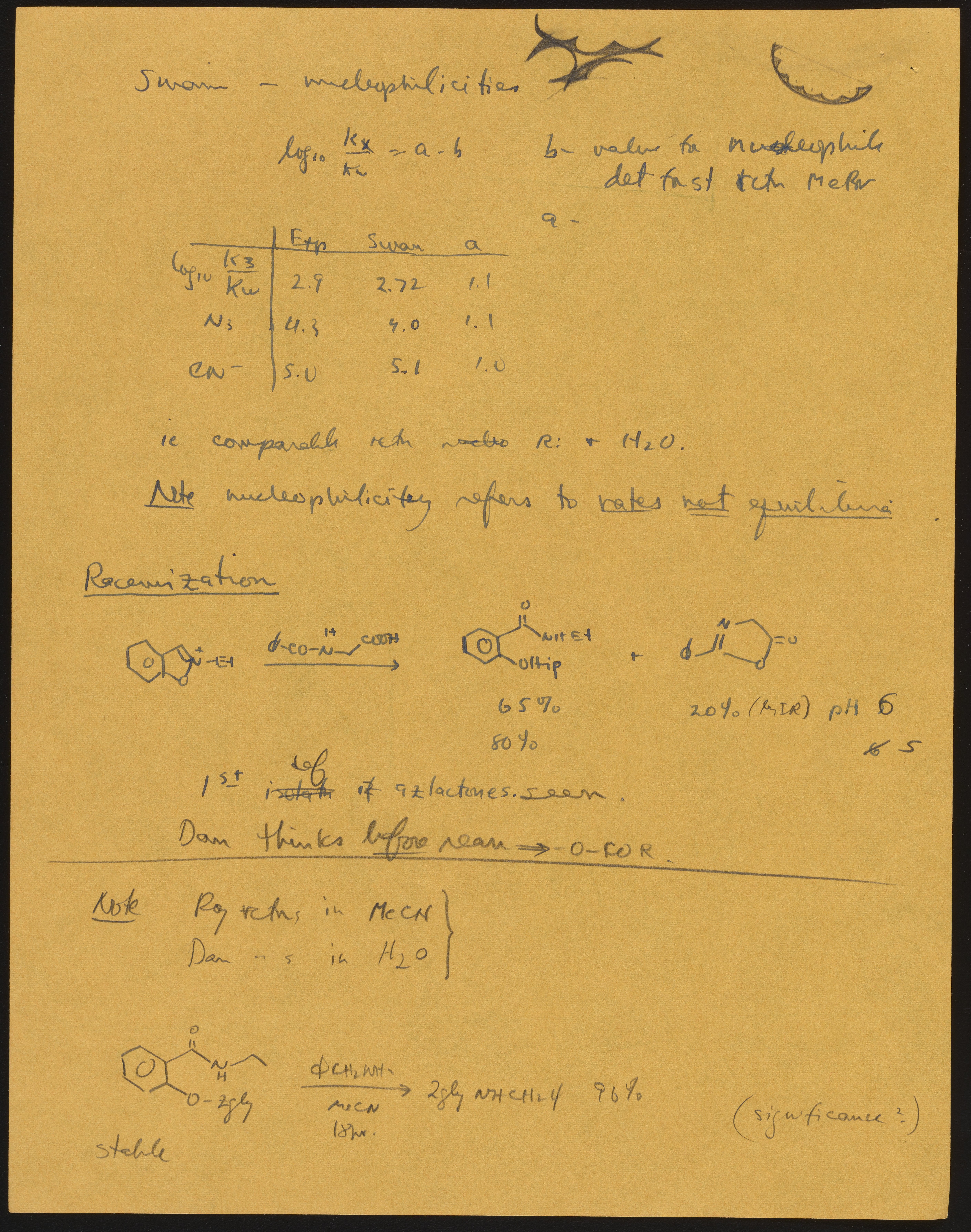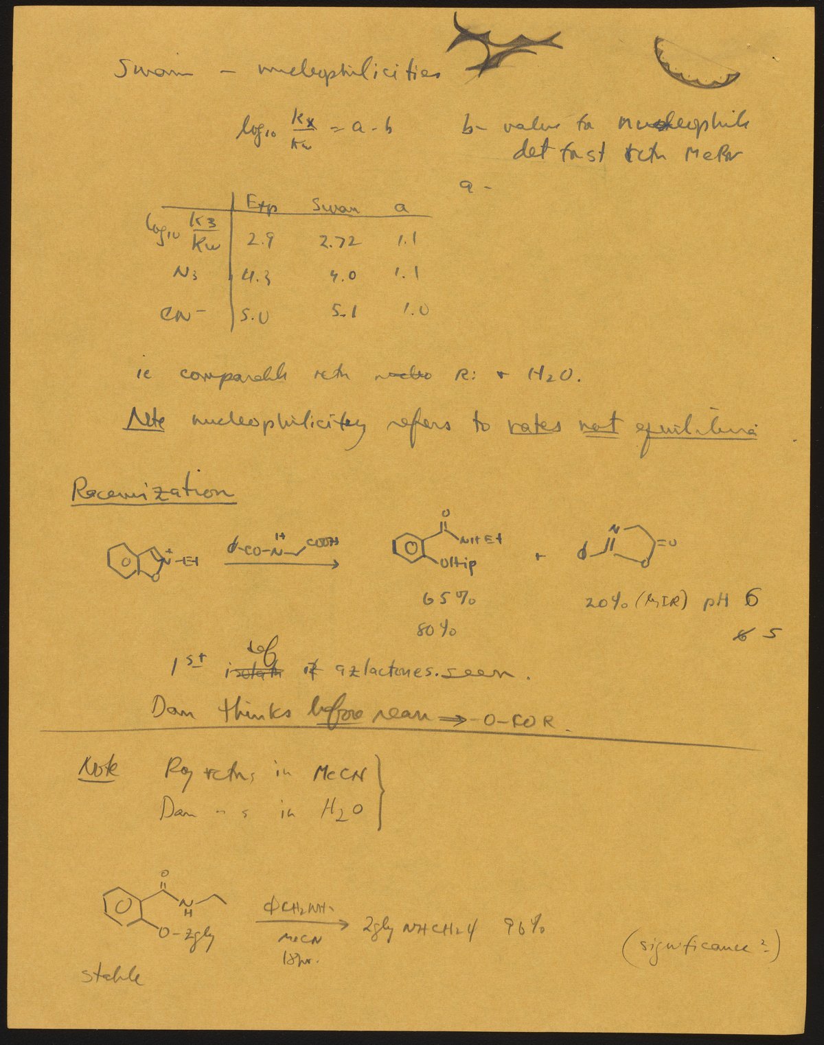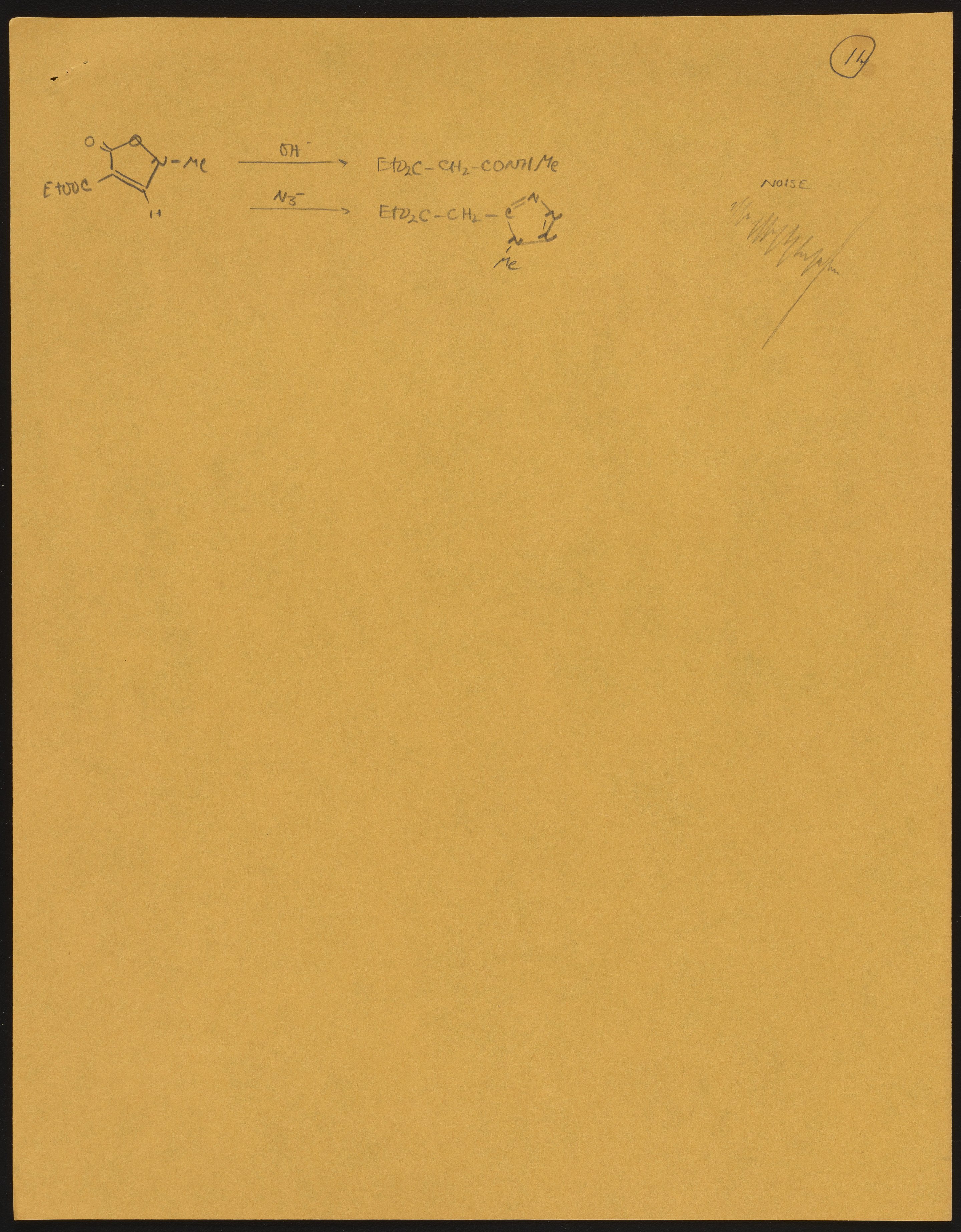 Kohler, Robert E. “R. B. (Robert Burns) Woodward Seminar Entitled ‘N-Et Benzisoxazolium Salts.’” Notes from R. B. (Robert Burns) Woodward's Seminars, circa 1959–1966. Folder 2. Science History Institute. Philadelphia. https://digital.sciencehistory.org/works/h989r4102.