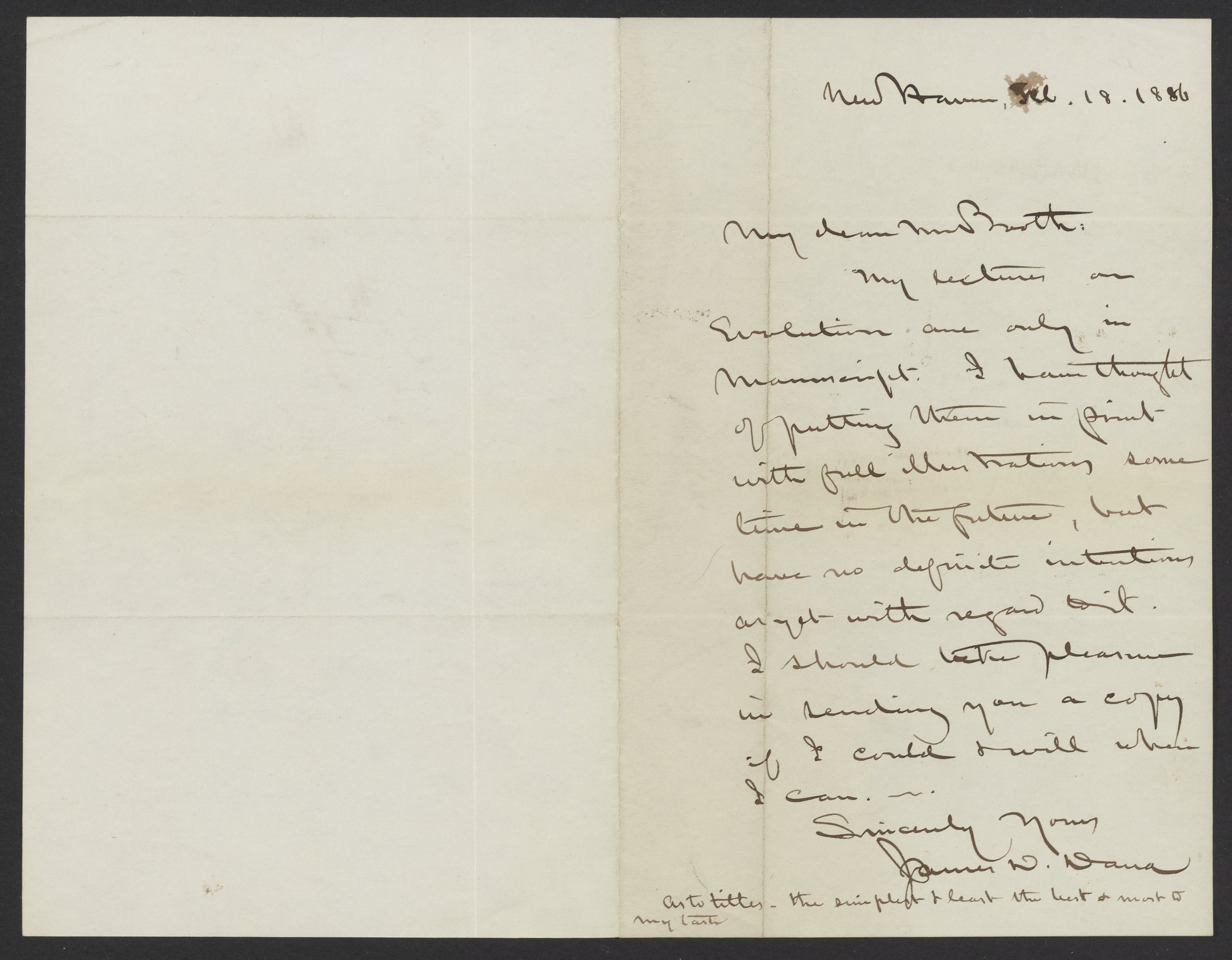 Dana, James Dwight. “Letter from James Dwight Dana to James Curtis Booth, February 18, 1886,” February 18, 1886. Papers of James Curtis Booth, Box 1, Folder 8. Science History Institute. Philadelphia. https://digital.sciencehistory.org/works/hb2rspk.