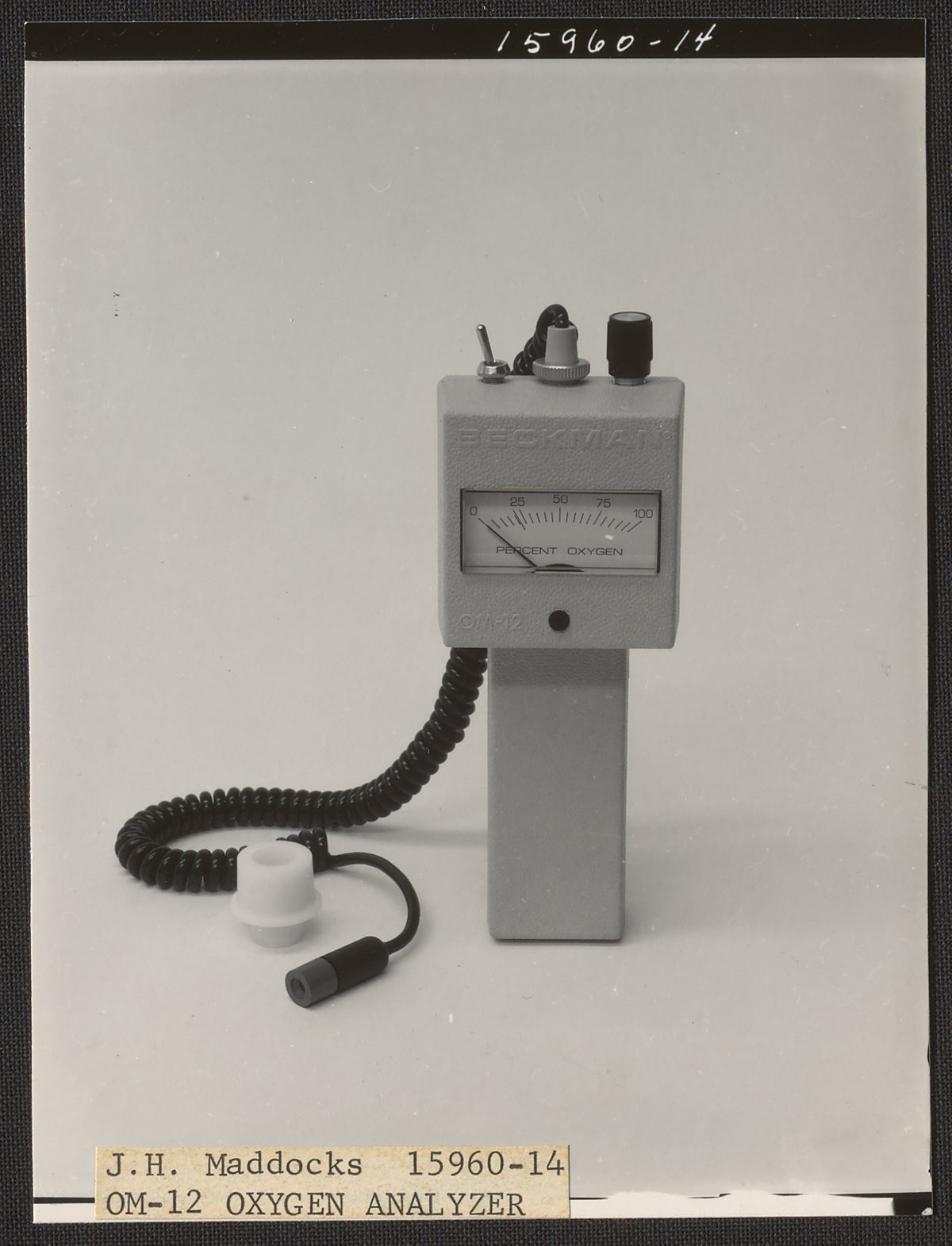 Maddocks, J. H. “Beckman OM-12 Oxygen Analyzer,” circa 1974. Beckman Historical Collection, Box 84. Science History Institute. Philadelphia. https://digital.sciencehistory.org/works/hd76s046g.