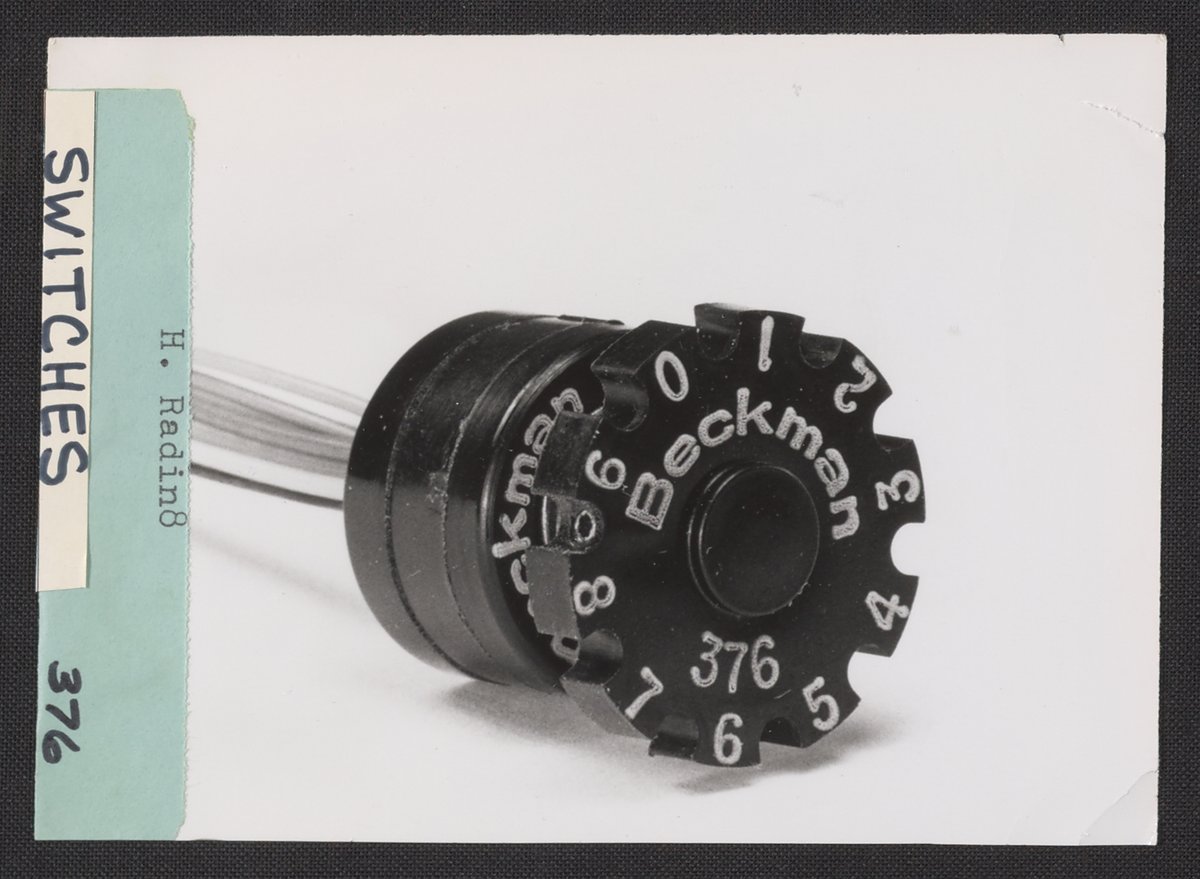 Herb Radin and Associates. “Beckman Model 376 Switch,” 1950–1969. Beckman Historical Collection, Box 85. Science History Institute. Philadelphia. https://digital.sciencehistory.org/works/hd76s061k.
