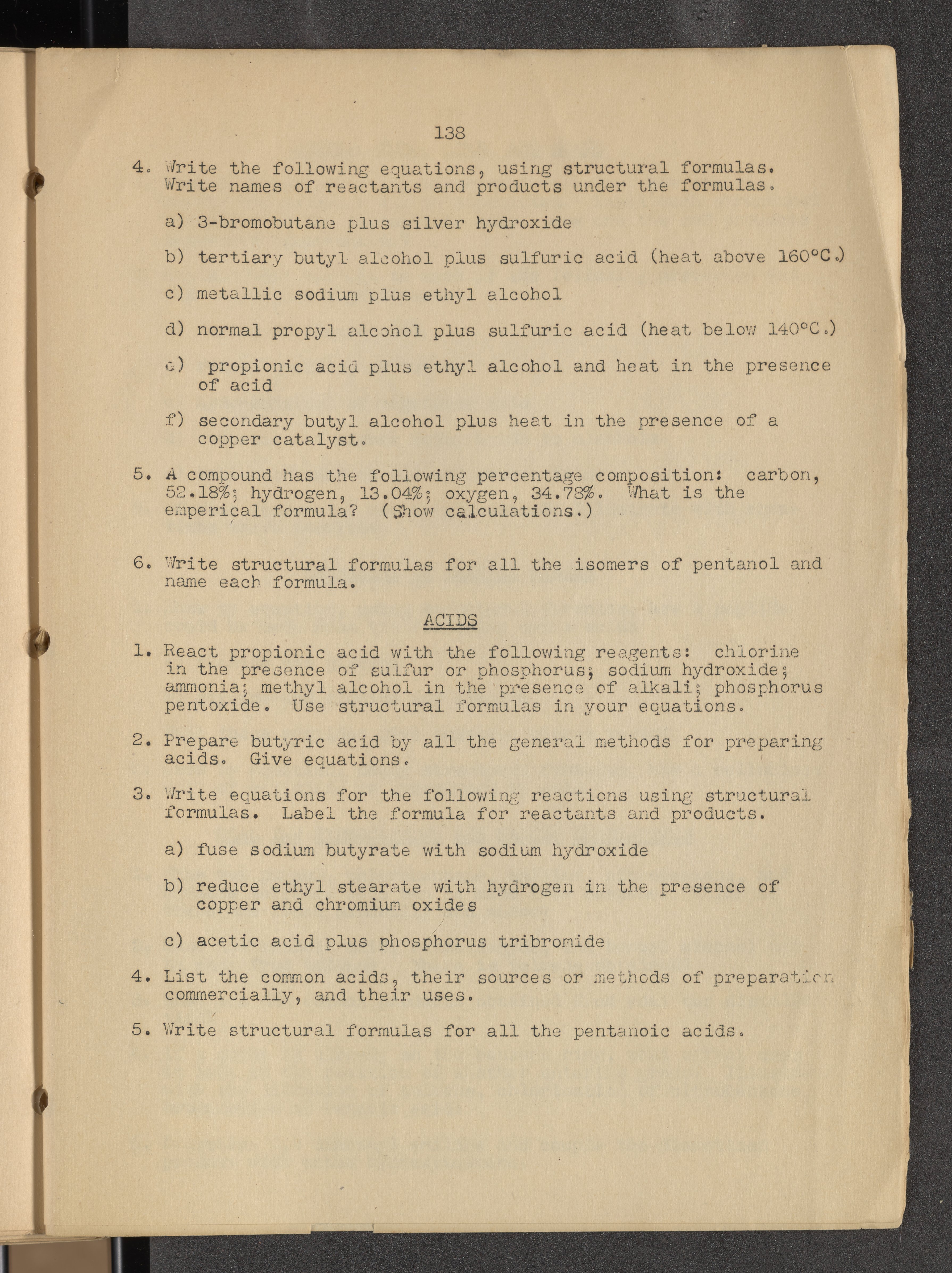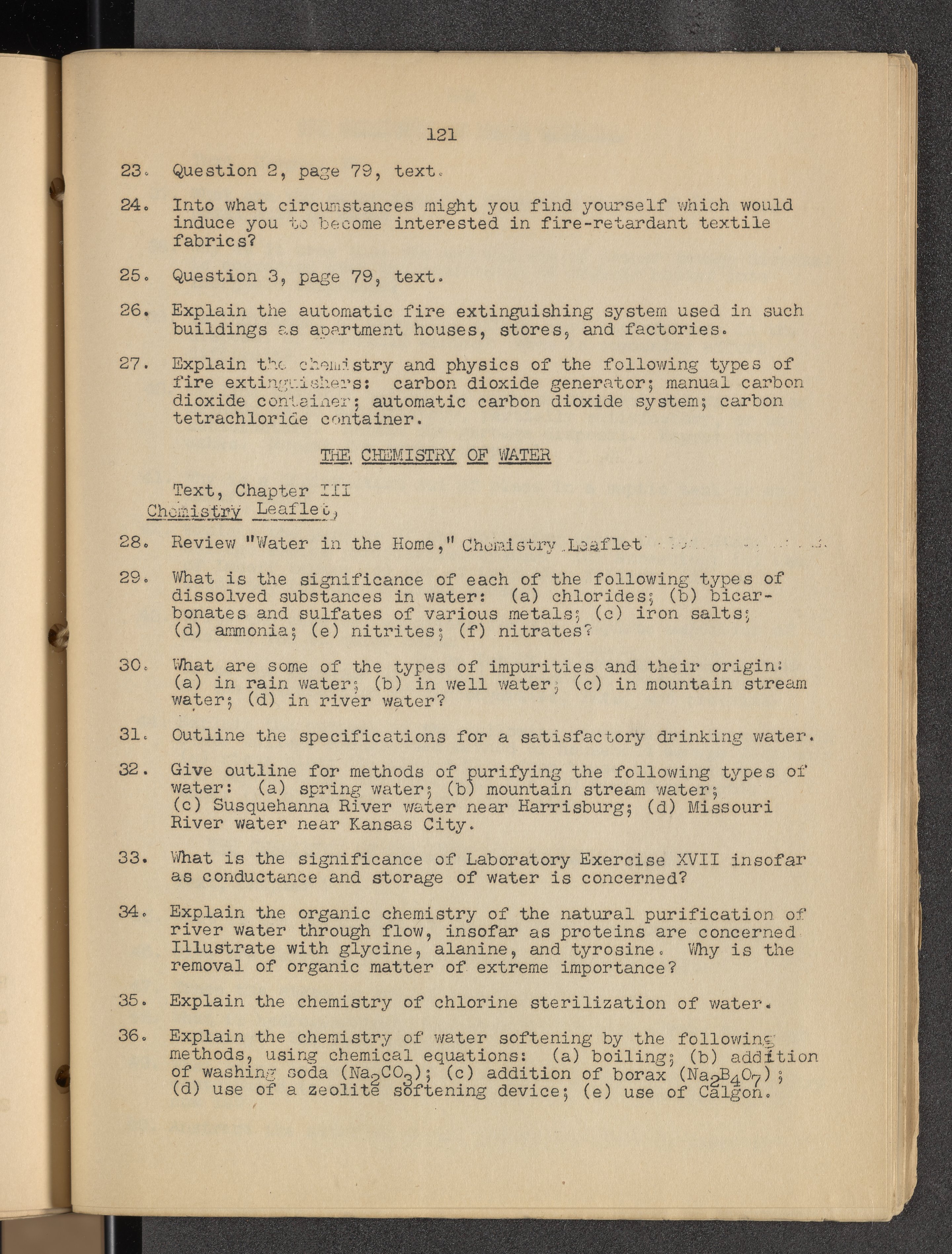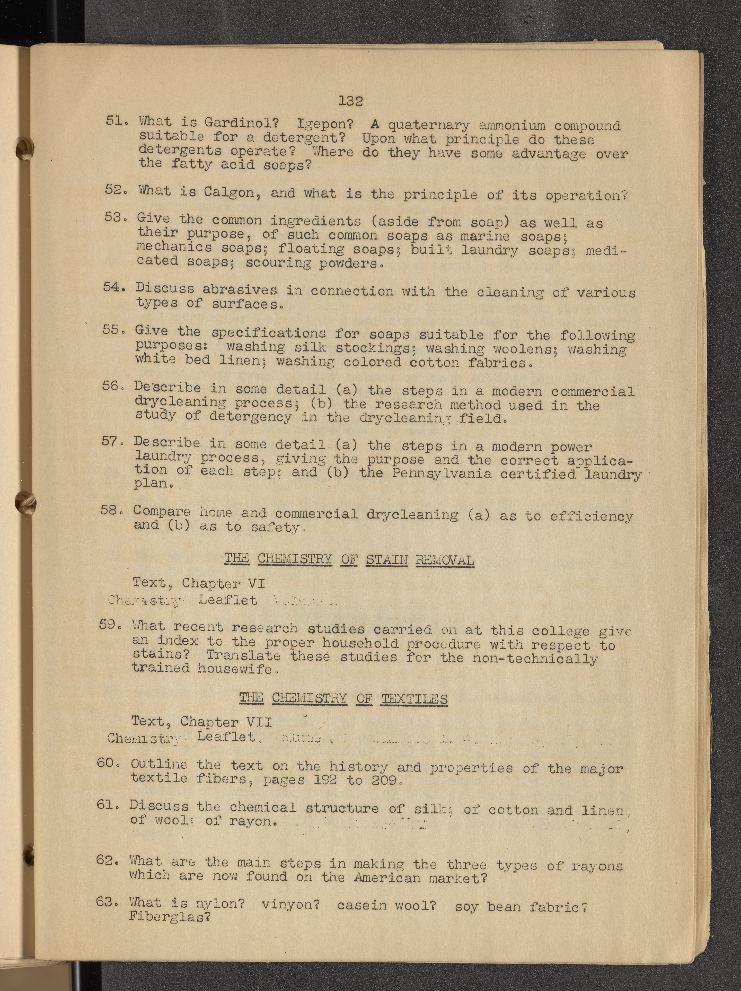 Study questions for Household and Organic Chemistry course at Pennsylvania State University