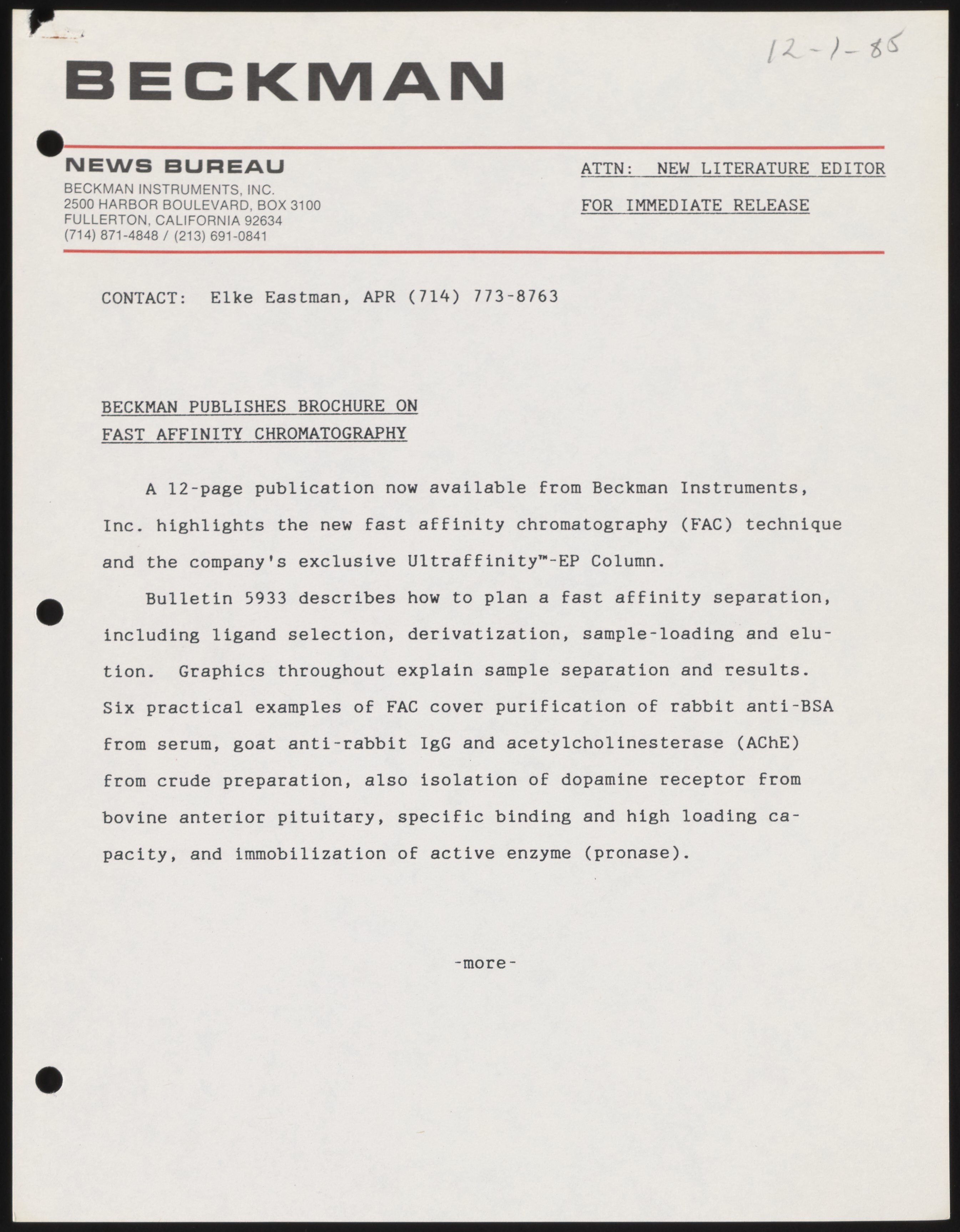 Beckman Publishes Brochure on Fast Affinity Chromatography
