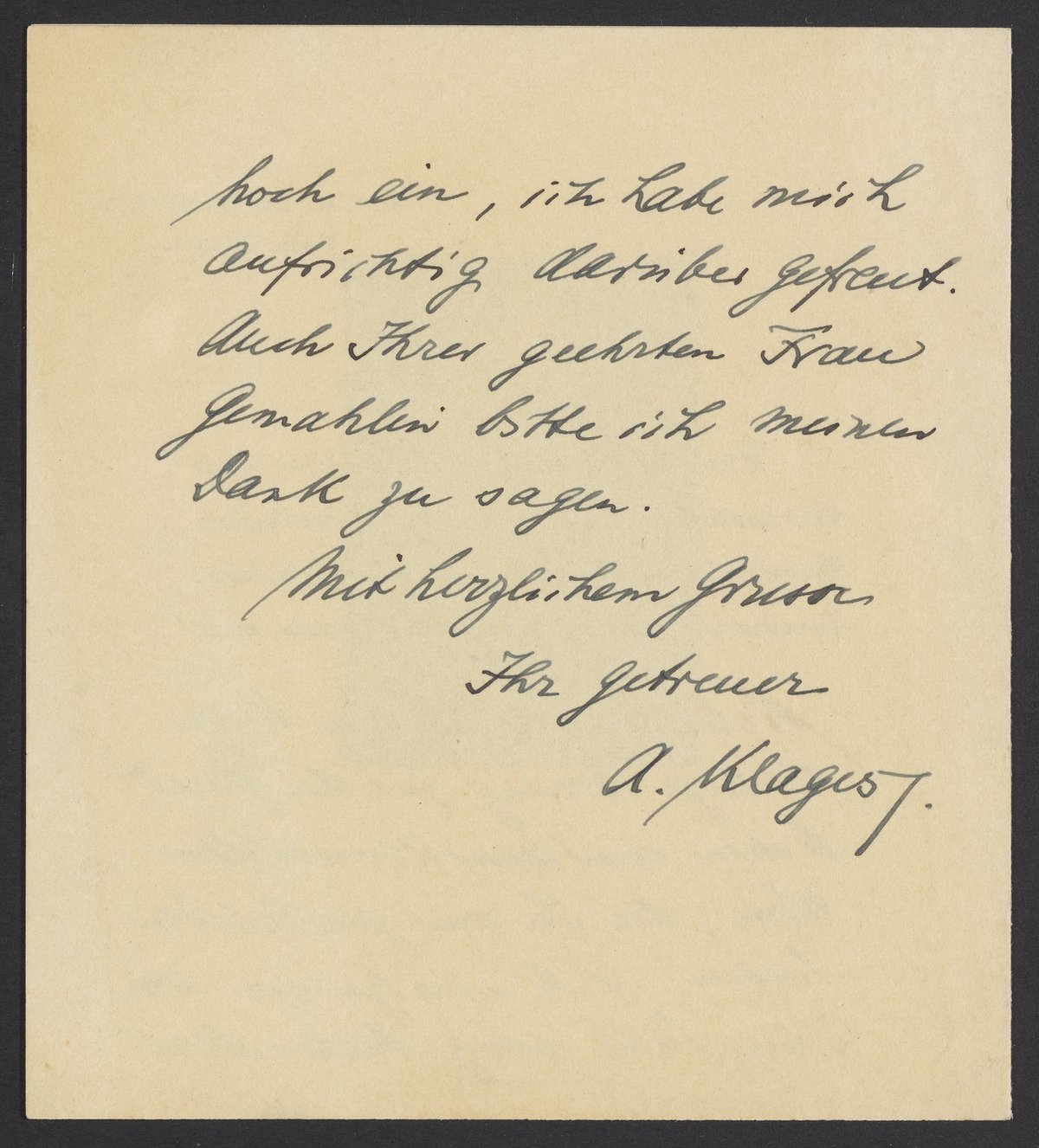 Small JPG1200 x 682px — 97.3 KBLarge JPG2880 x 1637px — 581 KBFull-sized JPG6090 x 3461px — 2.6 MBOriginal fileTIFF — 6090 x 3461px — 60.4 MBThank you card from A. Klagest to Georg Bredig (1868-1944).