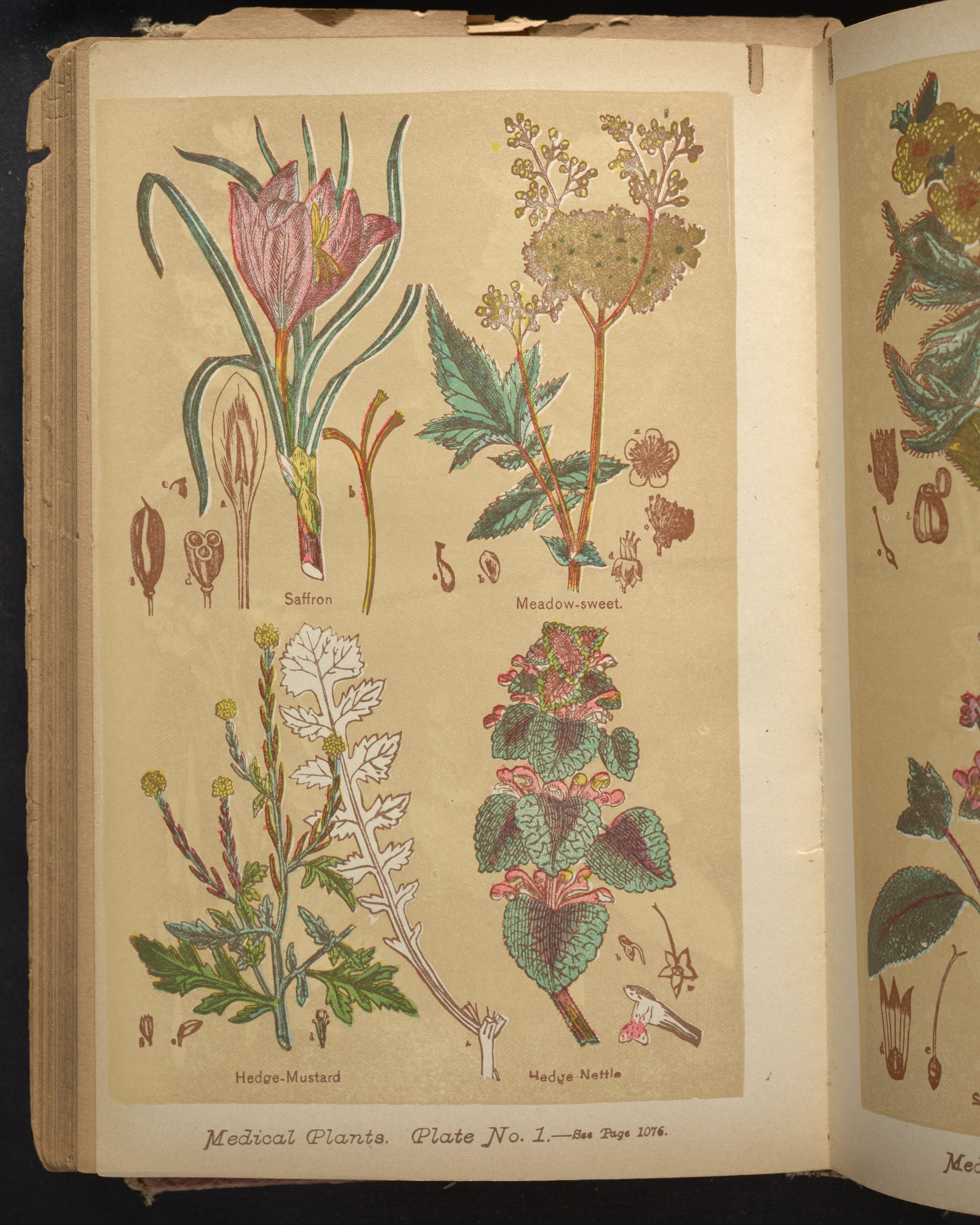 Depicts saffron, meadow-sweet, hedge-mustard, and hedge-nettle.