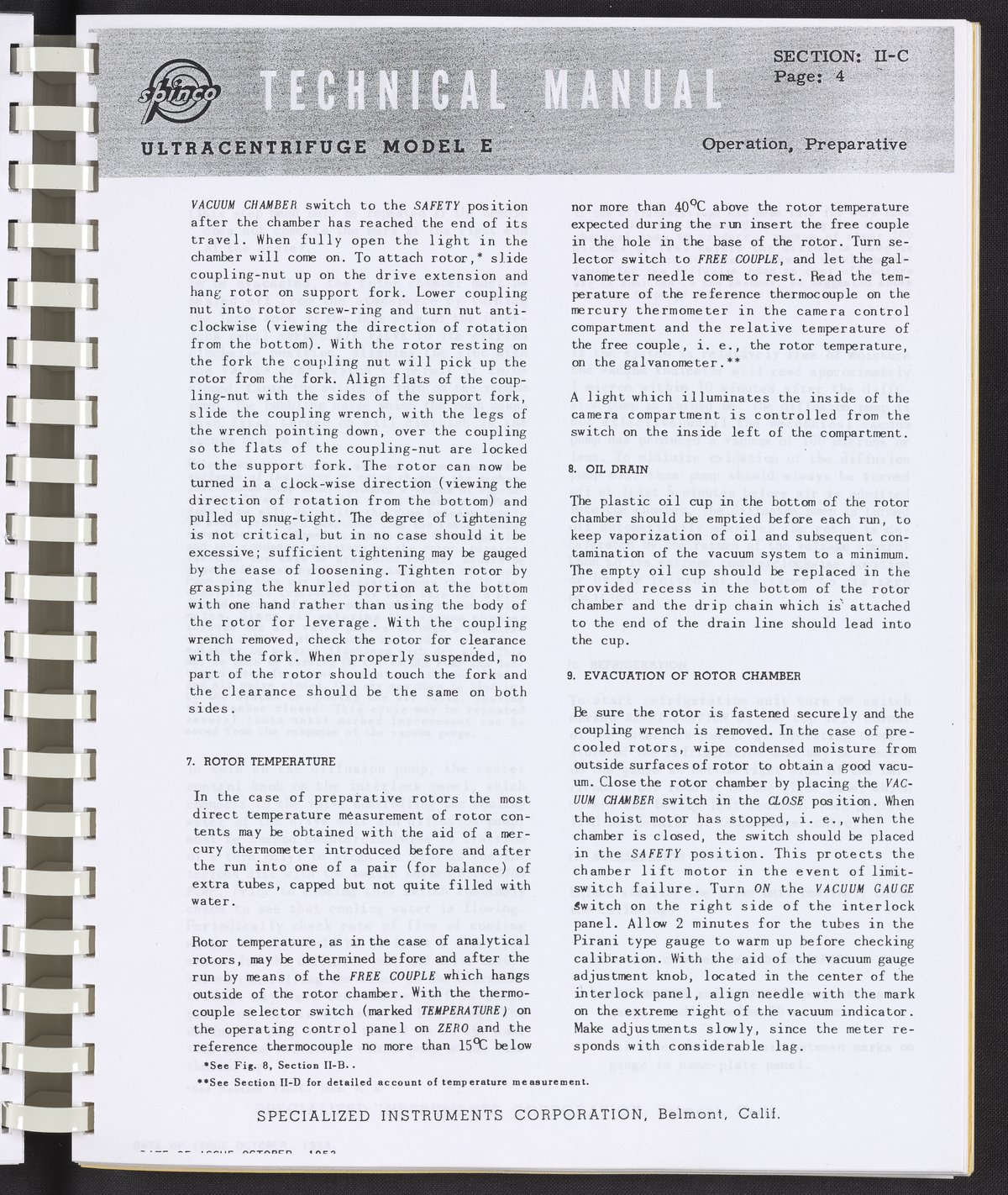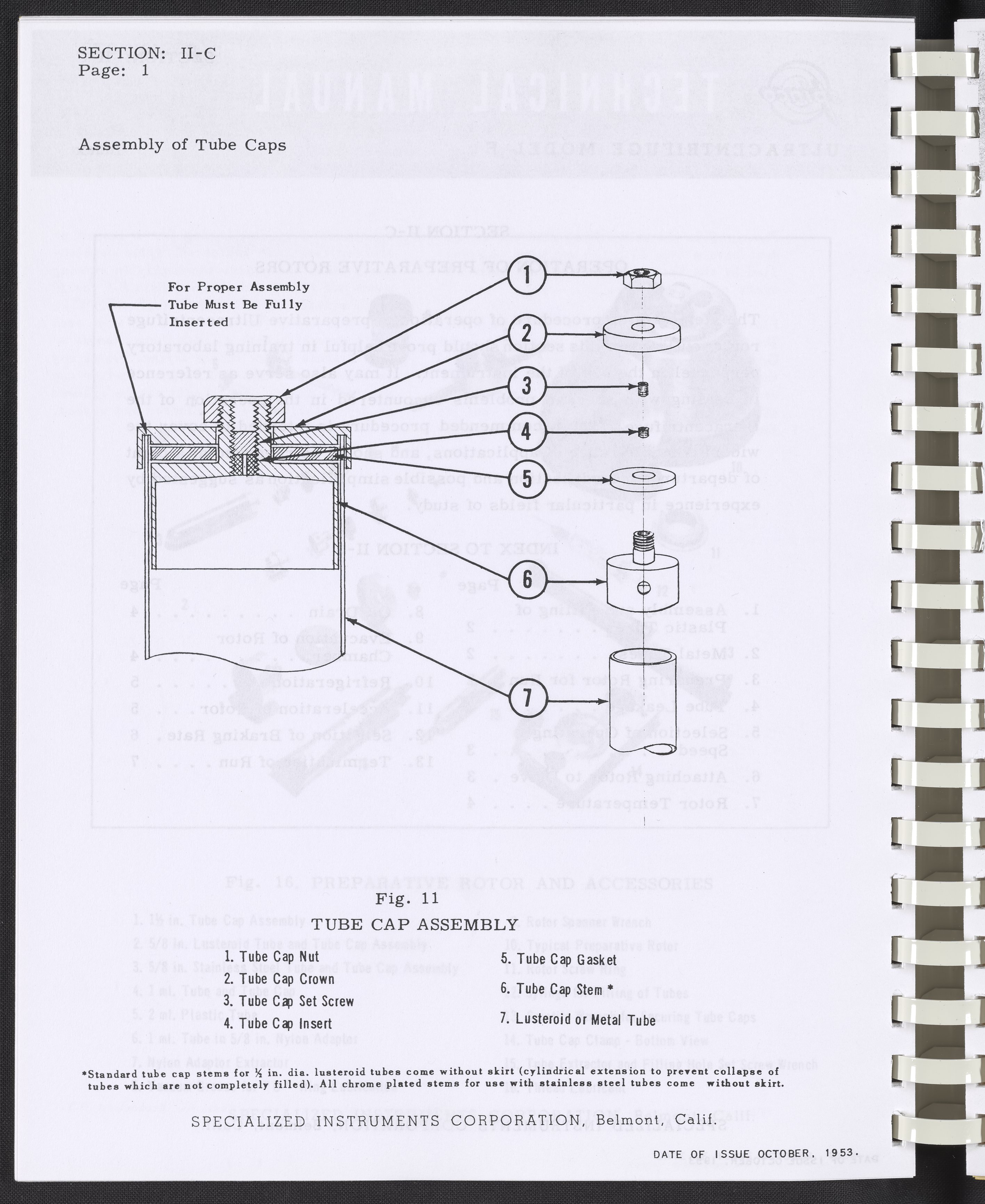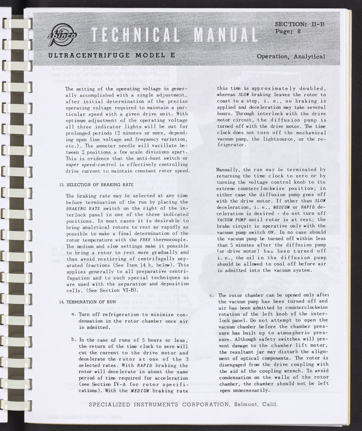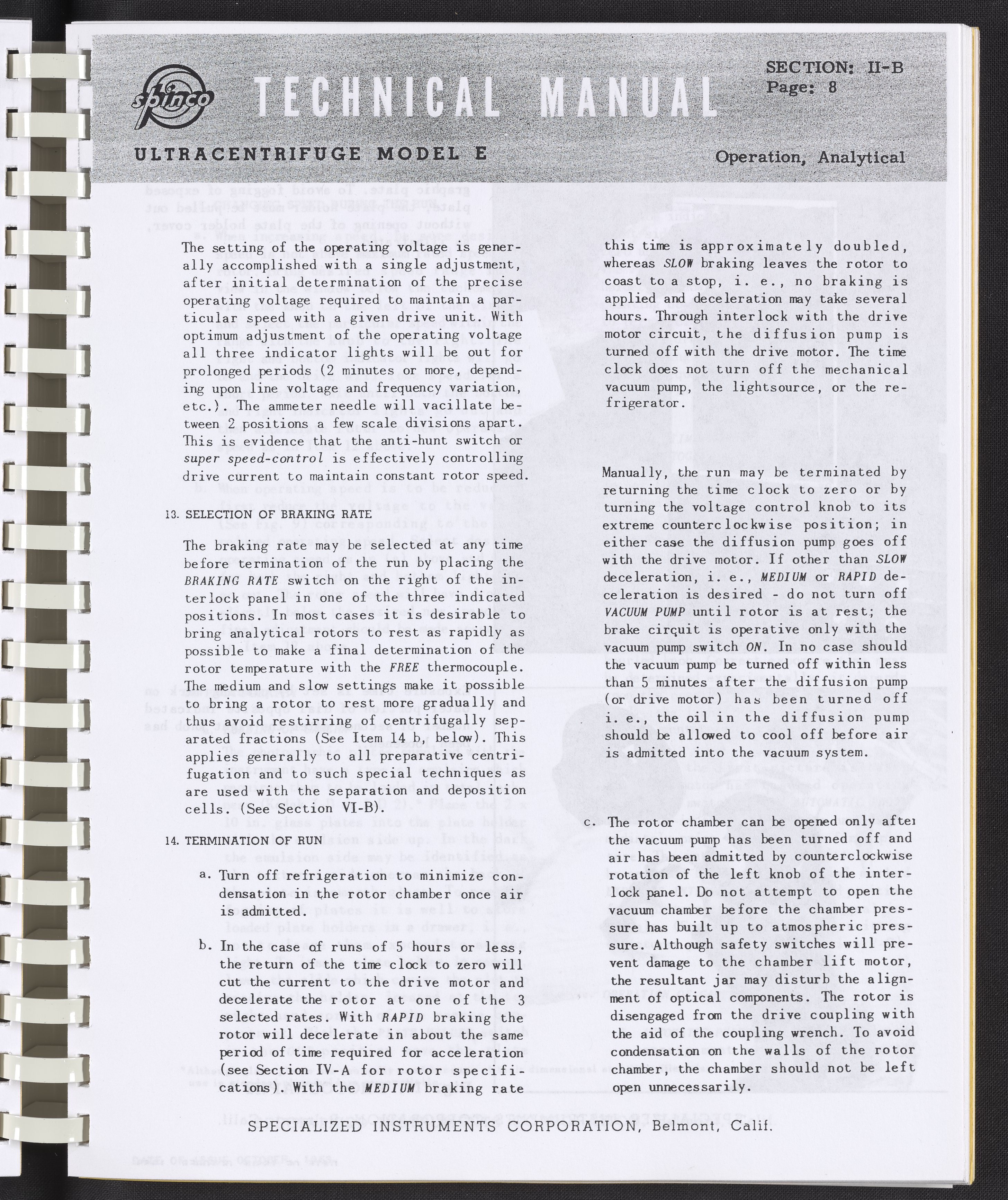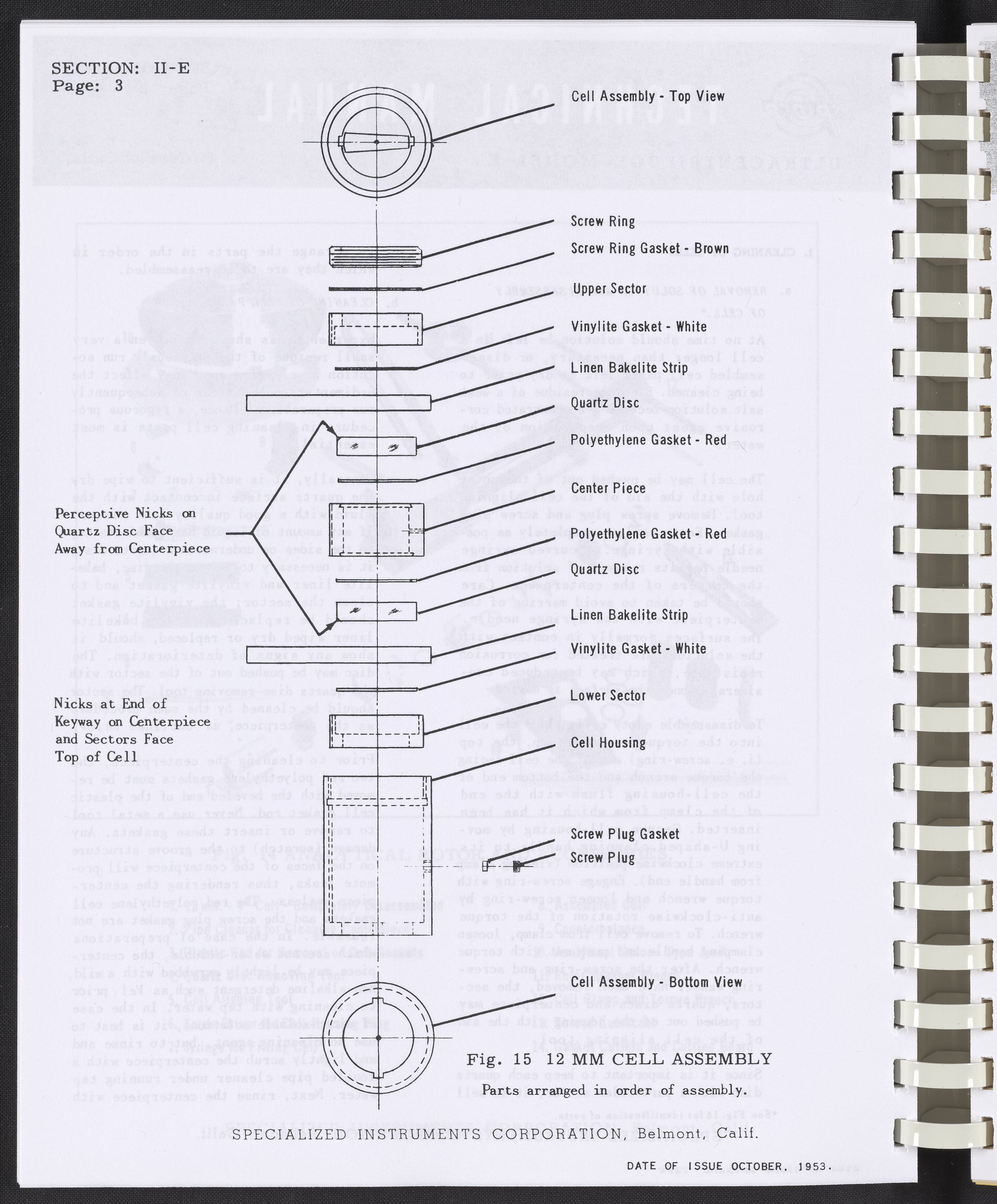 Beckman Instruments, Inc. Spinco Division. “Technical Manual, Spinco Ultracentrifuge Model E,” 1953–1954. Beckman Historical Collection, Box 121, Folder 9. Science History Institute. Philadelphia. https://digital.sciencehistory.org/works/hm50ts49m.