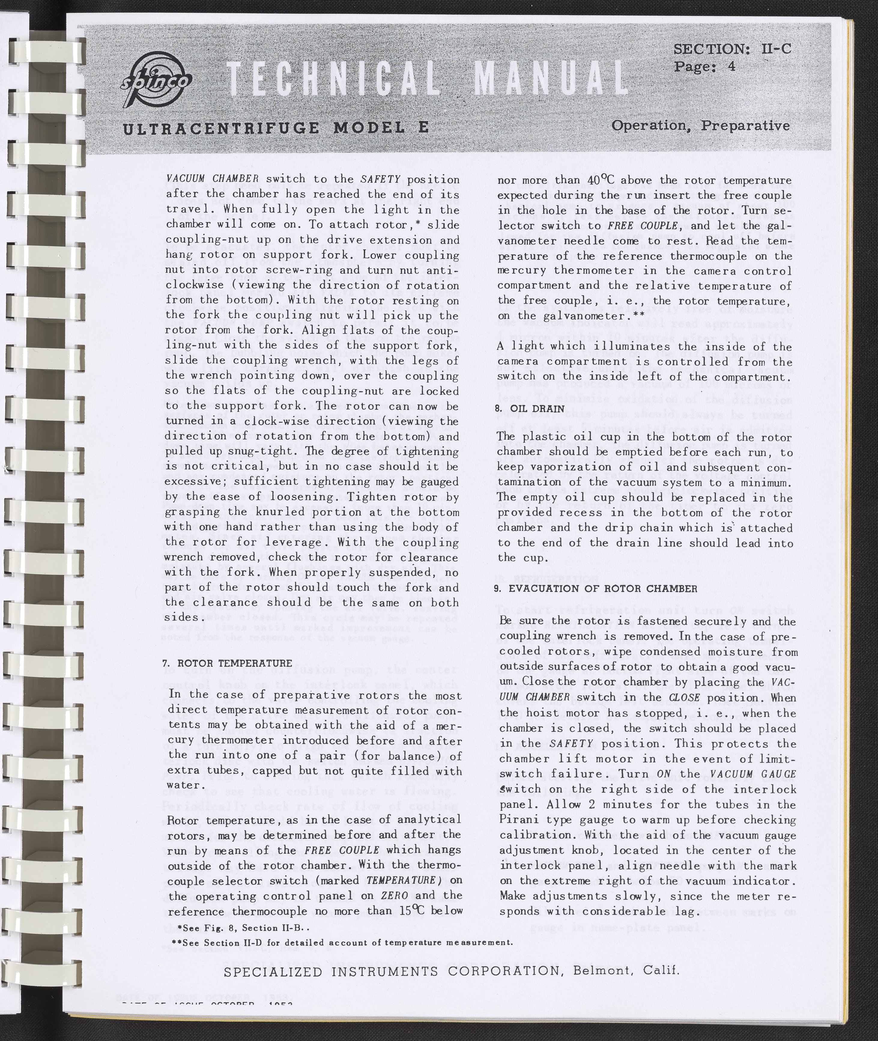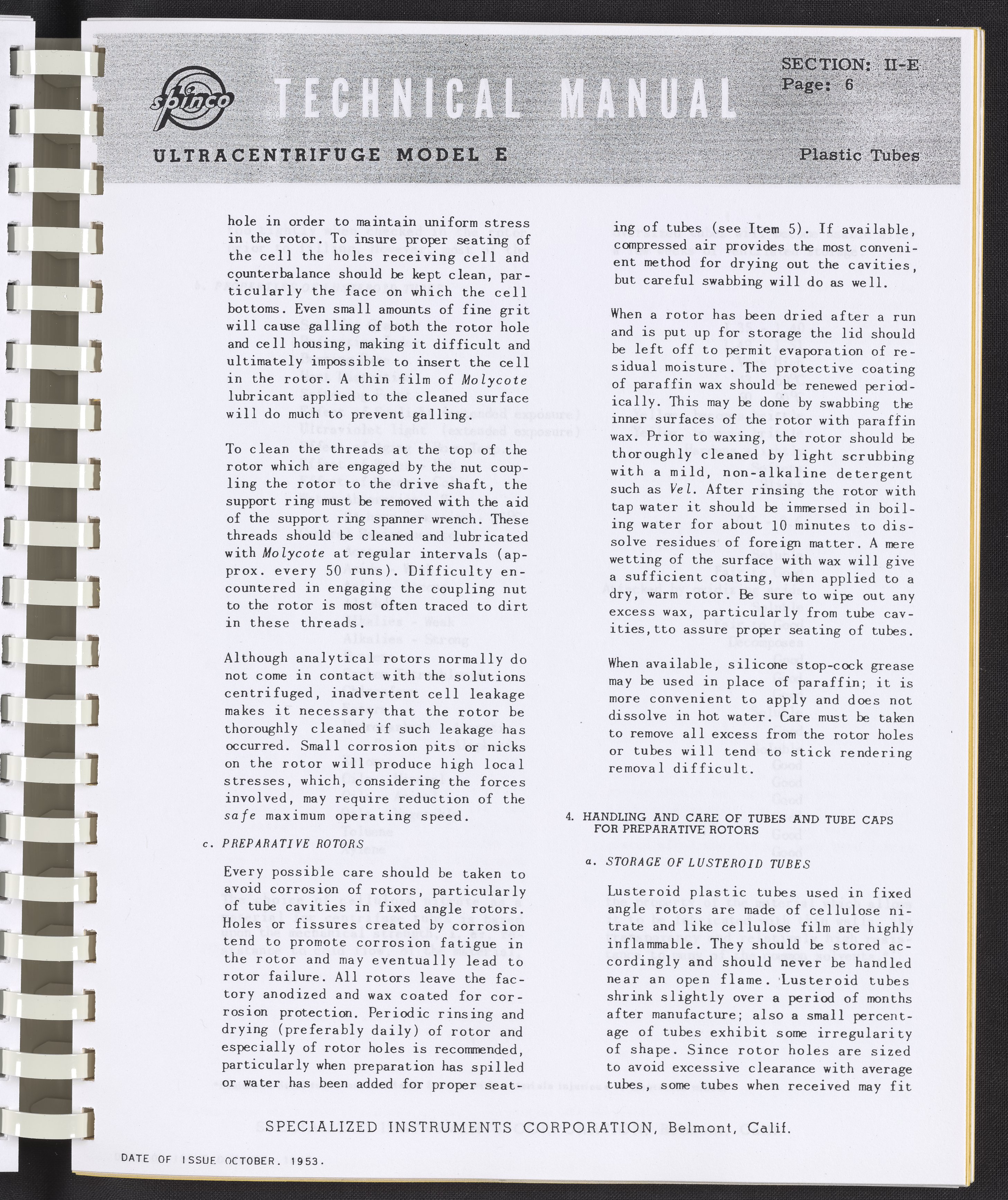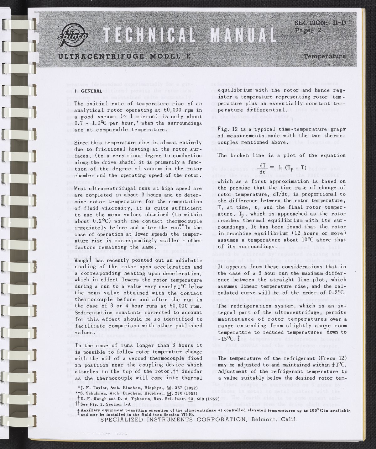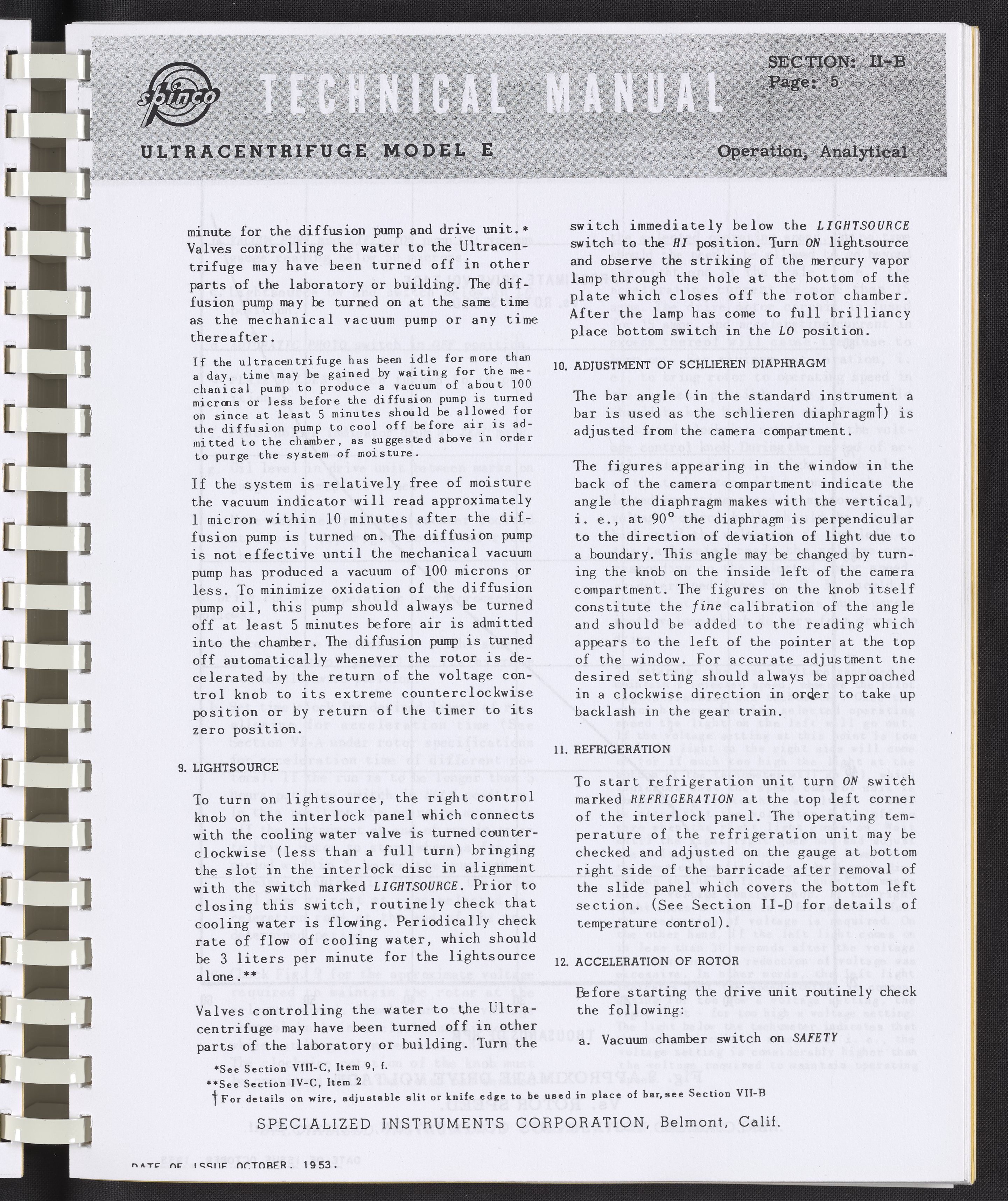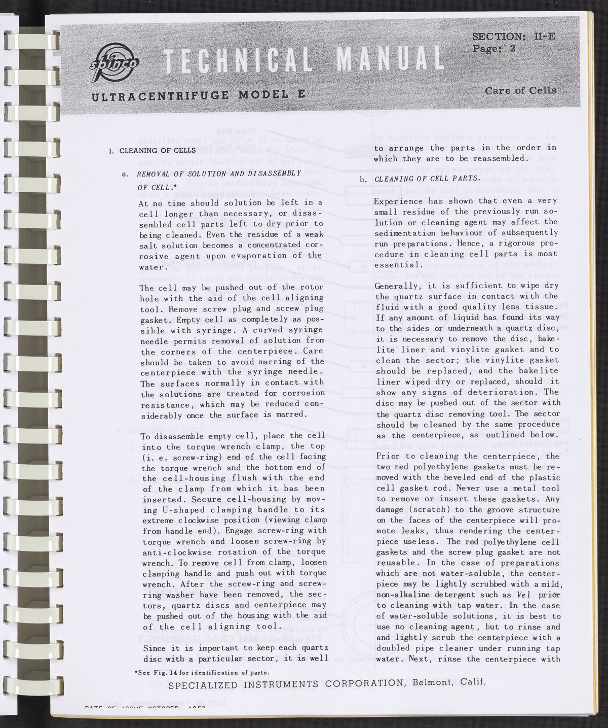 Beckman Instruments, Inc. Spinco Division. “Technical Manual, Spinco Ultracentrifuge Model E,” 1953–1954. Beckman Historical Collection, Box 121, Folder 9. Science History Institute. Philadelphia. https://digital.sciencehistory.org/works/hm50ts49m.