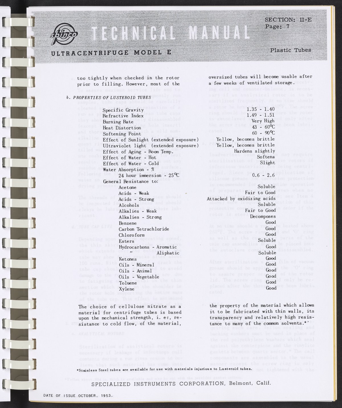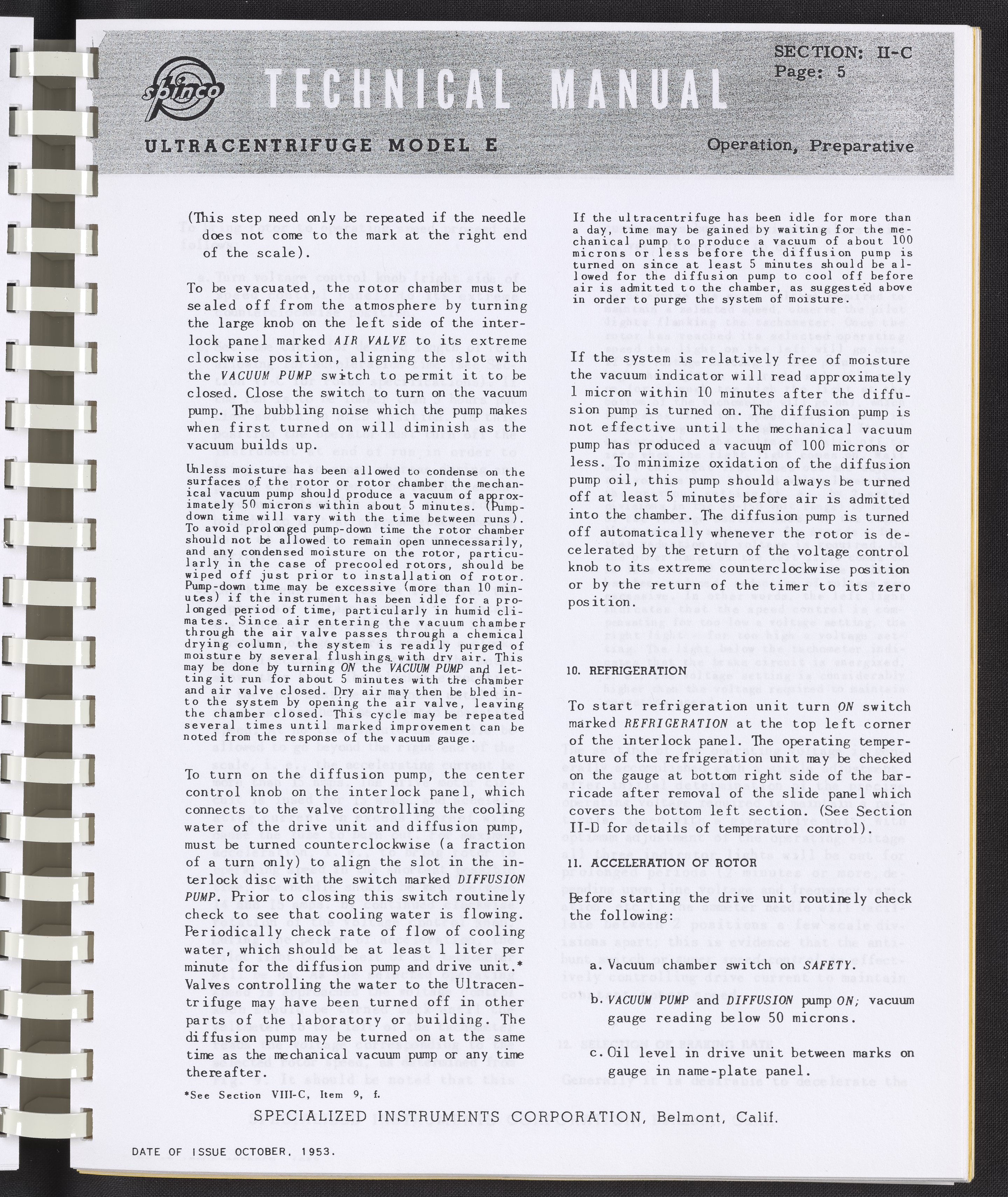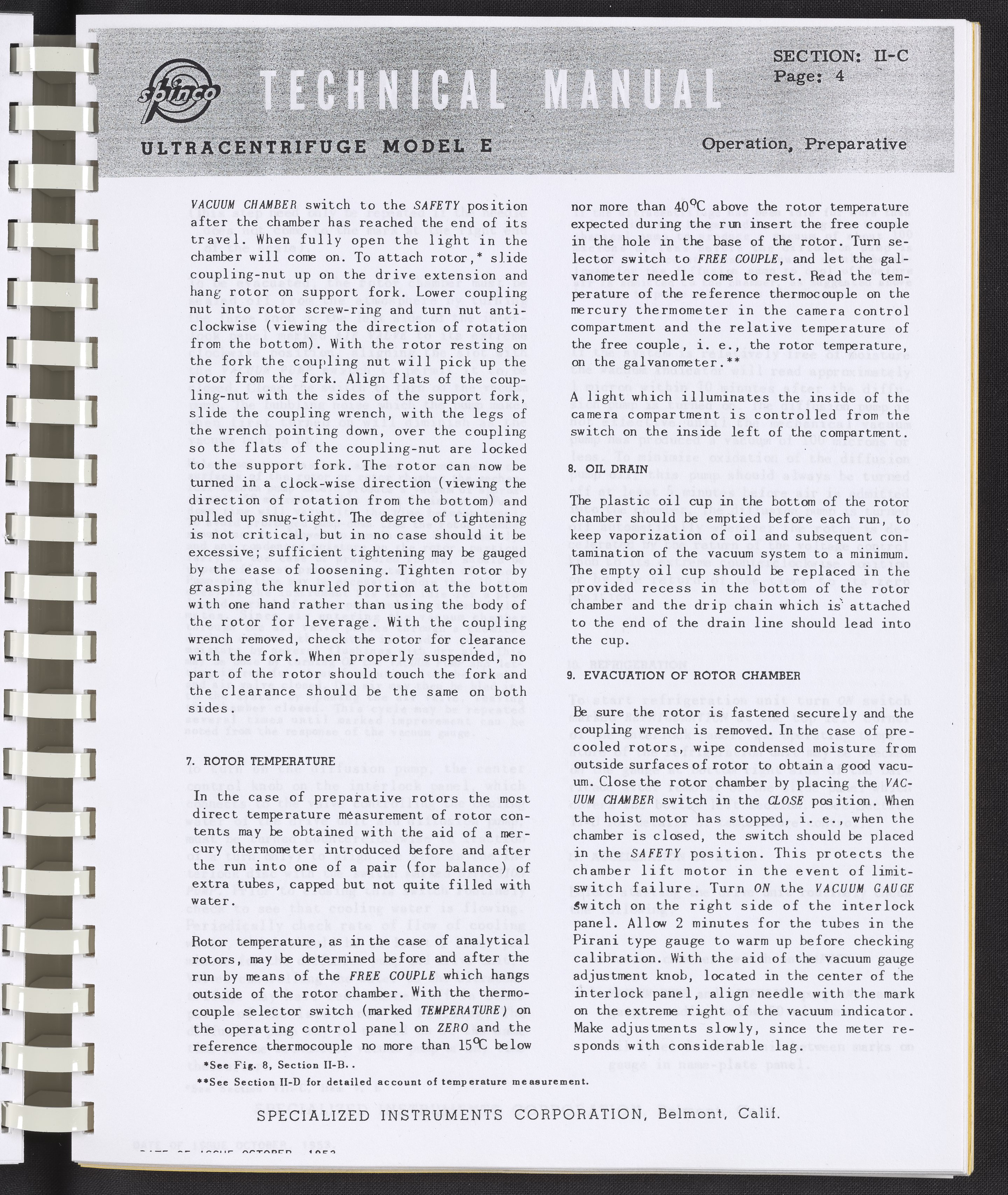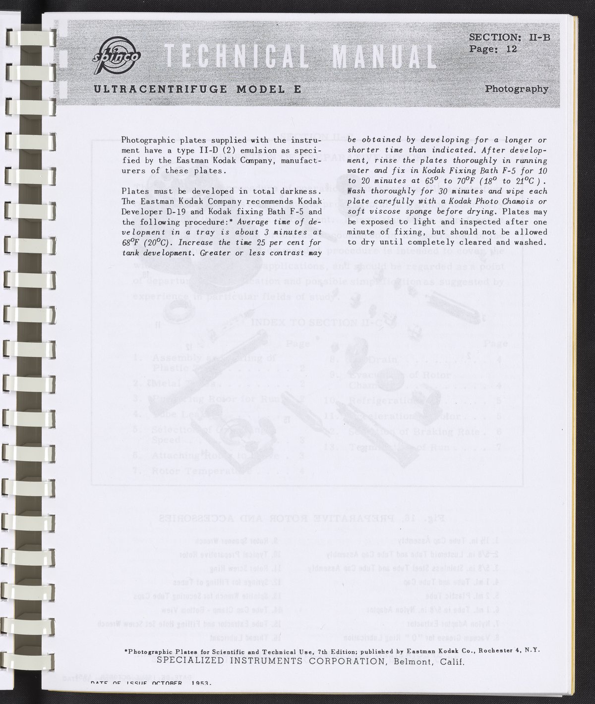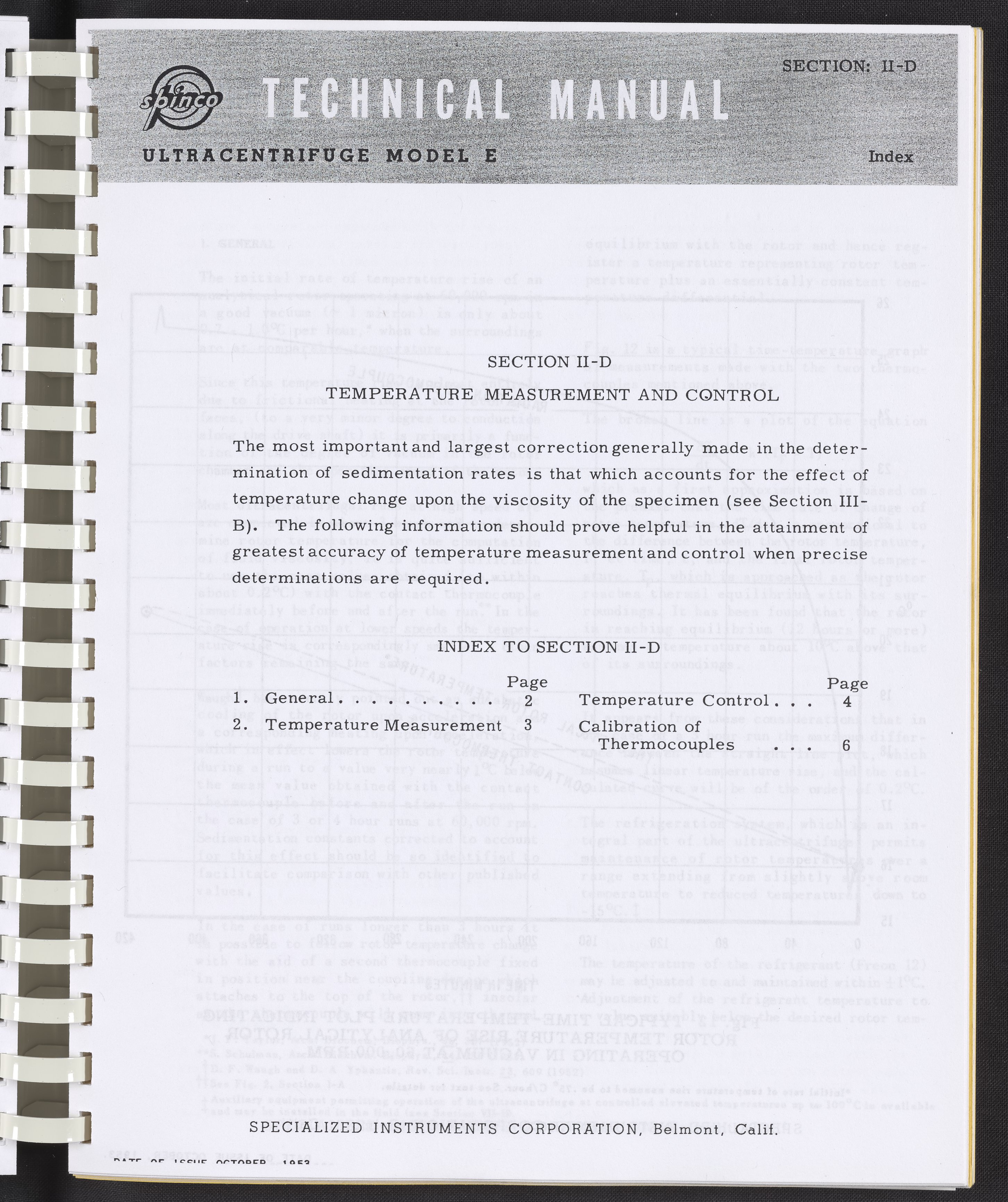 Beckman Instruments, Inc. Spinco Division. “Technical Manual, Spinco Ultracentrifuge Model E,” 1953–1954. Beckman Historical Collection, Box 121, Folder 9. Science History Institute. Philadelphia. https://digital.sciencehistory.org/works/hm50ts49m.