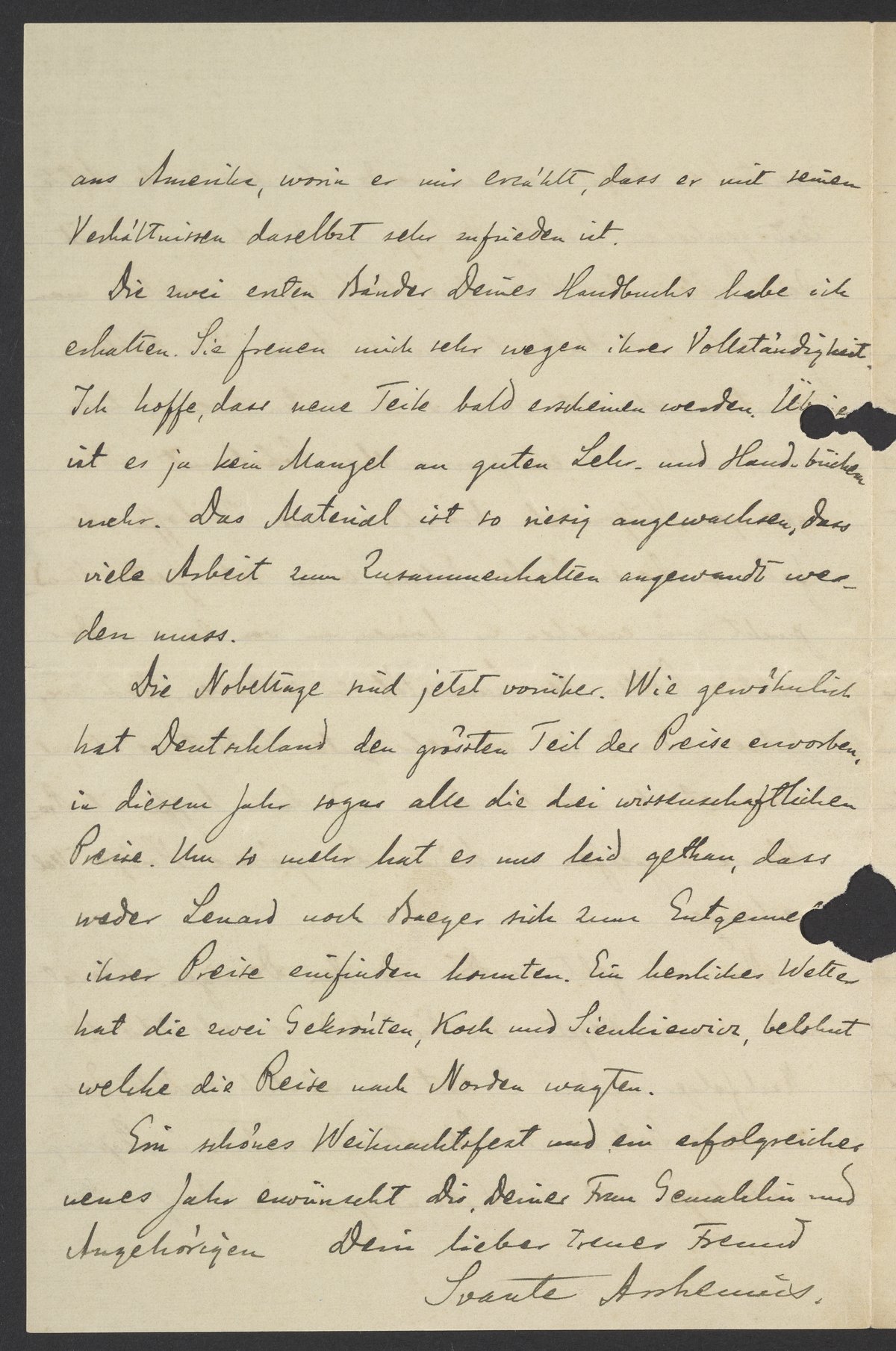Ein schönes Weihnachtsfest und ein erfolgreiches neues Jahr erwünscht Dir, Deiner Frau Gemahlin und Angehörigen Dein lieber treuer Freund Svante Arrhenius.