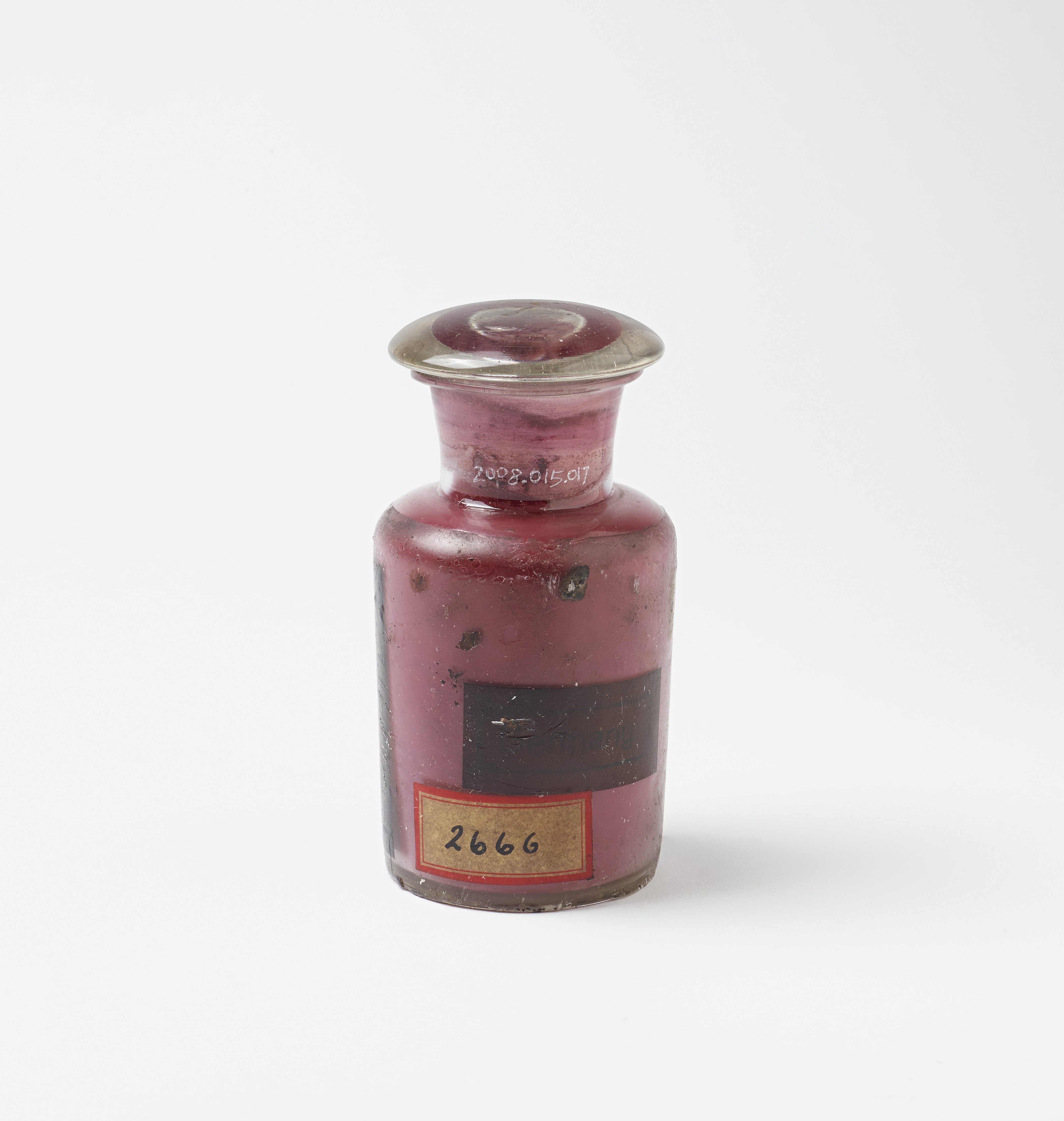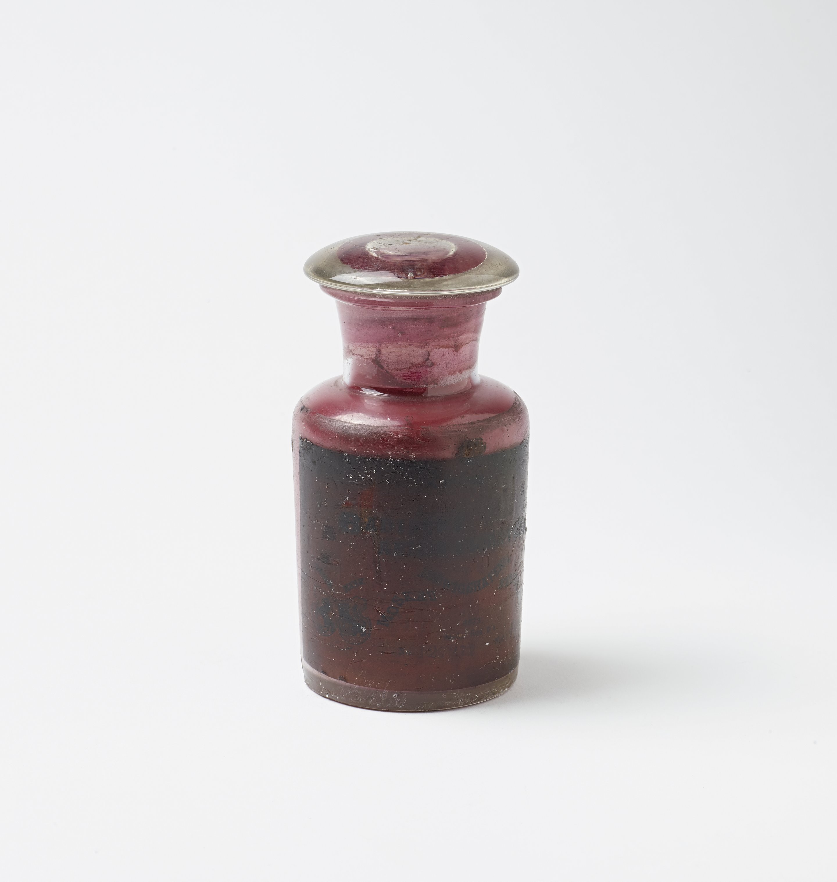 Science History Institute. Red Dye Bottle. Photograph, 2017. Science History Institute. Philadelphia. https://digital.sciencehistory.org/works/ht24wj826.