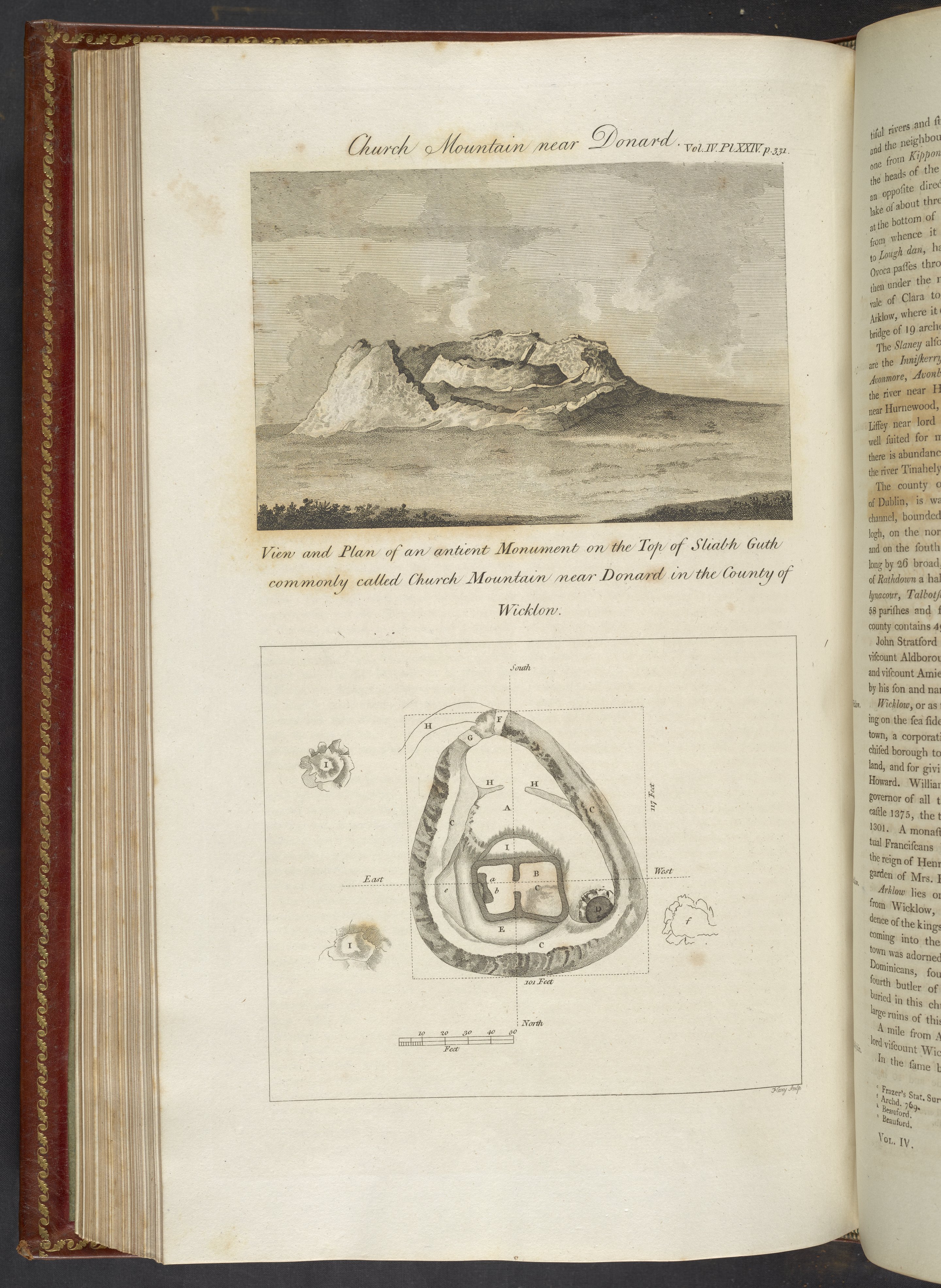 Camden, William. “View and Plan of an Ancient Monument on the Top of Sliabh Guth Commonly Called Church Mountain near Donard in the County of Wicklow .” In Britannia: or, a Chorographical Description of the Flourishing Kingdoms of England, Scotland, and Ireland, and the Islands Adjacent, Vol. 4. London, England: John Stockdale, 1806. https://digital.sciencehistory.org/works/hwxnt8y.