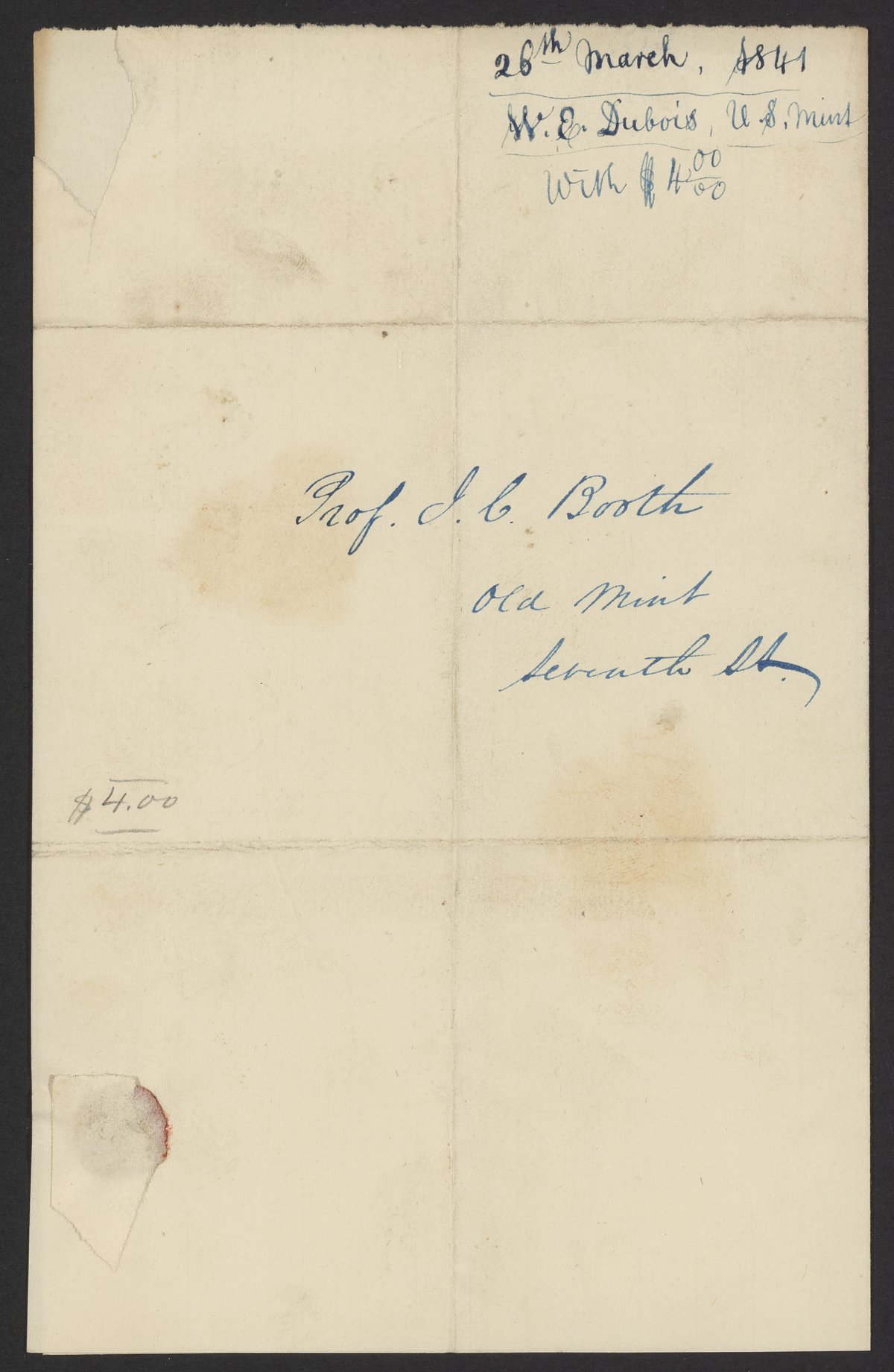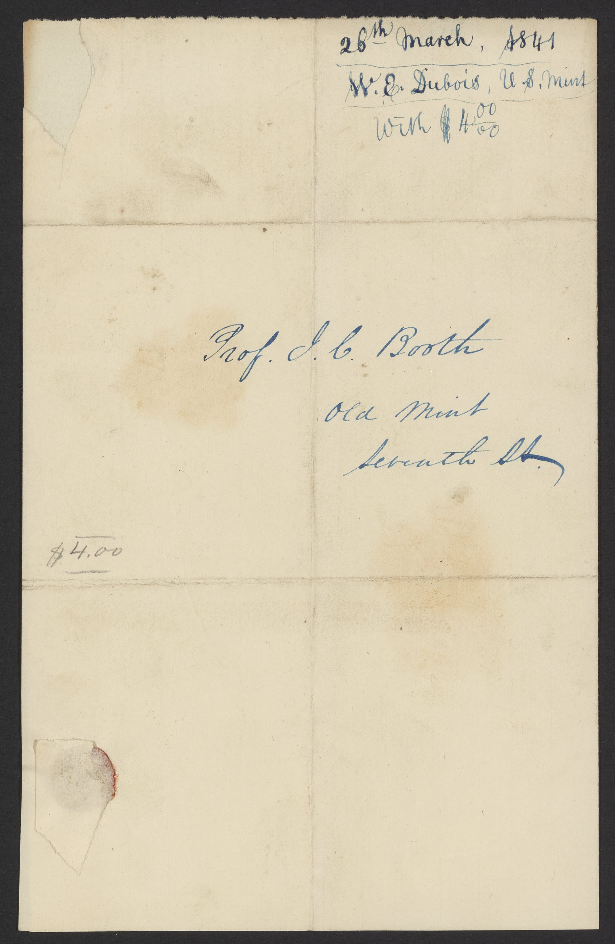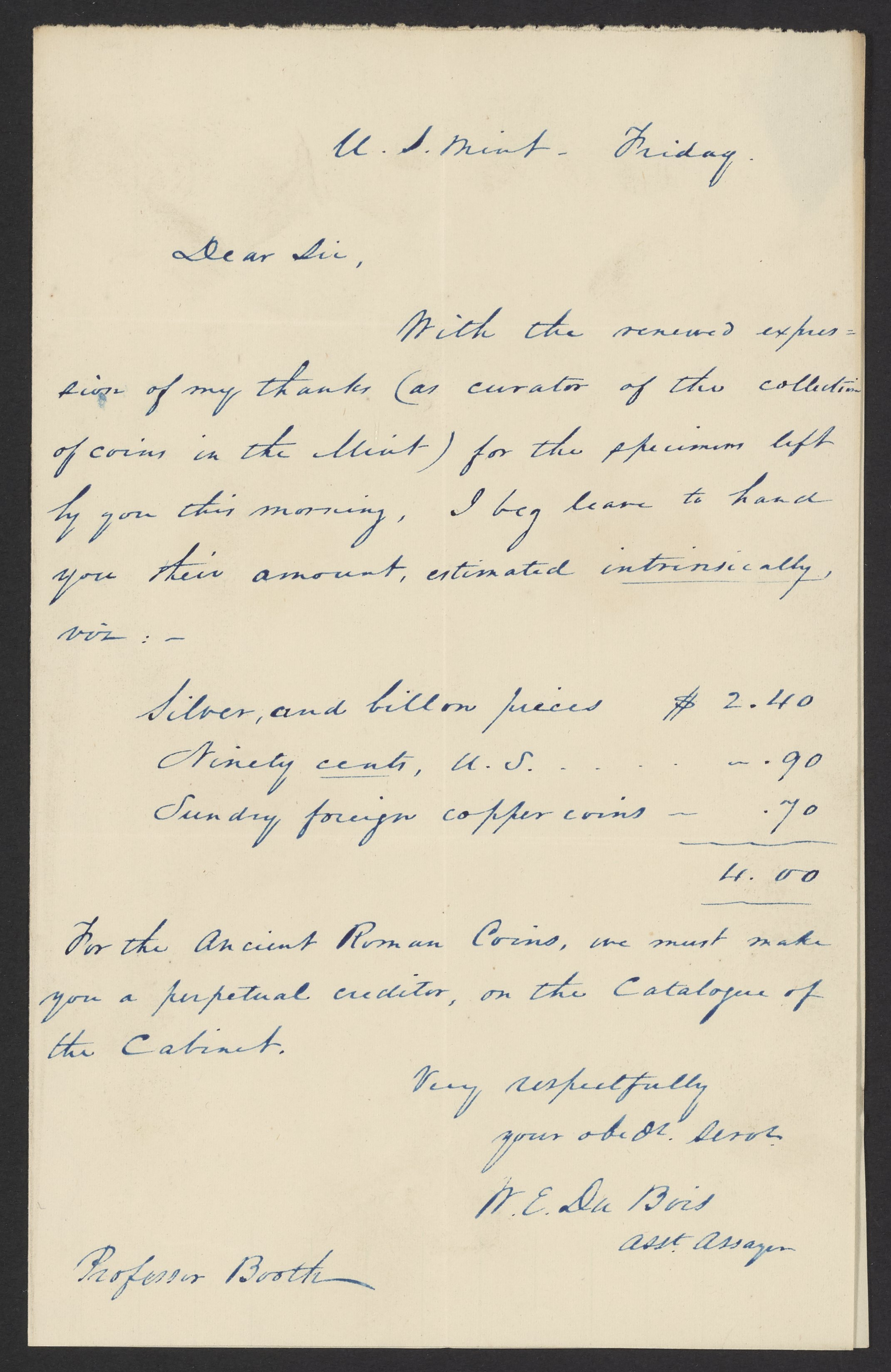 Letter from W. E. Du Bois of the United States Mint to James Curtis Booth