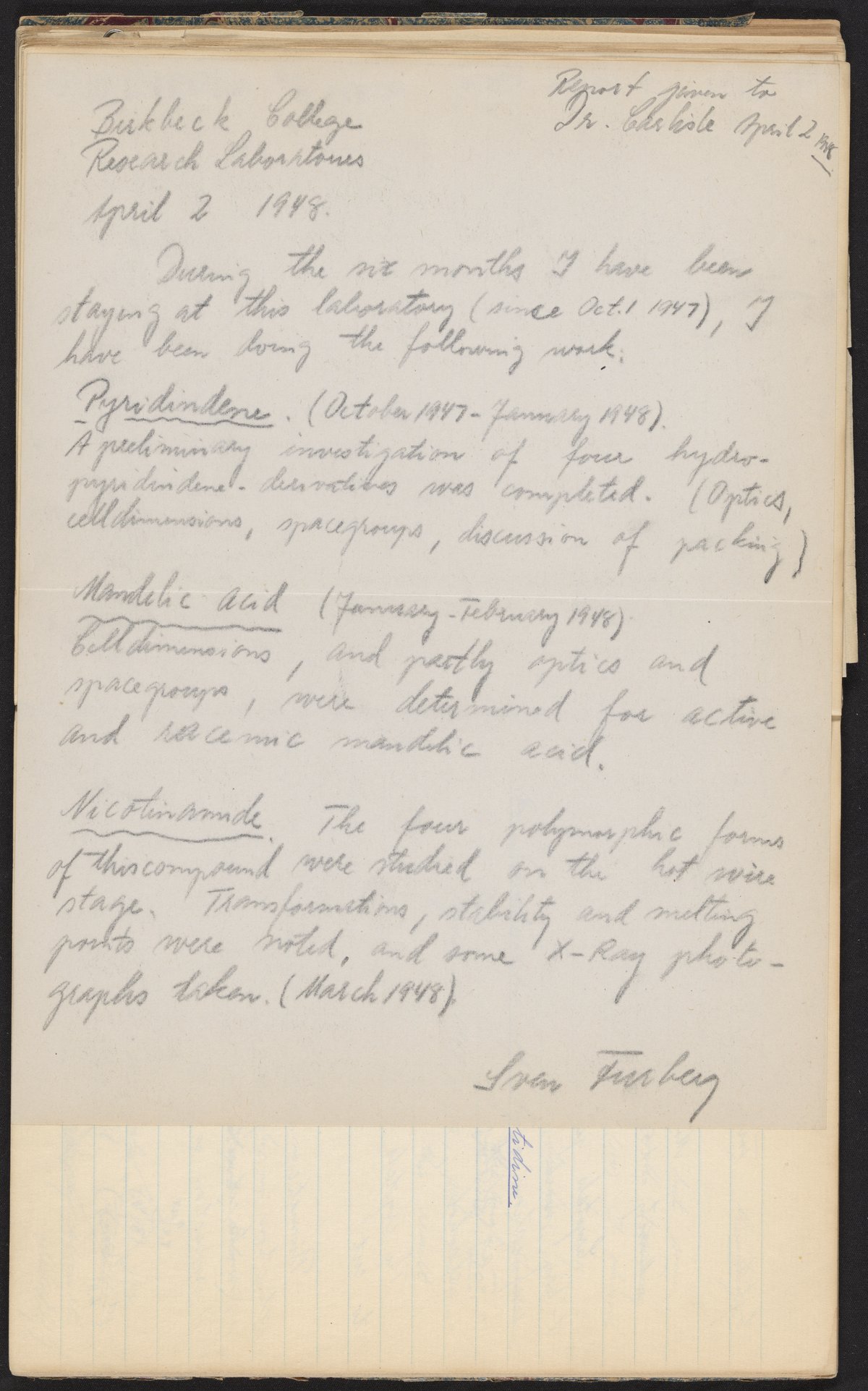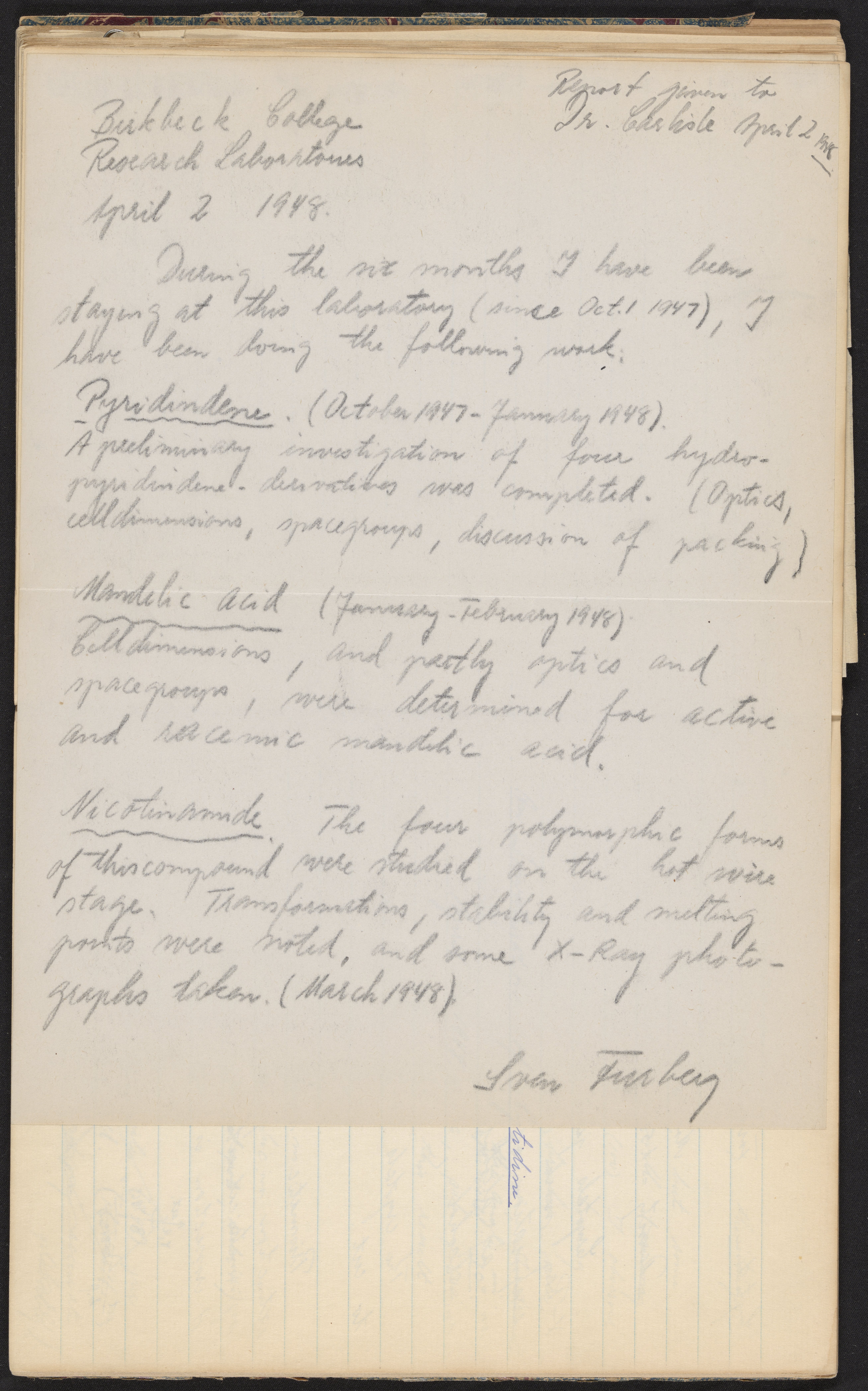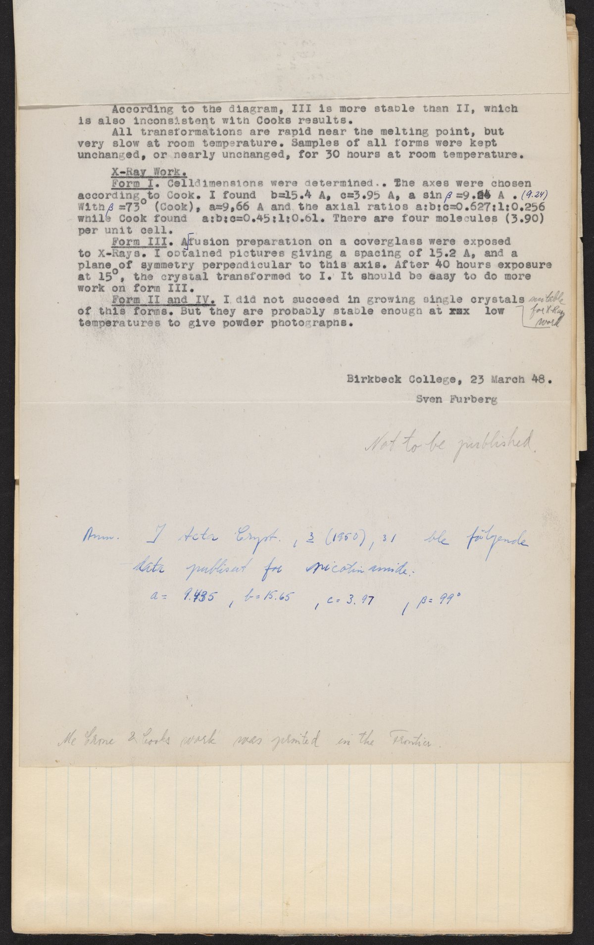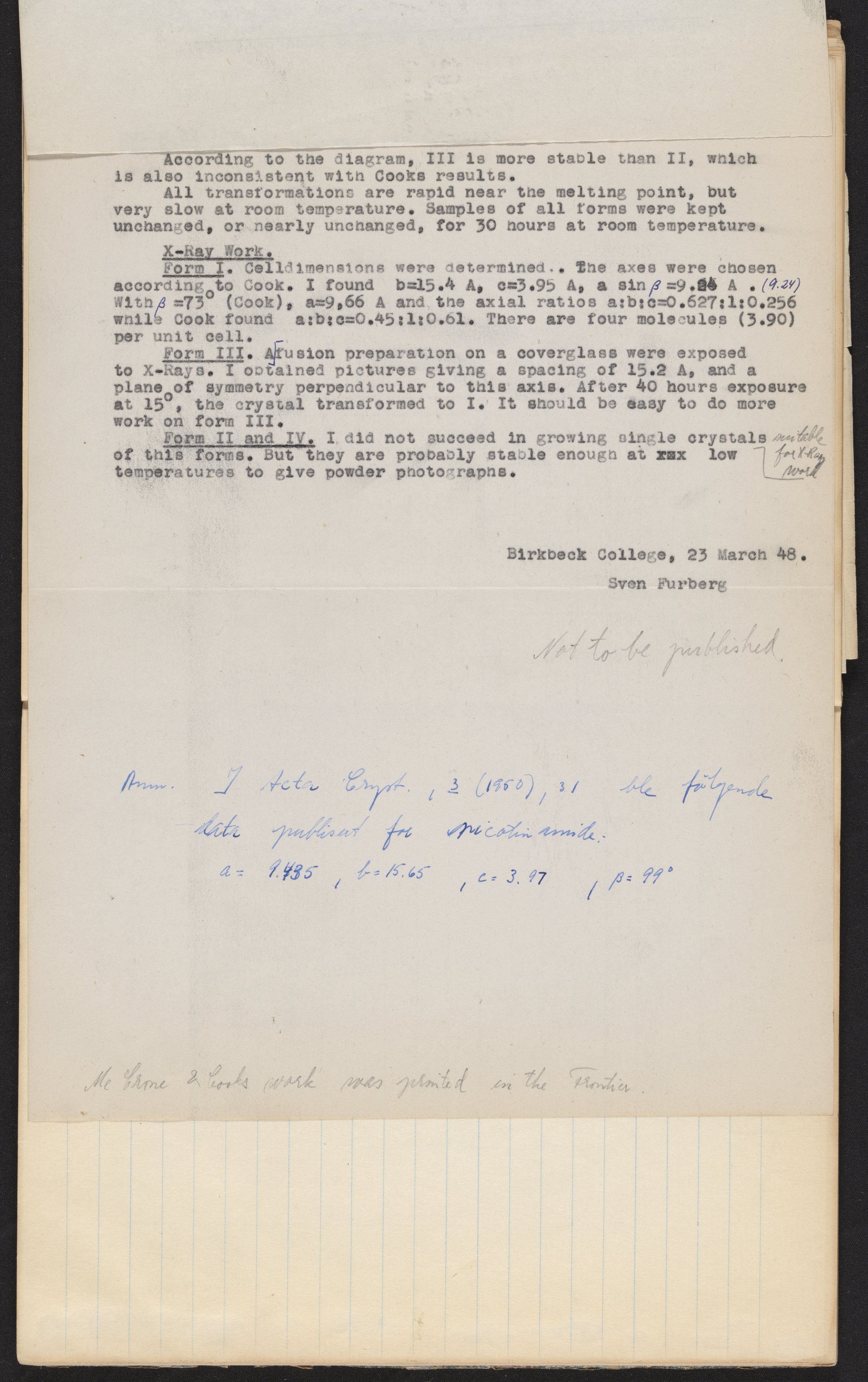 Sven Furberg's notebook, June 1947-1950
