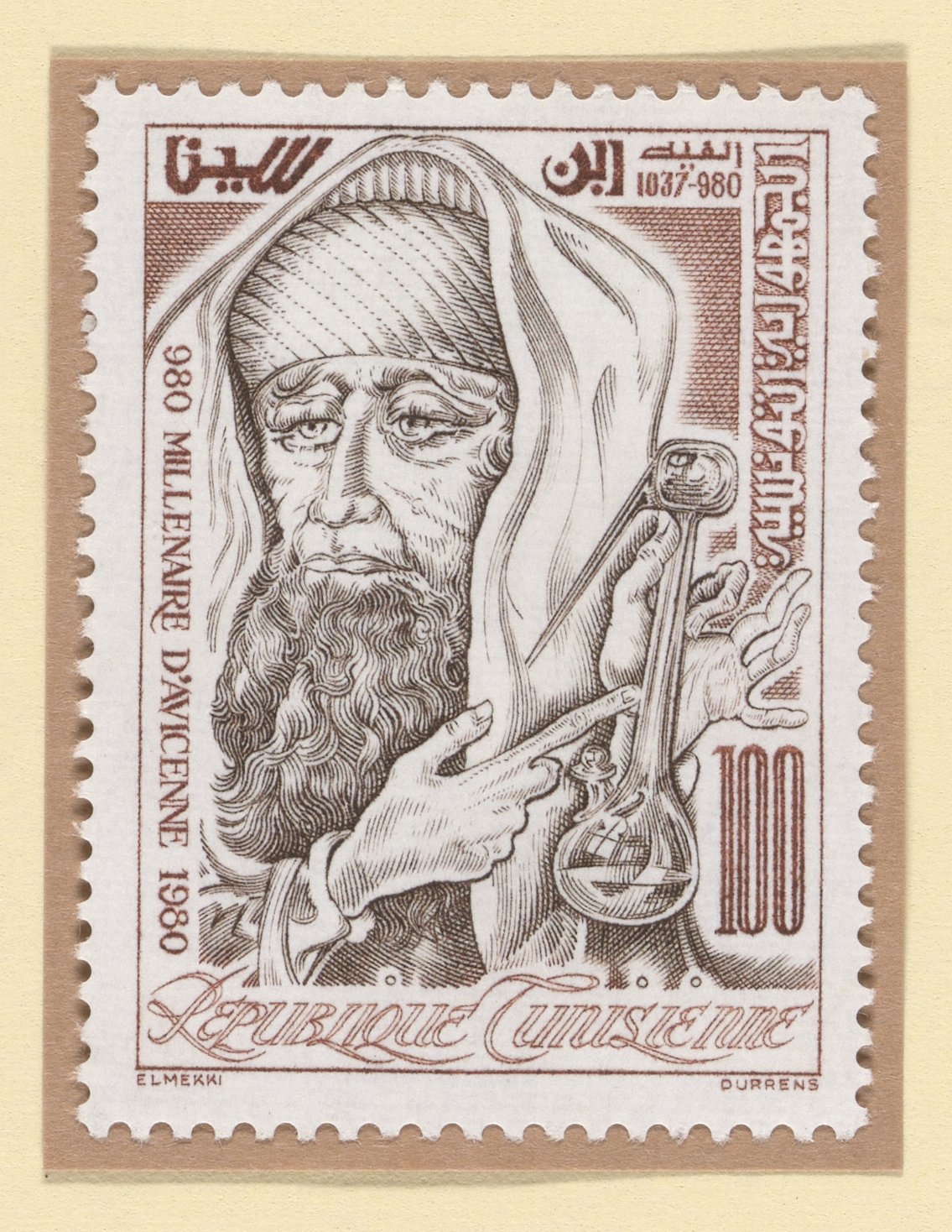 “Tunisian Stamp Commemorating Avicenna (Ibn Sina),” 1980. Witco Stamp Collection, Box 1. Science History Institute. Philadelphia. https://digital.sciencehistory.org/works/ierjqko.