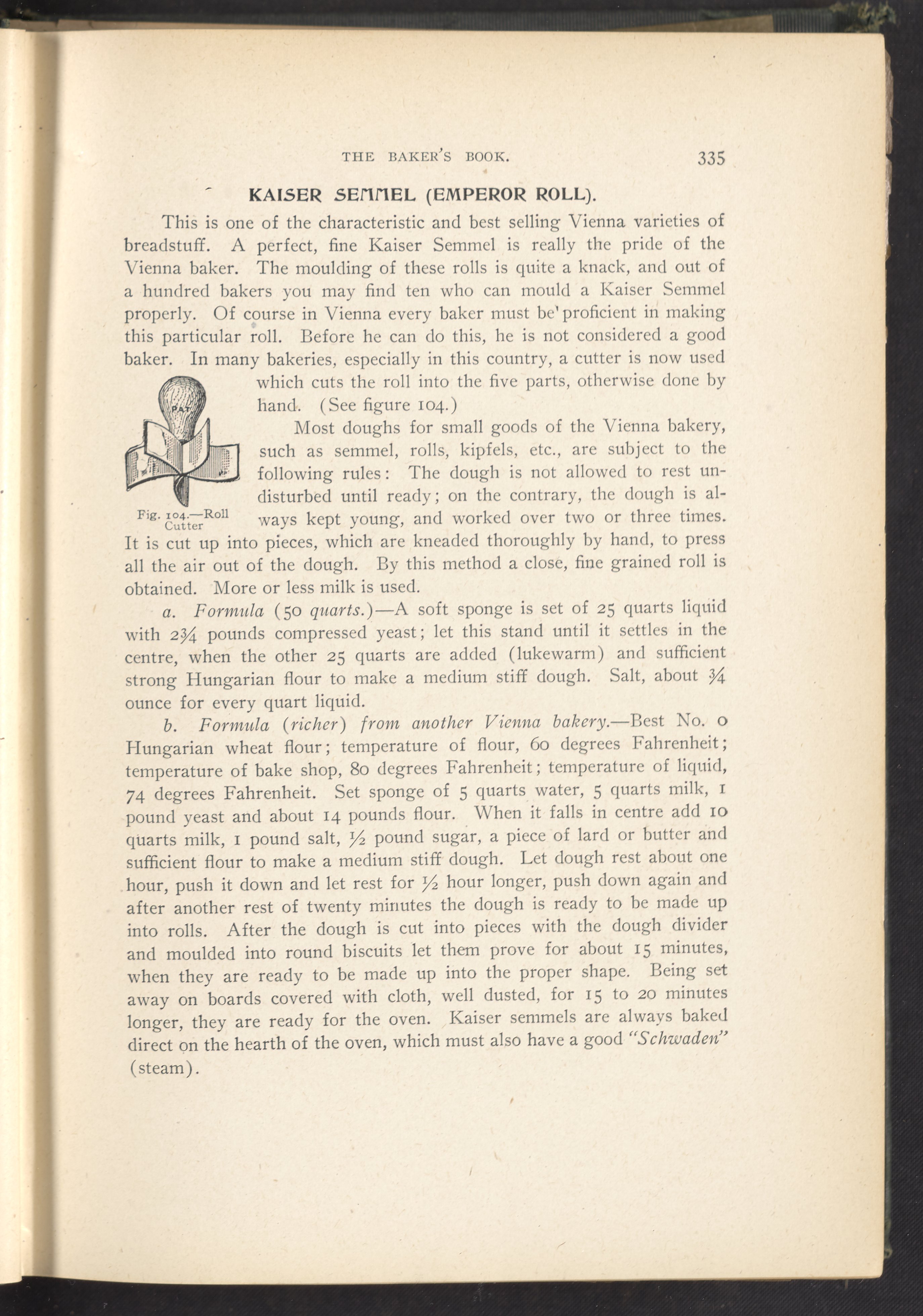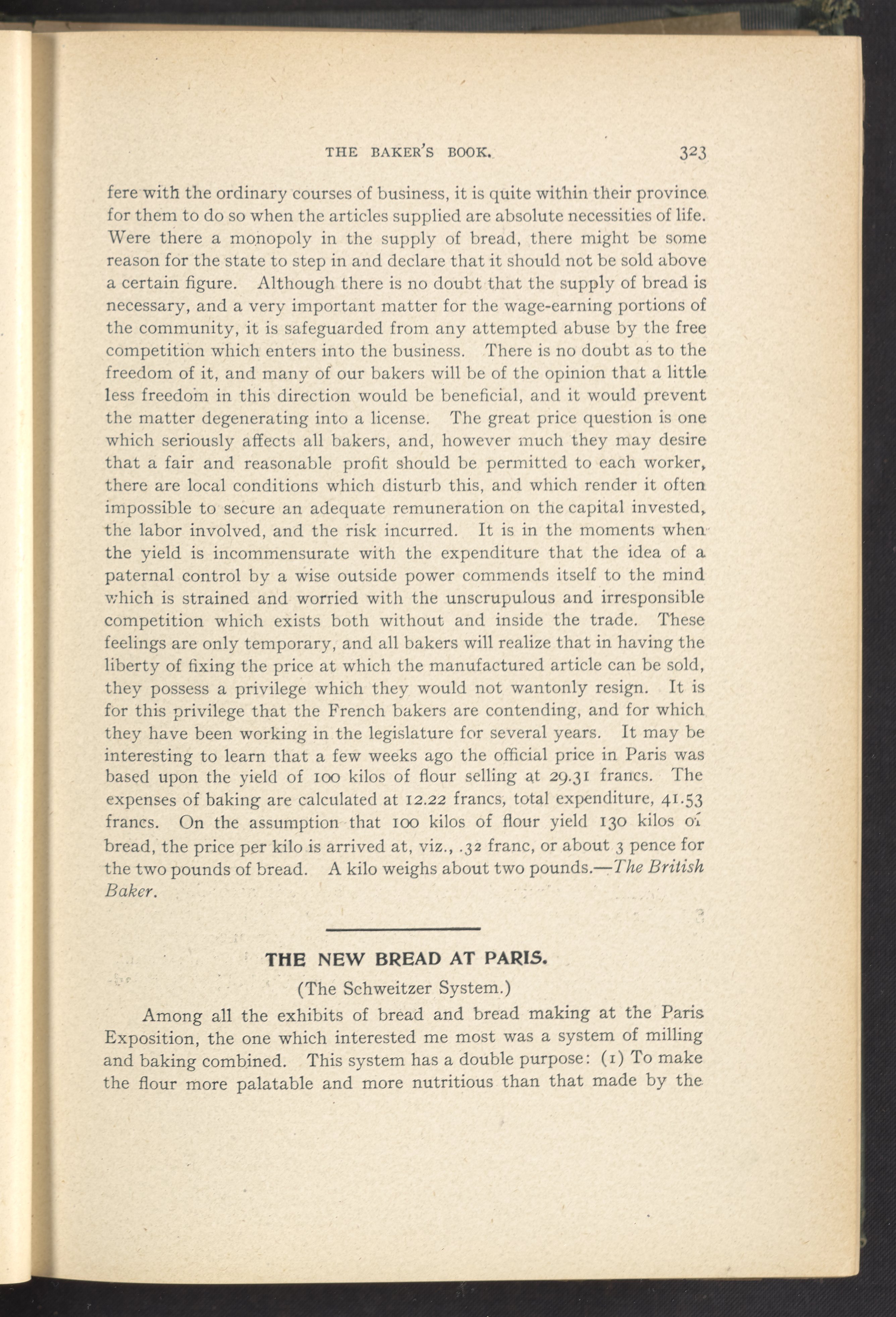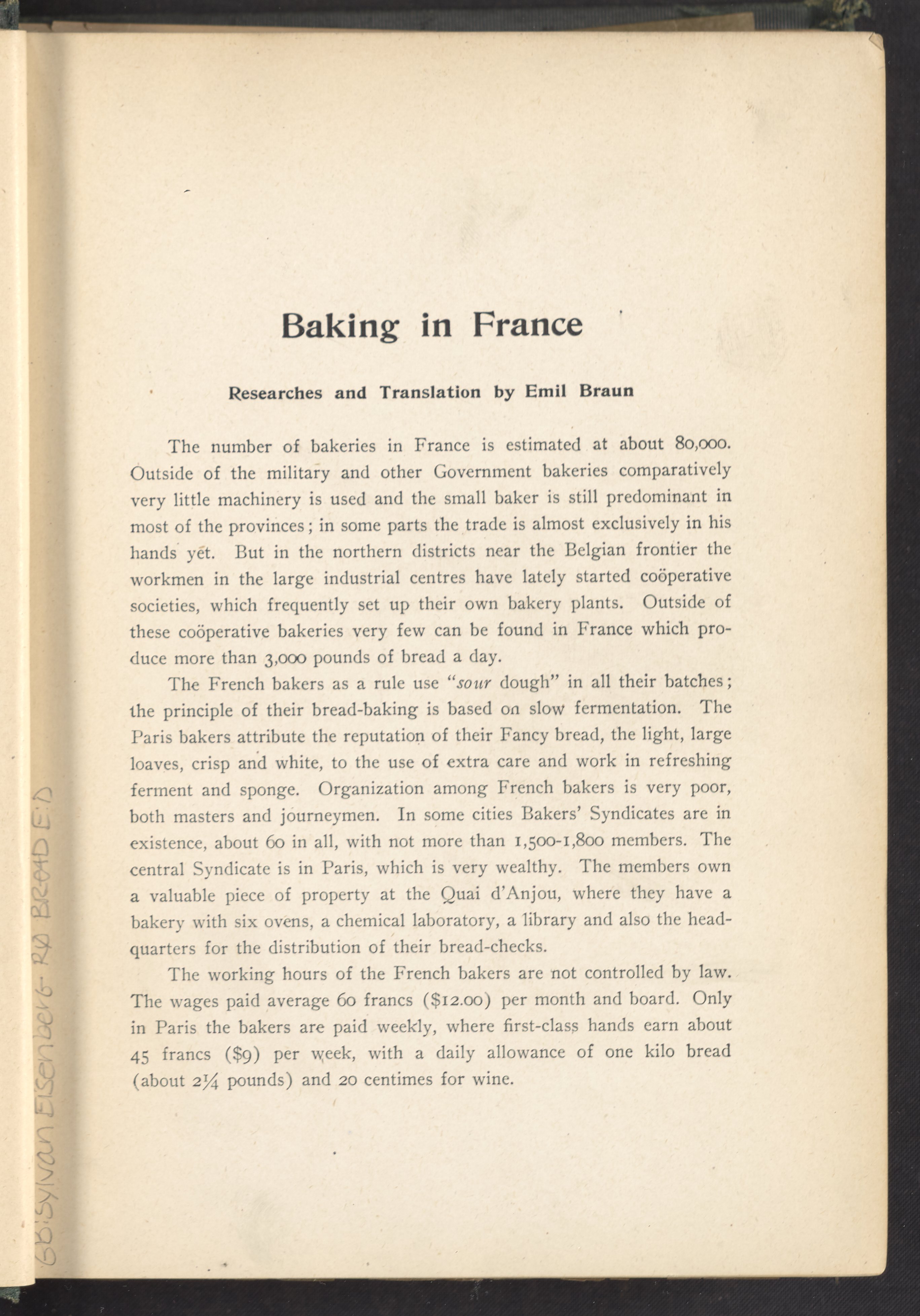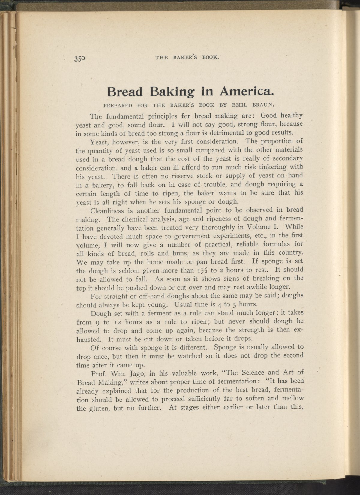Small JPG1200 x 1607px — 347 KBLarge JPG2880 x 3857px — 1.6 MBFull-sized JPG3014 x 4036px — 1.7 MBOriginal fileTIFF — 3014 x 4036px — 34.9 MBThe illustrated second volume of The Baker's Book, providing a comprehensive discussion of baking. Intended to be "every baker's hand book," the series describes the global history and significance of baked goods, predominantly bread, and provides technical information about the nutritive value and chemical composition of bread. Includes recipes, information regarding bakery equipment and supplies, an index, and a selection of advertisements found at the end of each volume. As stated in the preface of the first volume, "it is a book for every baker, be he master, foreman, journeyman, or apprentice." The Baker's Book is an adaptation and translation from the German, Das Baeckerbuch. The first and second volumes are digitized in their entirety.