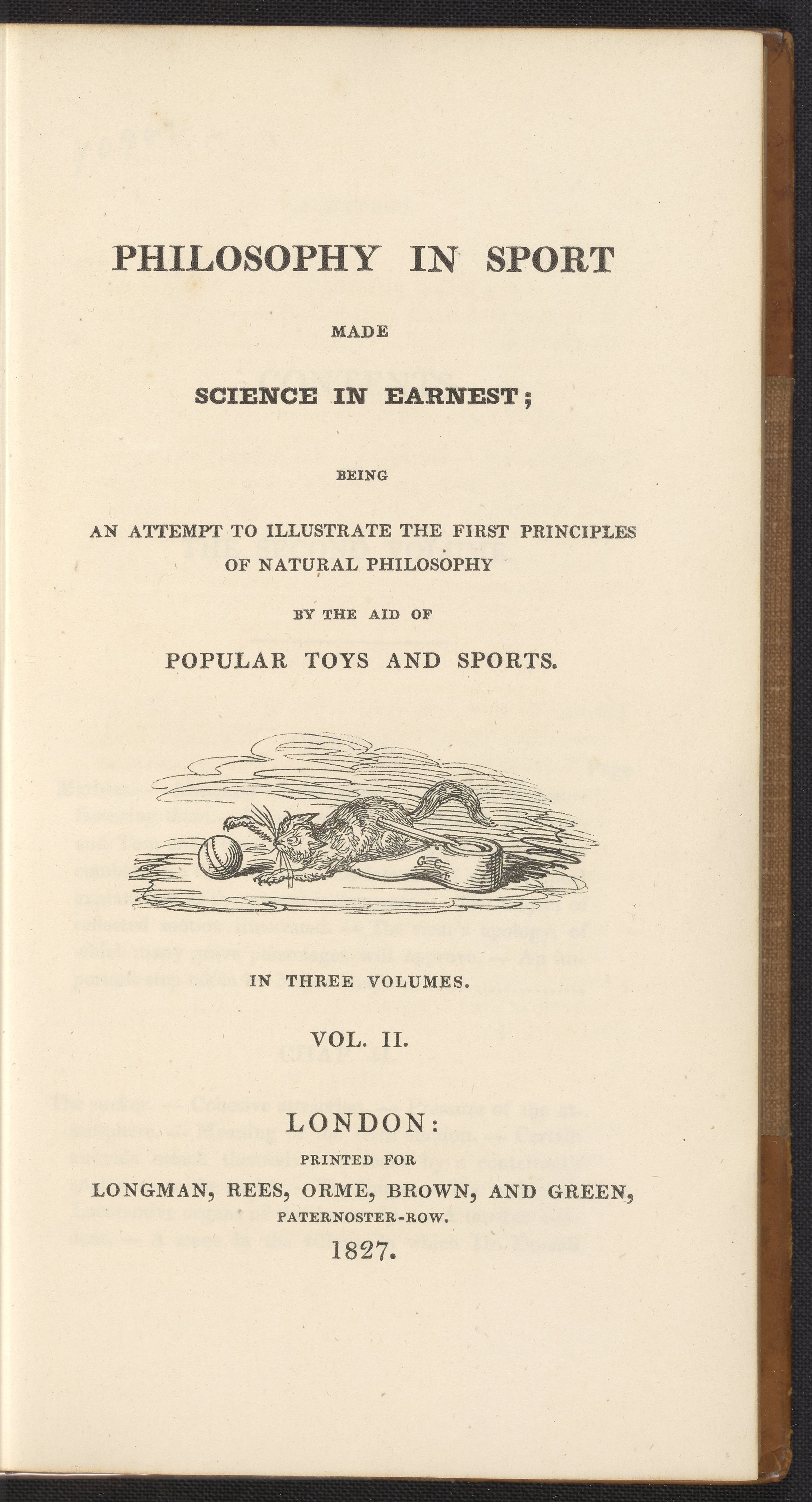 Paris, John Ayrton. Philosophy in Sport Made in Earnest : Being an Attempt to Illustrate the First Principles of Natural Philosophy by the Aid of the Popular Toys and Sports, Volume 2. London, England: Longman, Rees, Orme, Brown, and Green, 1827. https://digital.sciencehistory.org/works/imwiwto.