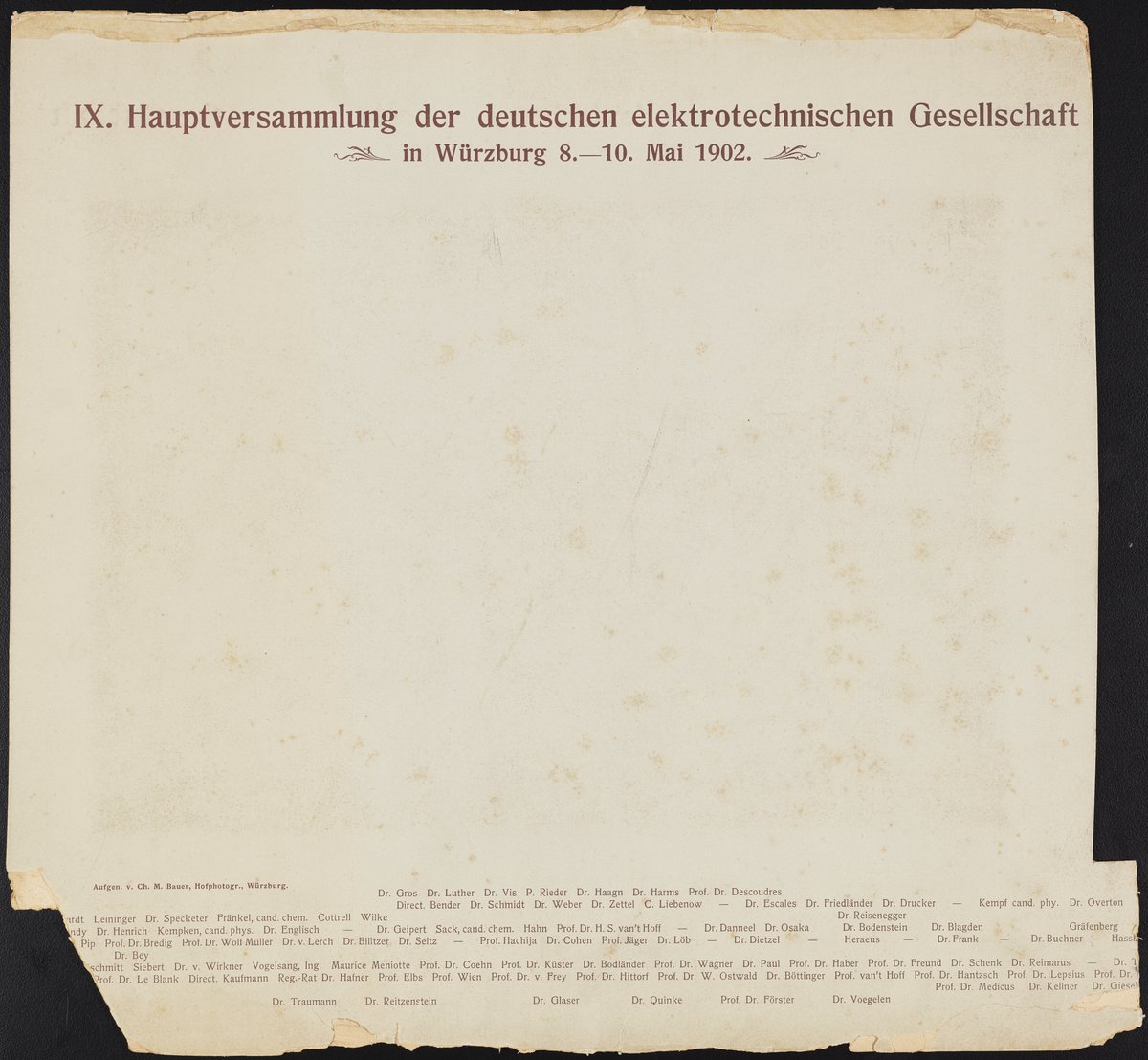 Deutsche Bunsen-Gesellschaft für Physikalische Chemie. “IX. Hauptversammlung Der Deutschen Elektrochemischen Gesellschaft,” May 1902. Papers of Georg and Max Bredig, Box 26. Science History Institute. Philadelphia. https://digital.sciencehistory.org/works/imy4g5z.