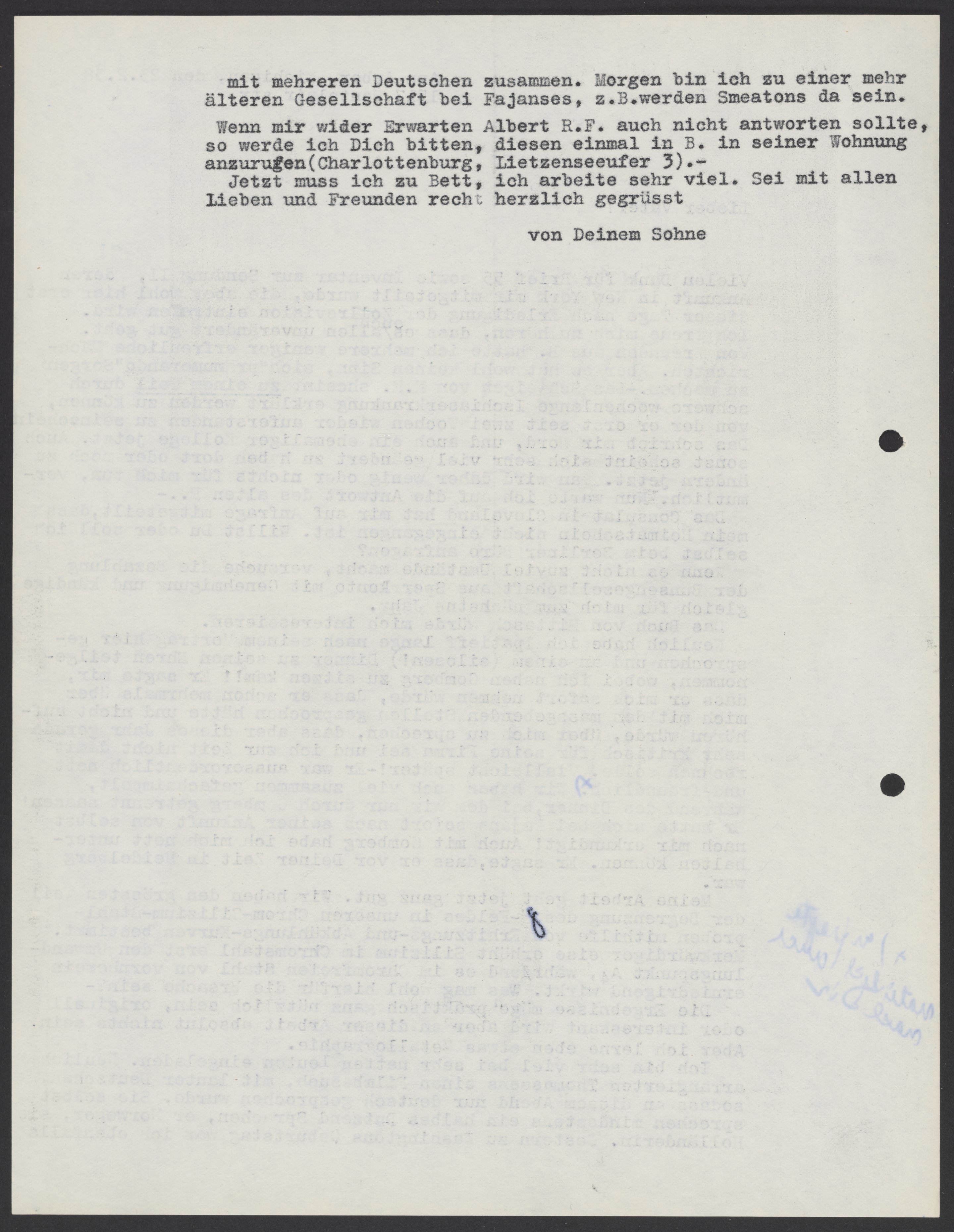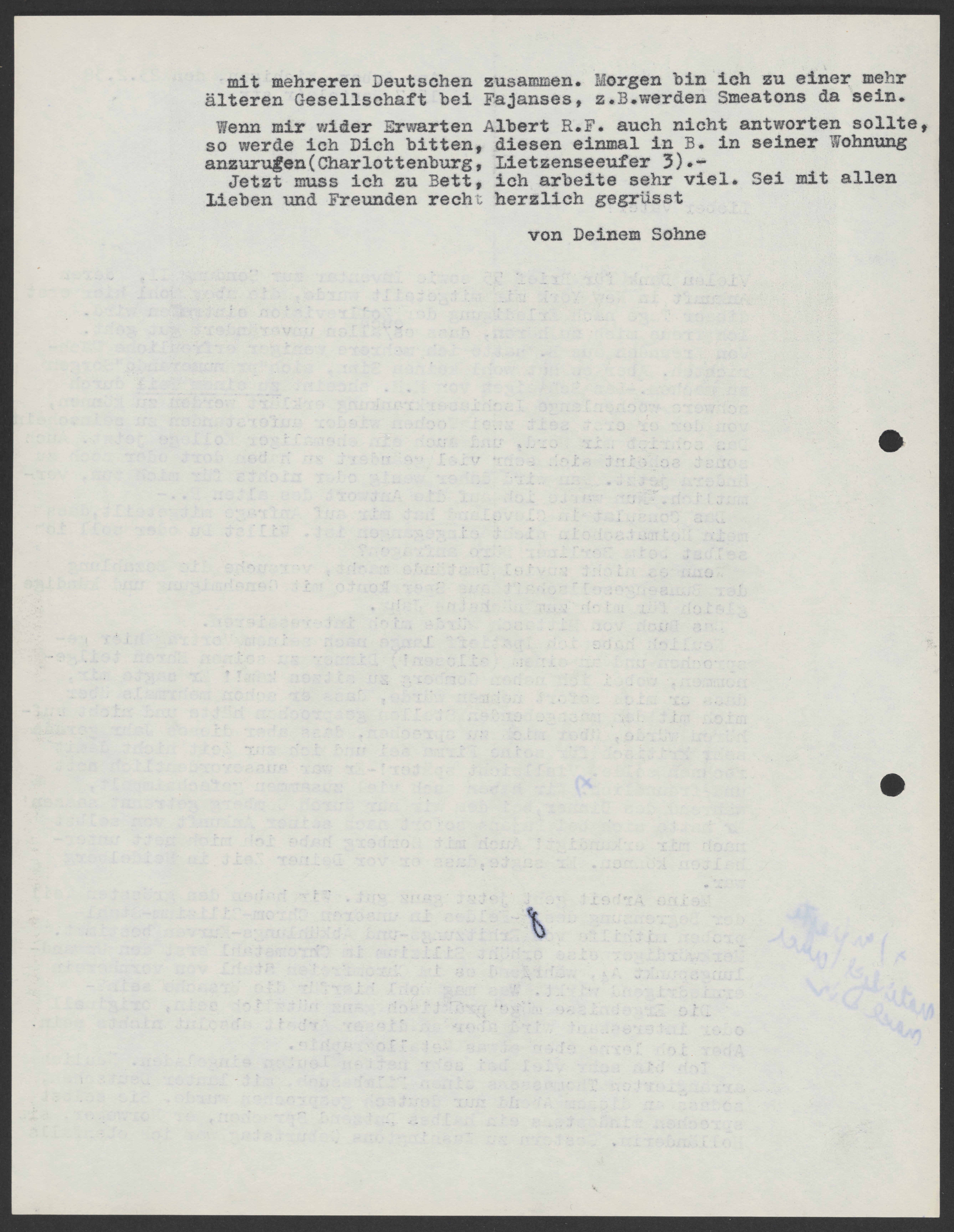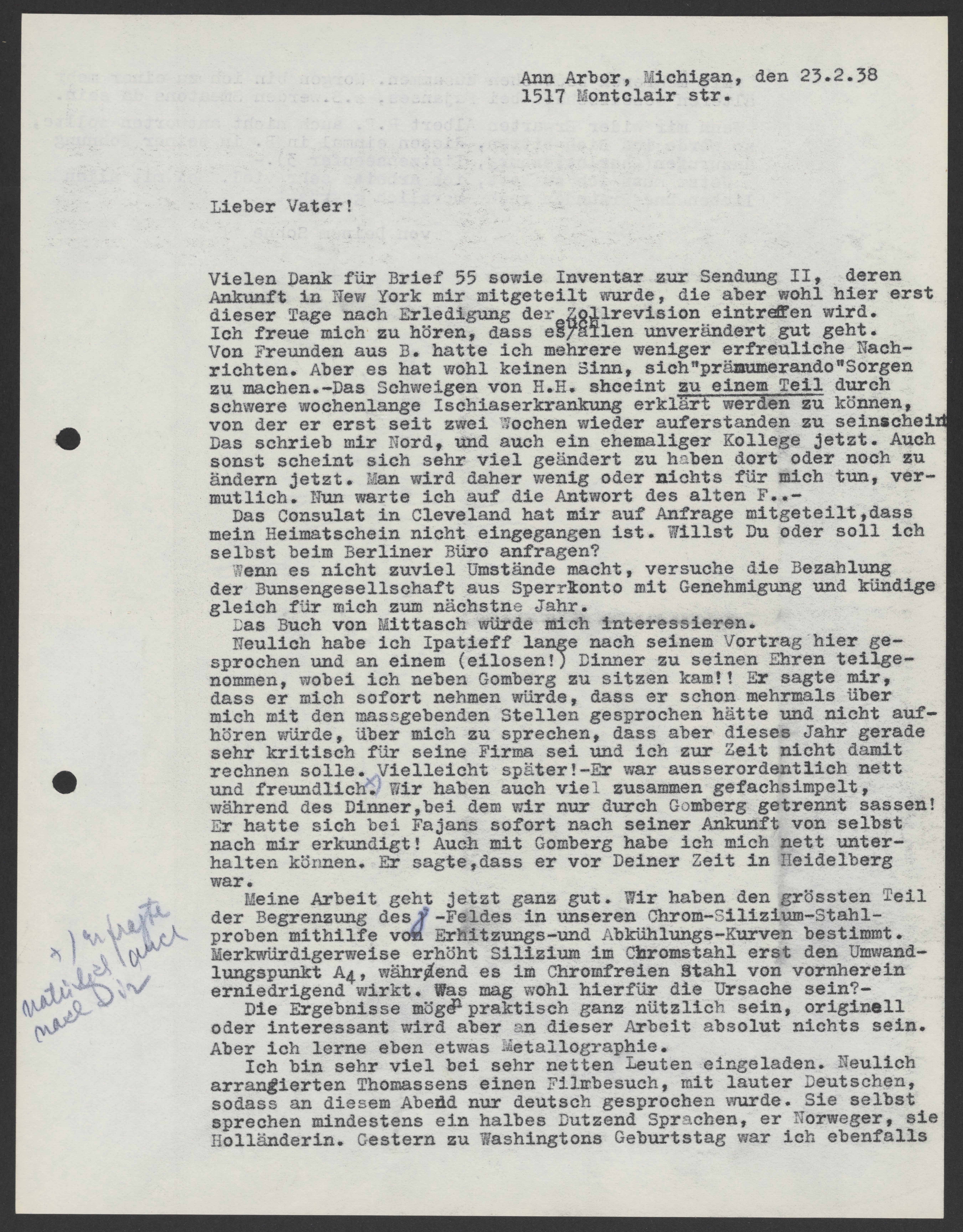 Letter from Max Bredig to Georg Bredig, February 23, 1938