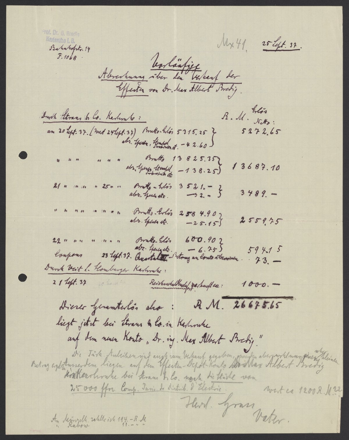 Letter from Georg Bredig to Max Bredig, September 25, 1937